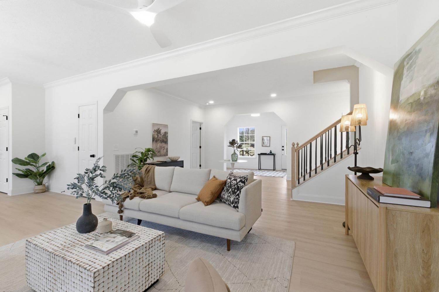 Beautifully renovated home on a quiet cul-de-sac sitting on 2.3 acres! Very private lot that backs up to a wooded tree line- Open floor plan with a fireplace and lots of natural lighting, 3 bedrooms on the main floor including the master. High end finishes throughout with all new luxury LVP flooring, custom master closet shelving, quartz kitchen countertops, HVAC and ductwork, tile, inside/outside paint, lighting/plumbing fixtures & vanities, gutters, Frigidaire stainless steel appliances, water heater, and much more. No HOA and a two car garage with plenty of parking- welcome home!