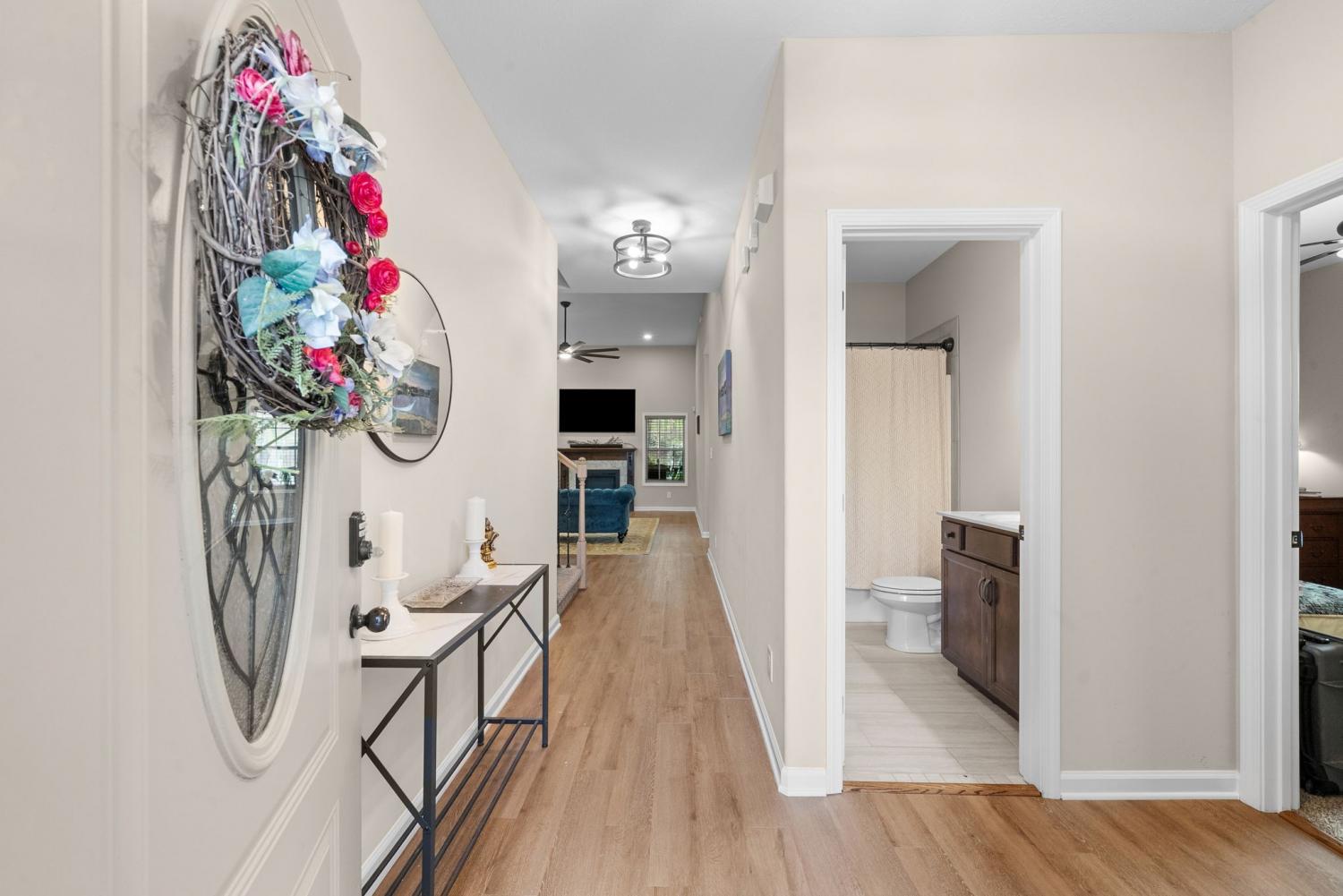 Welcome to this beautifully maintained ranch home with a spacious bonus room over the garage—perfect for a home office, playroom, or guest retreat. Featuring brand new LVP flooring, this home combines modern updates with comfortable, everyday living. The eat-in kitchen is both stylish and functional, offering granite countertops, stainless steel appliances, and plenty of space to gather. The living room is anchored by a cozy fireplace, creating the perfect spot to relax and unwind. Step outside to your private backyard oasis—fully fenced with no rear neighbors, an irrigation system to keep the lawn lush, and backed by peaceful woods where deer and turkey are often seen. Enjoy morning coffee or host unforgettable gatherings on the custom outdoor patio designed for entertaining. Ideally located just 10 minutes from APSU and downtown Clarksville, and only 15 minutes to I-24, this home offers the perfect balance of convenience and tranquility. Don’t miss your chance to own this move-in ready gem with exceptional indoor and outdoor living!
