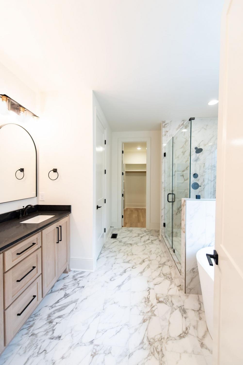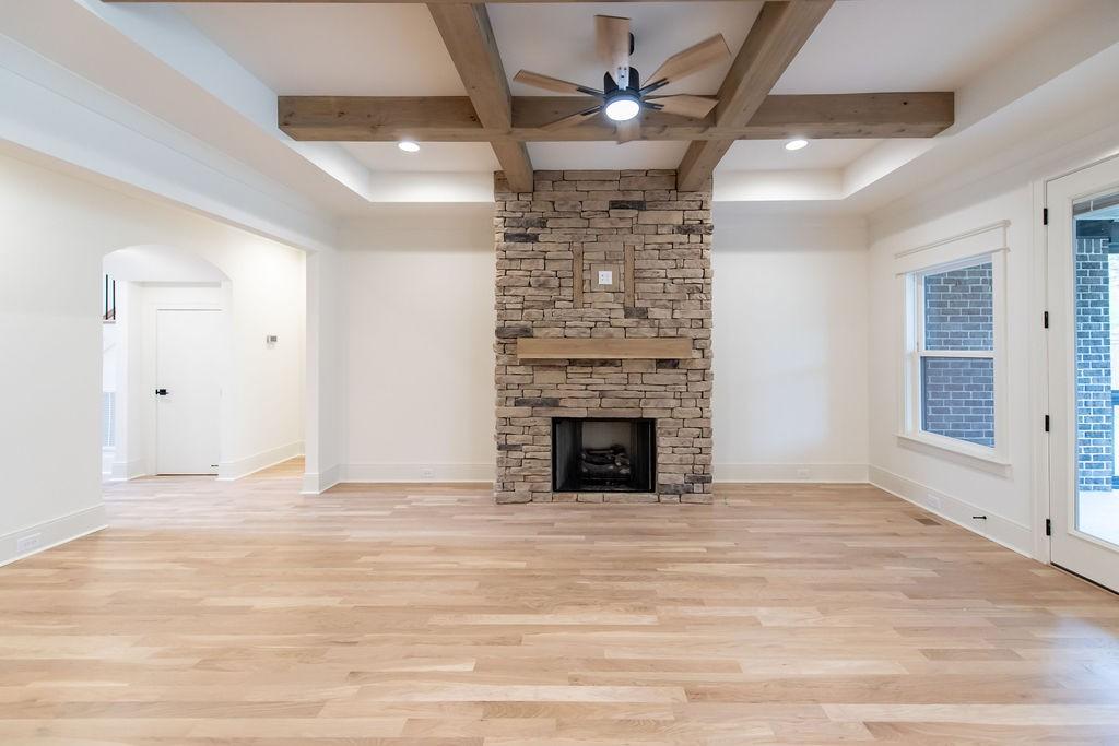 Stunning custom spec home by Universal Builders in the sought-after Stonehollow community! The Walton Plan offers 4 bedrooms, 3 full baths, and 1 half bath with a thoughtfully designed layout and elevated finishes throughout. A beautiful study with custom built-ins and glass French doors greets you off the foyer. The great room features a floor-to-ceiling stone fireplace surround, cedar ceiling beams, and seamlessly opens to the kitchen.The kitchen showcases custom white oak cabinetry, granite/quartz countertops, and GE Café stainless steel appliances, including a gas cooktop, built-in microwave, oven, dishwasher, and refrigerator. The main-level primary suite is a true retreat with a tray ceiling, ceiling fan, double vanities, freestanding soaking tub with floor-mounted faucet and wand, tiled shower, and oversized walk-in closet. A secondary bedroom on the main level with ensuite bath and walk-in closet offers ideal flexibility for guests or multigenerational living. Also on the main level, you’ll find a half bath and convenient drop zone off the 3-car garage, which features epoxy-coated floors. Upstairs includes two additional bedrooms, a full bath, and a bonus room. Sand-and-finish hardwood flooring runs throughout the main floor, stairs, and upstairs landing/hallway, adding warmth and timeless appeal. Enjoy outdoor living year-round on the screened-in back porch, plus full-yard sod, tankless water heater, and the quality craftsmanship Universal Builders is known for.