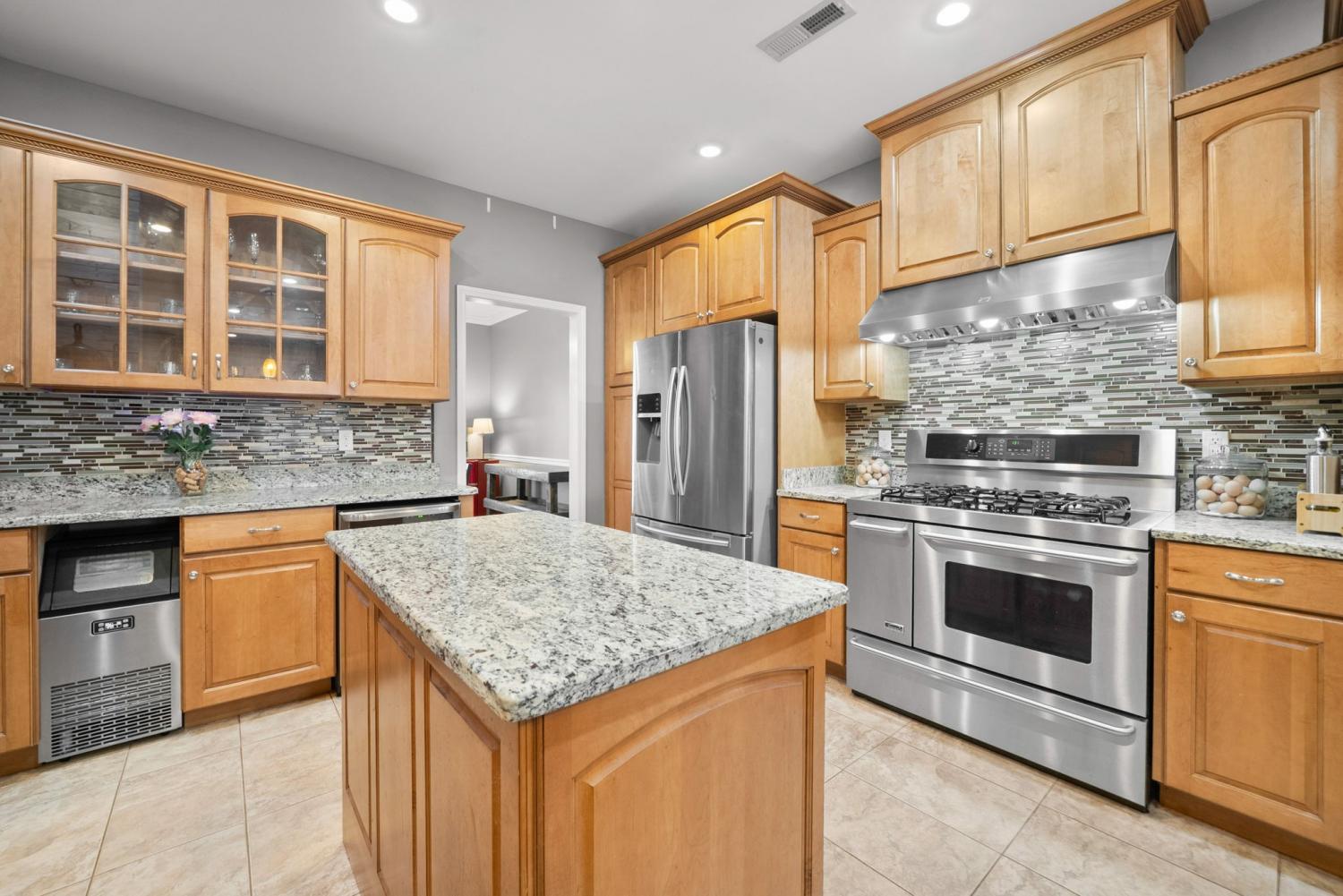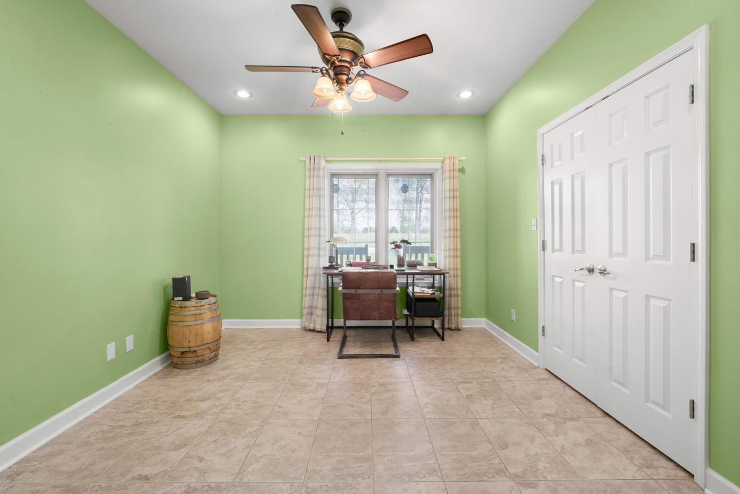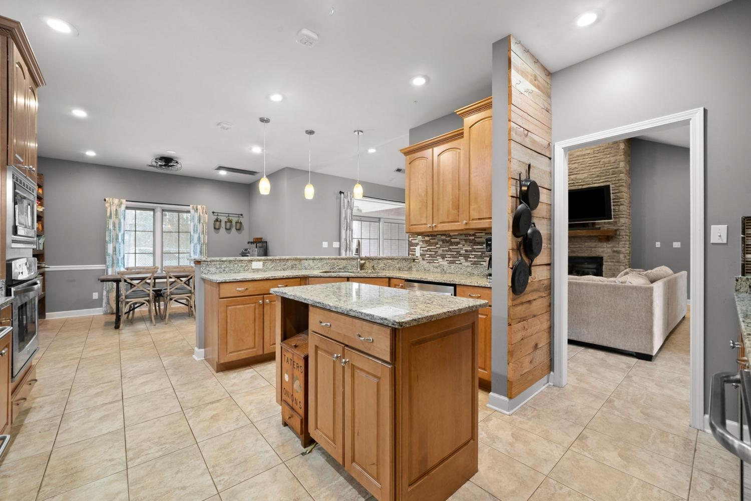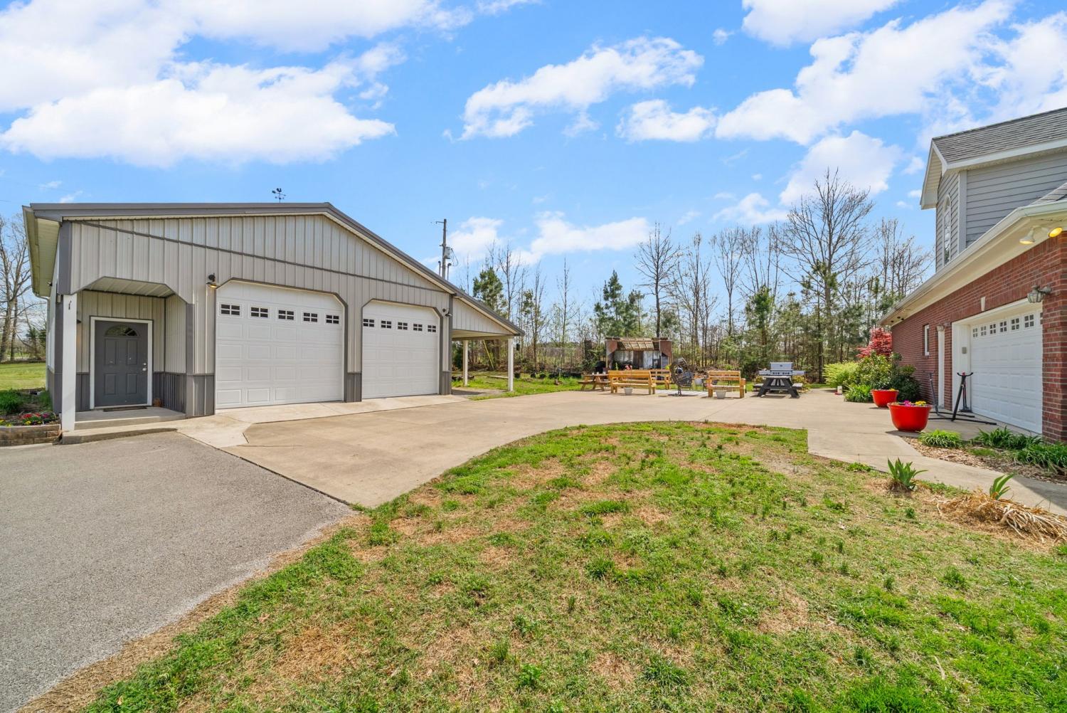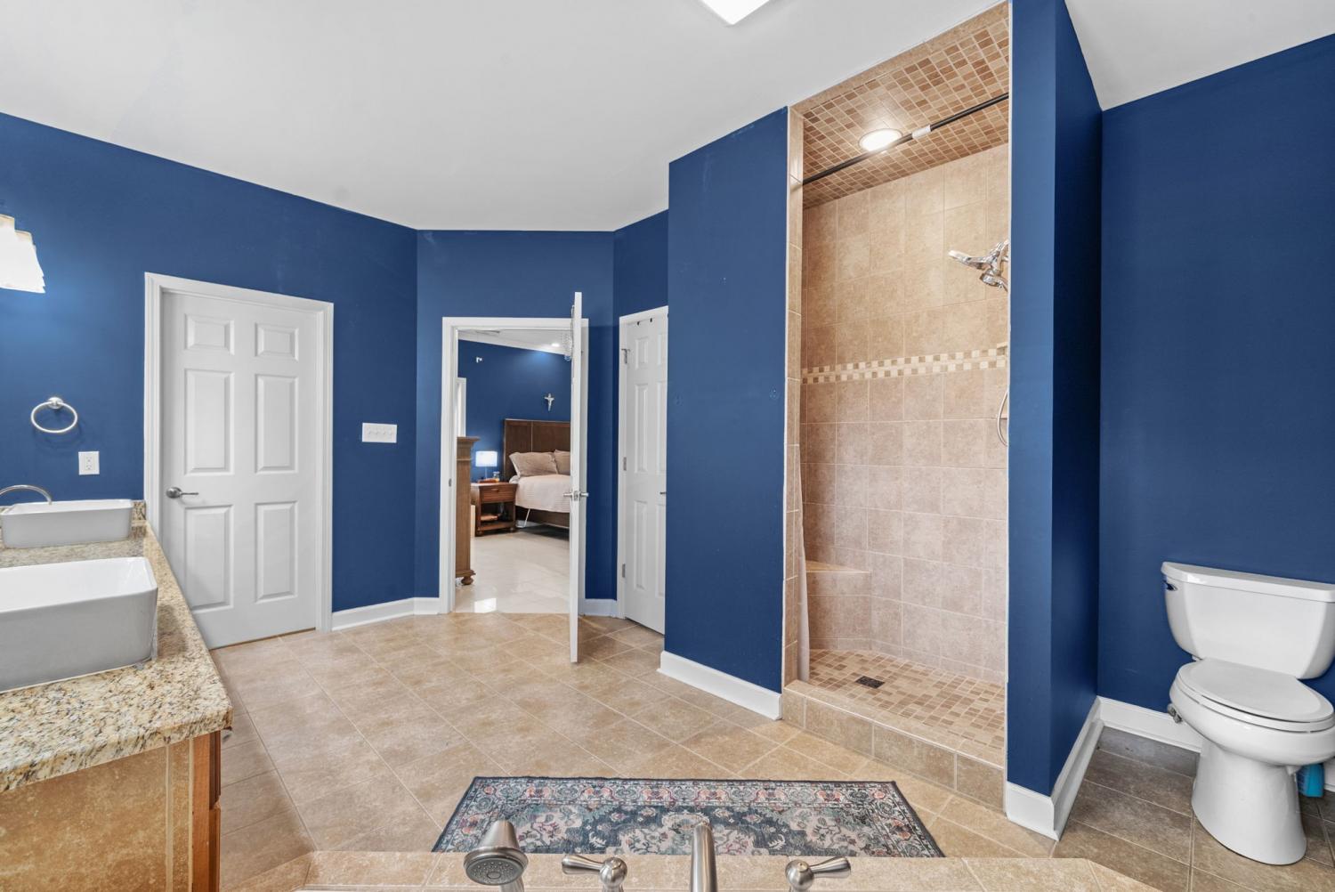 Stunning executive brick home set on nearly 3 private acres, offering space, efficiency, and thoughtful design throughout. This 5 bedroom, 5 full bathroom home features a functional layout with room to live, work, and entertain. The main level showcases heated ceramic tile floors powered by an energy-efficient electric tankless water heater, creating both comfort and long-term efficiency. The open concept living area is anchored by a beautiful stone fireplace, flowing seamlessly into a fully equipped kitchen with granite countertops, gas range with hood, built-in oven, ice maker, wine cooler, and ample cabinetry. Formal and casual dining spaces provide flexibility for everyday living and hosting. The primary suite offers a spacious retreat with a spa-like feel. Additional bedrooms are well-sized, and a bonus room provides added flexibility for a home office, media space, or guest accommodations. Hardwood flooring carries throughout the second level. Outside, enjoy privacy along with a 30x40 shop. The property also includes a 1,000-gallon owned propane tank. Fireplace and stove are connected to propane. Scenic views are enhanced by a Vineyard located just across the street. This property offers a rare blend of space, functionality, and efficiency in a peaceful setting.