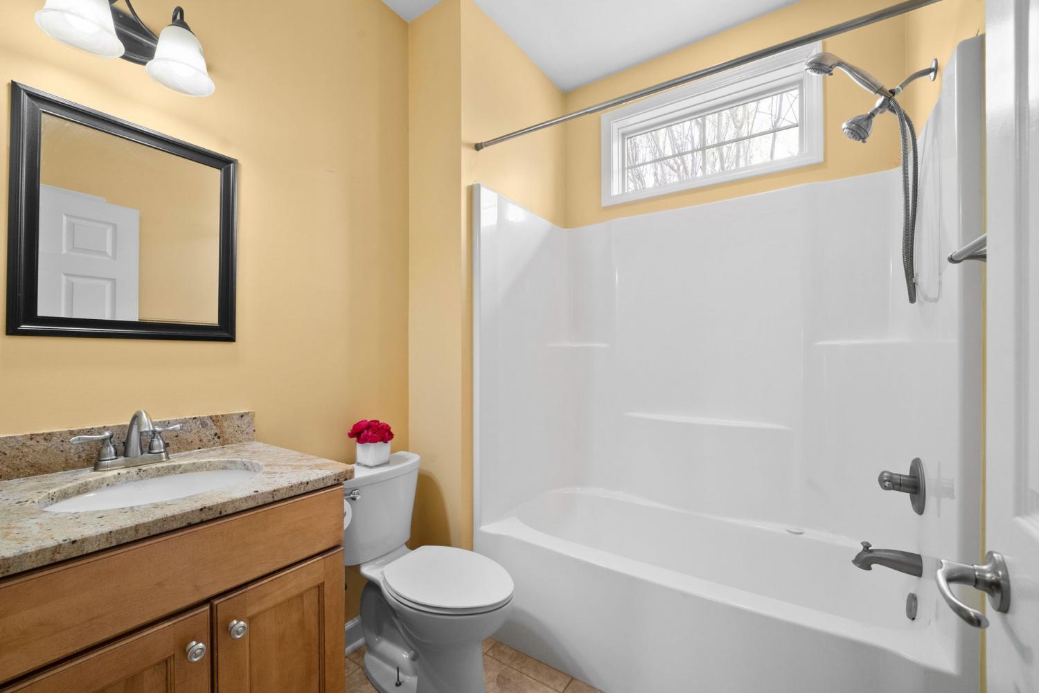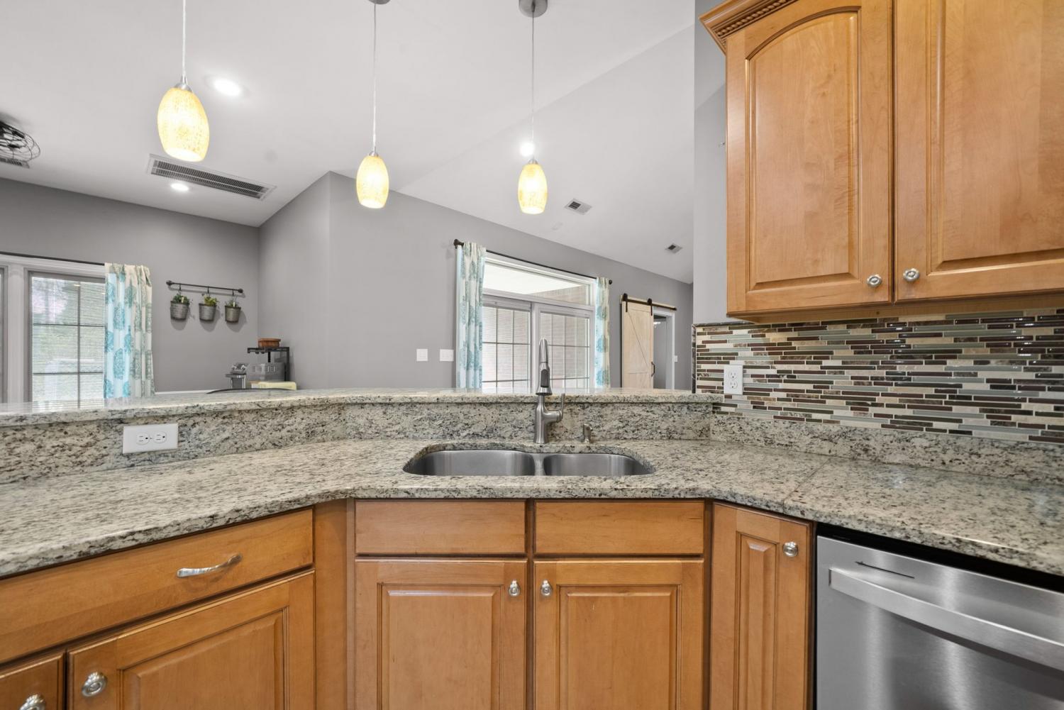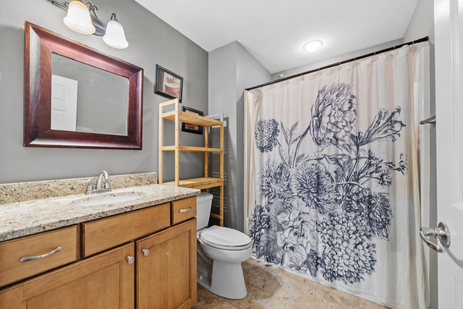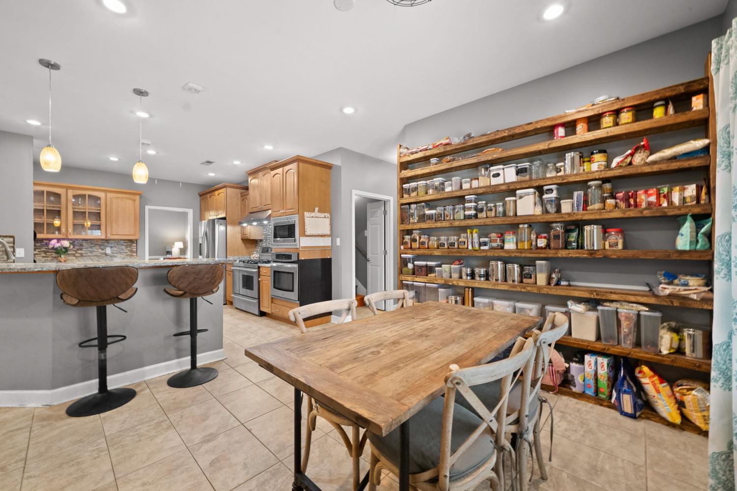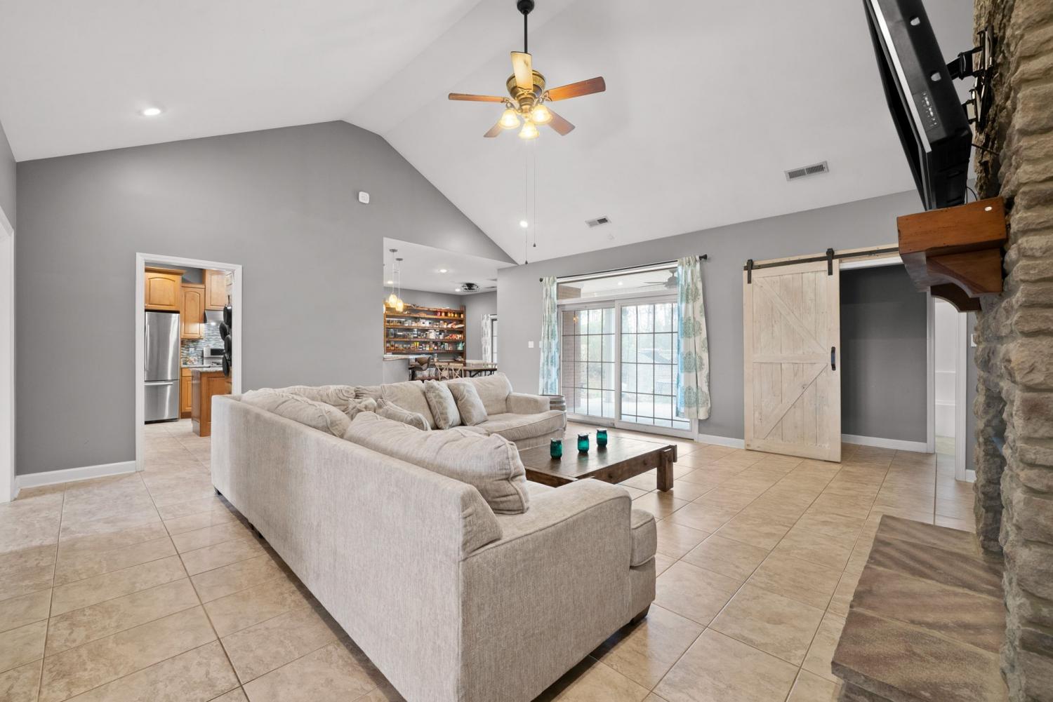 Stunning executive brick home set on nearly 3 private acres, offering space, efficiency, and thoughtful design throughout. This 5 bedroom, 5 full bathroom home features a functional layout with room to live, work, and entertain. The main level showcases heated ceramic tile floors powered by an energy-efficient electric tankless water heater, creating both comfort and long-term efficiency. The open concept living area is anchored by a beautiful stone fireplace, flowing seamlessly into a fully equipped kitchen with granite countertops, gas range with hood, built-in oven, ice maker, wine cooler, and ample cabinetry. Formal and casual dining spaces provide flexibility for everyday living and hosting. The primary suite offers a spacious retreat with a spa-like feel. Additional bedrooms are well-sized, and a bonus room provides added flexibility for a home office, media space, or guest accommodations. Hardwood flooring carries throughout the second level. Outside, enjoy privacy along with a 30x40 shop. The property also includes a 1,000-gallon owned propane tank. Fireplace and stove are connected to propane. Scenic views are enhanced by a Vineyard located just across the street. This property offers a rare blend of space, functionality, and efficiency in a peaceful setting.