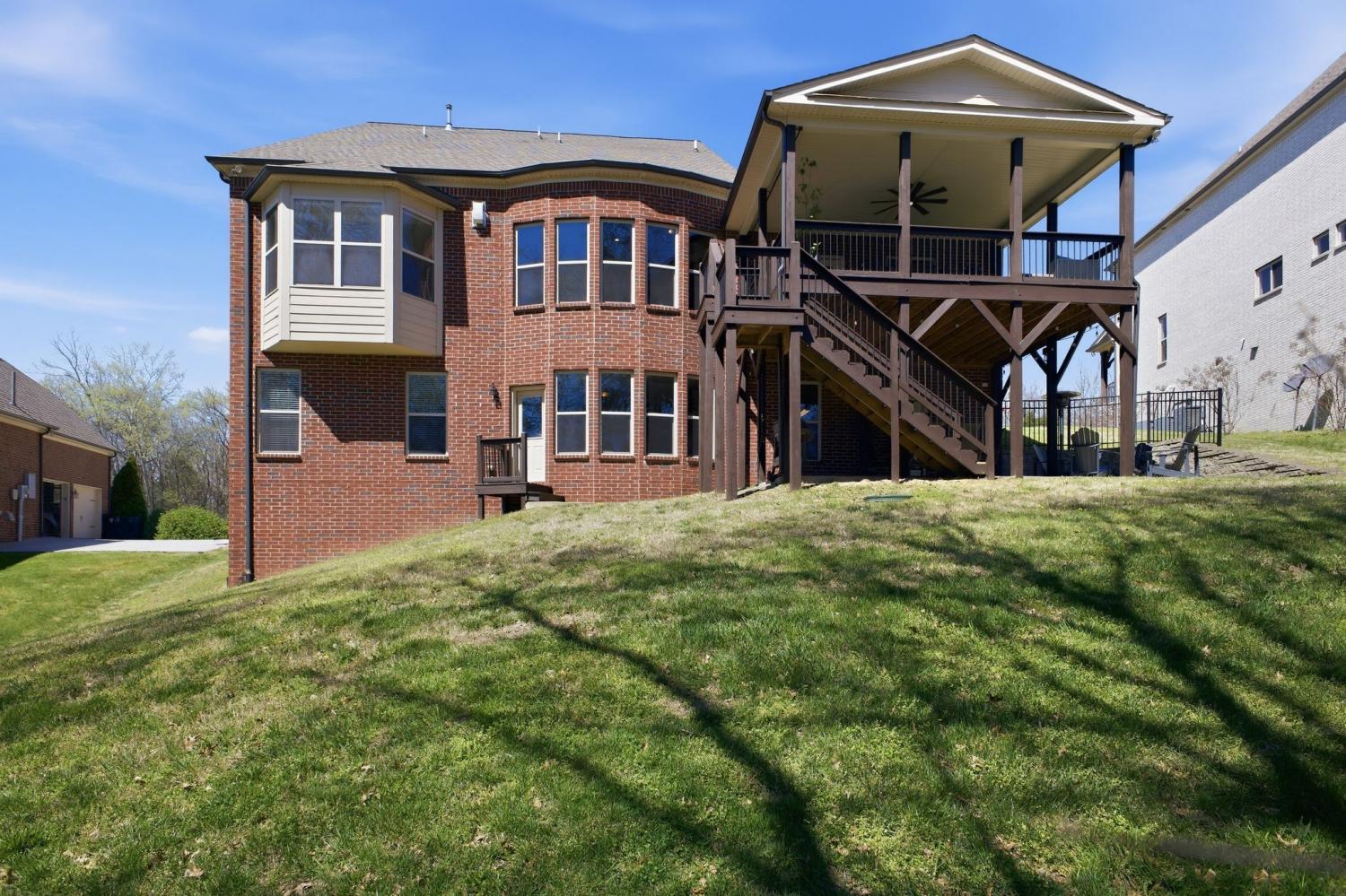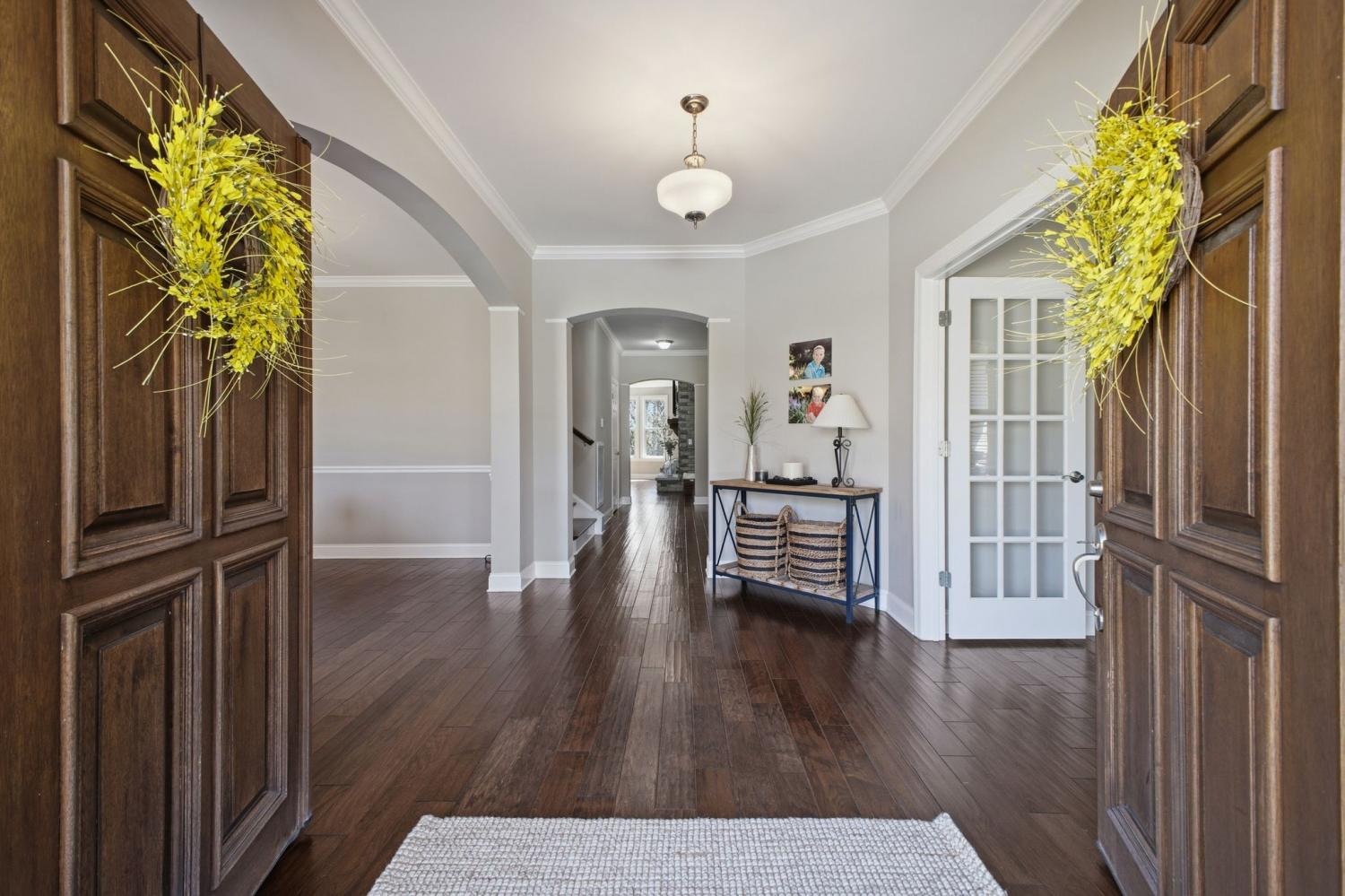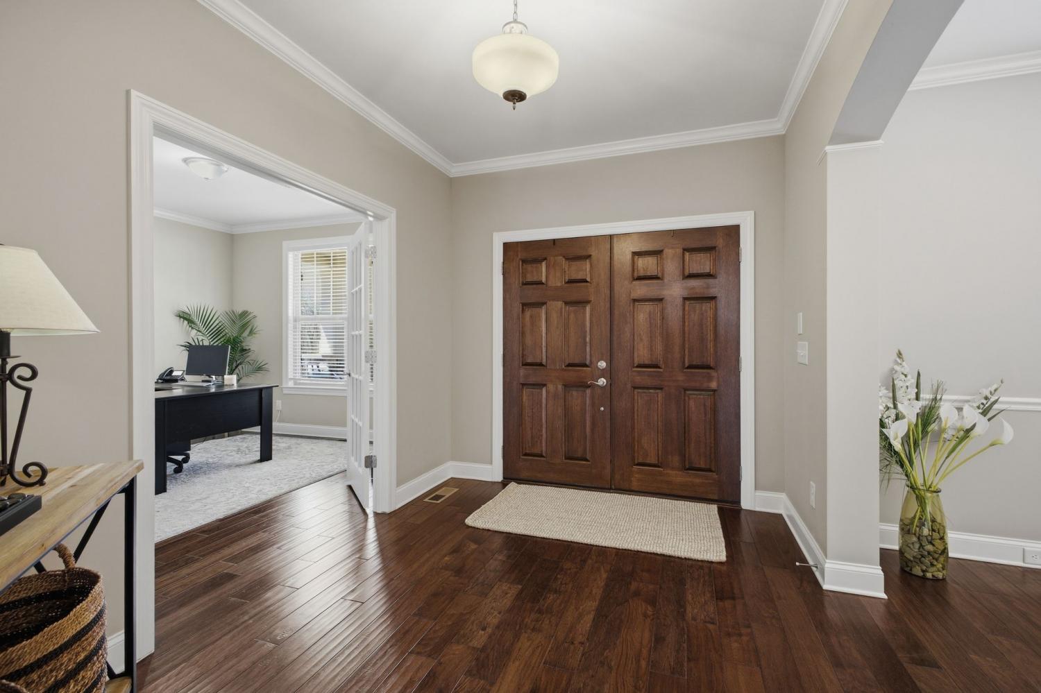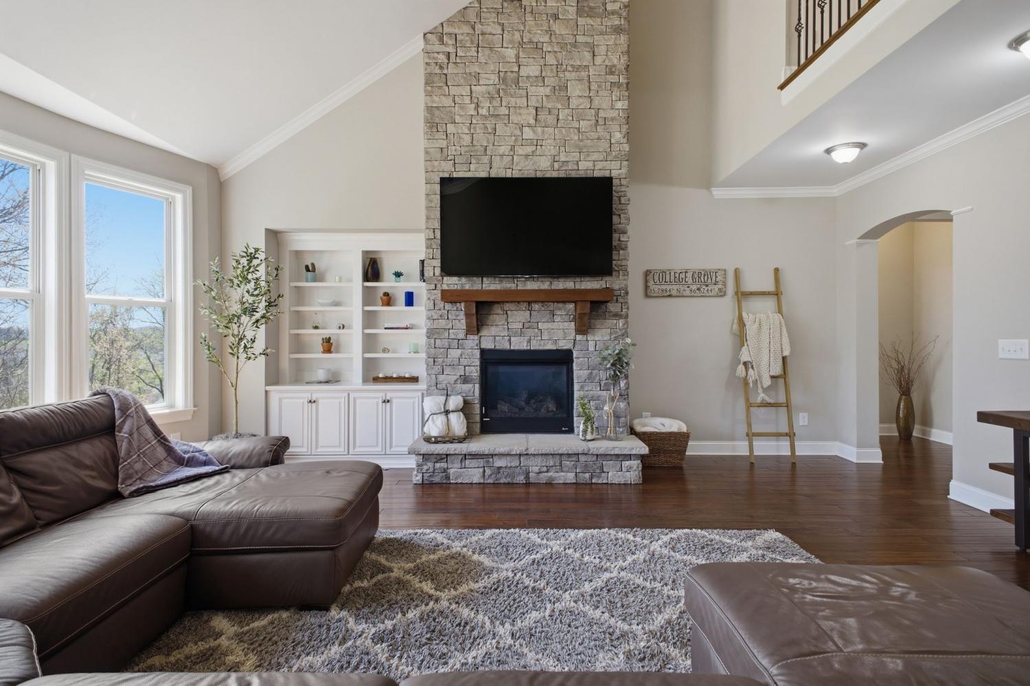 FABULOUS INSIDE and OUT!!! This incredible home offers three levels of thoughtfully designed living spaces showcasing high-end finishes, and is positioned on a premium lot backing to mature trees and a spacious common area creating the ultimate privacy~An upscale "Chef's" kitchen with double ovens, gas cooktop, large island with cafe seating, and casual eat-in area opens to a spacious 2-story vaulted great room with stacked stone fireplace~Private main level primary suite with fully appointed spa worthy bath for self- indulgence~Completing the main level is the formal dining room sized for any occasion, and designated office with French doors creating a private work area~Covered deck off the main level for effortless indoor-outdoor entertaining~Upstairs you will find a large bonus room, and three bedrooms each with generous walk-in closets~The walk-out basement is a true highlight, including a guest en-suite, huge media/rec room, and expansion area with endless possibilities with private entrance~Large windows fill this space with natural light and a covered patio is accessible through the private entrance for sipping your morning coffee or hosting cookouts~Falls Grove is known for its family friendly resort style amenites including pool, clubhouse, fitness center (Peloton, TRX, Assault bike), putting green, tennis and basketball courts, playground, nature trails, and abundance of green space~With easy interstate access you are minutes to Franklin, Cool Springs, shopping and dining~Award winning schools~3 car garage~Bring your golf cart and enjoy where elevated living and community come together!!!