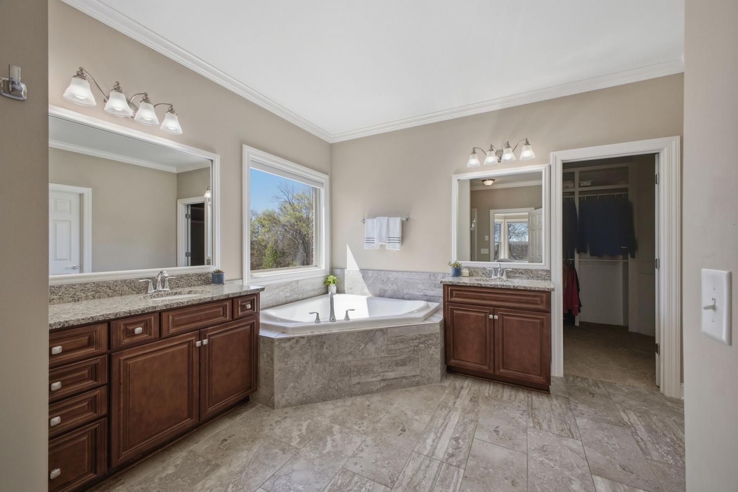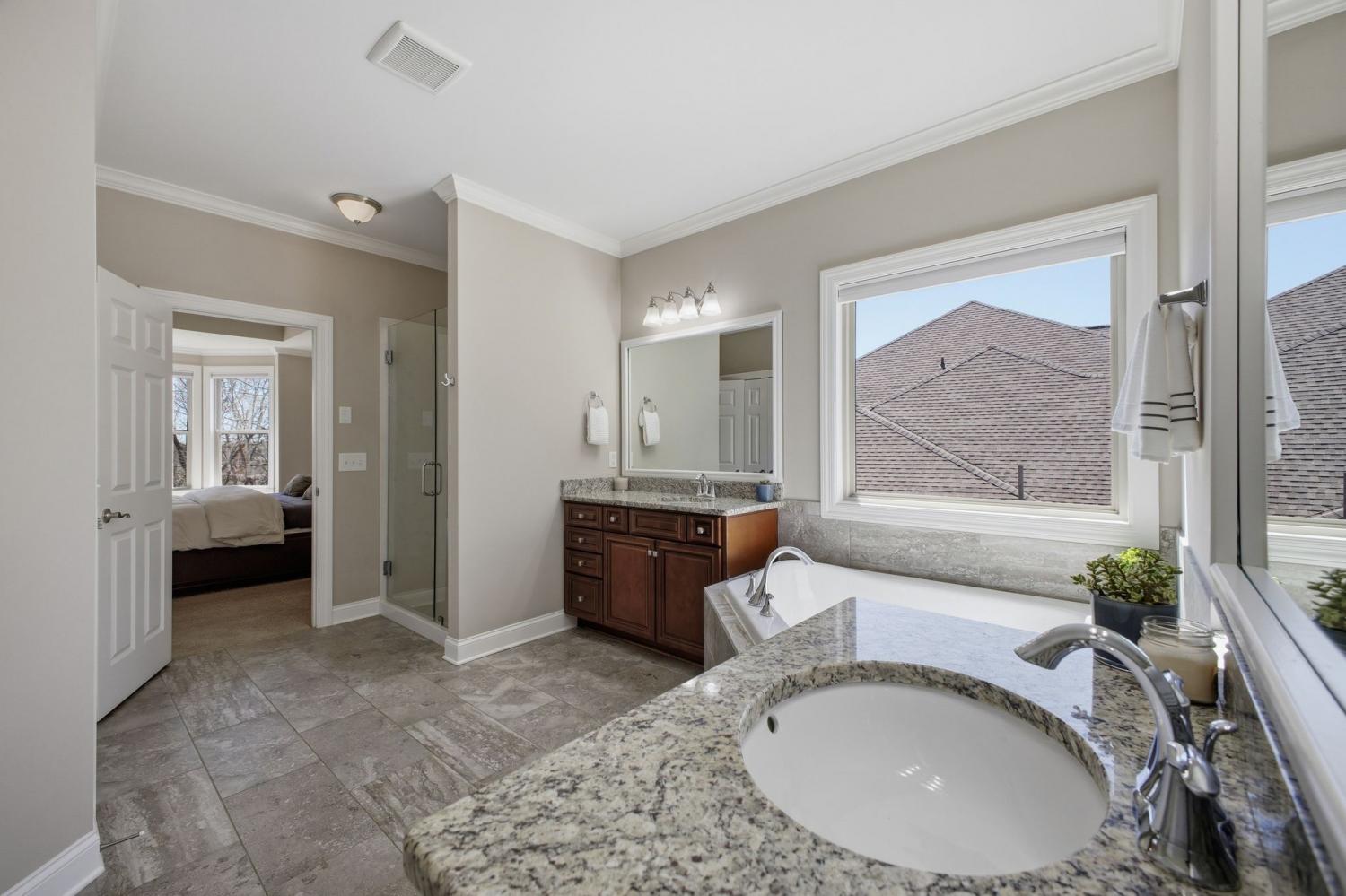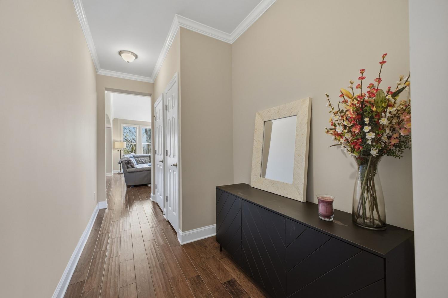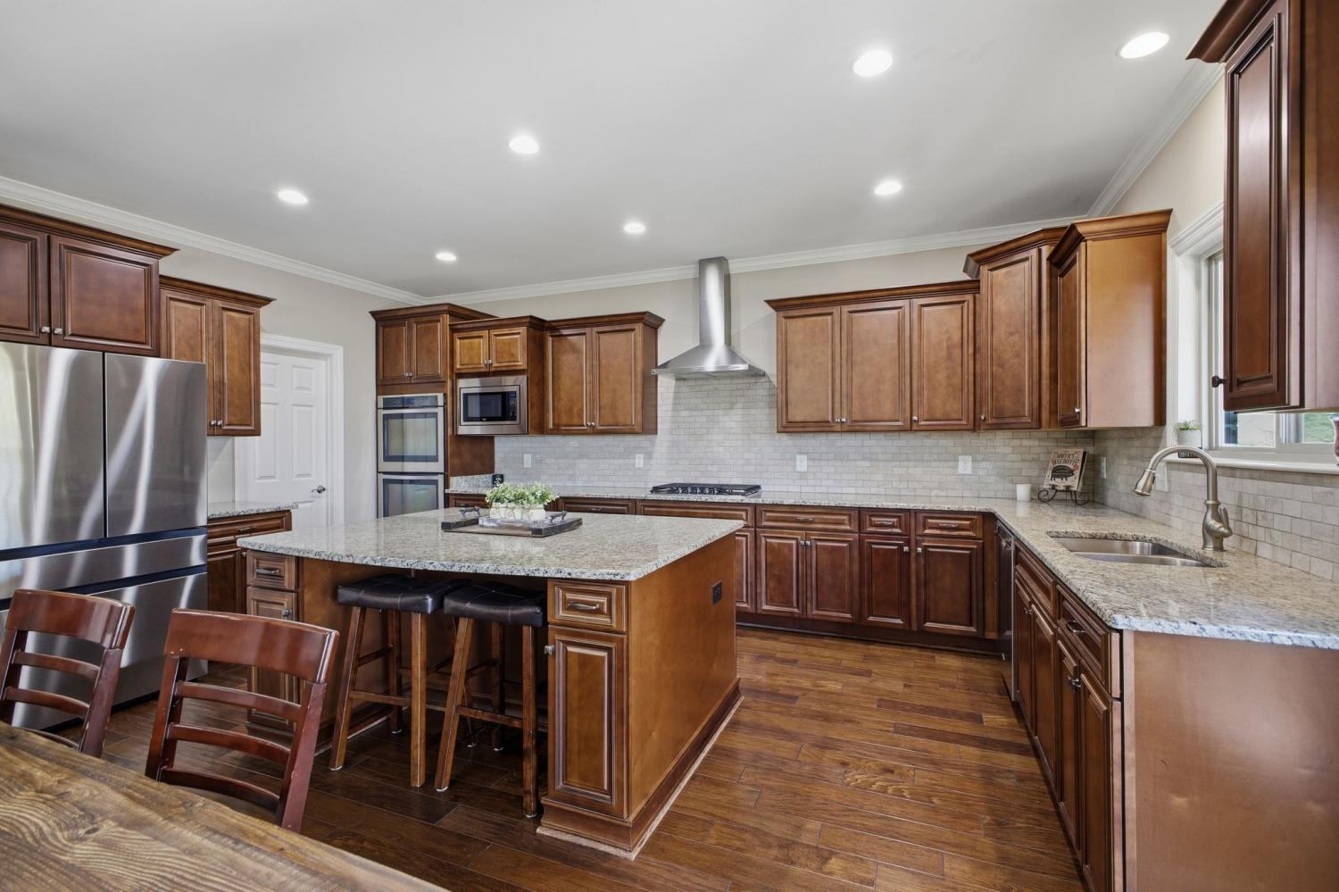 FABULOUS INSIDE and OUT!!! This incredible home offers three levels of thoughtfully designed living spaces showcasing high-end finishes, and is positioned on a premium lot backing to mature trees and a spacious common area creating the ultimate privacy~An upscale "Chef's" kitchen with double ovens, gas cooktop, large island with cafe seating, and casual eat-in area opens to a spacious 2-story vaulted great room with stacked stone fireplace~Private main level primary suite with fully appointed spa worthy bath for self- indulgence~Completing the main level is the formal dining room sized for any occasion, and designated office with French doors creating a private work area~Covered deck off the main level for effortless indoor-outdoor entertaining~Upstairs you will find a large bonus room, and three bedrooms each with generous walk-in closets~The walk-out basement is a true highlight, including a guest en-suite, huge media/rec room, and expansion area with endless possibilities with private entrance~Large windows fill this space with natural light and a covered patio is accessible through the private entrance for sipping your morning coffee or hosting cookouts~Falls Grove is known for its family friendly resort style amenites including pool, clubhouse, fitness center (Peloton, TRX, Assault bike), putting green, tennis and basketball courts, playground, nature trails, and abundance of green space~With easy interstate access you are minutes to Franklin, Cool Springs, shopping and dining~Award winning schools~3 car garage~Bring your golf cart and enjoy where elevated living and community come together!!!