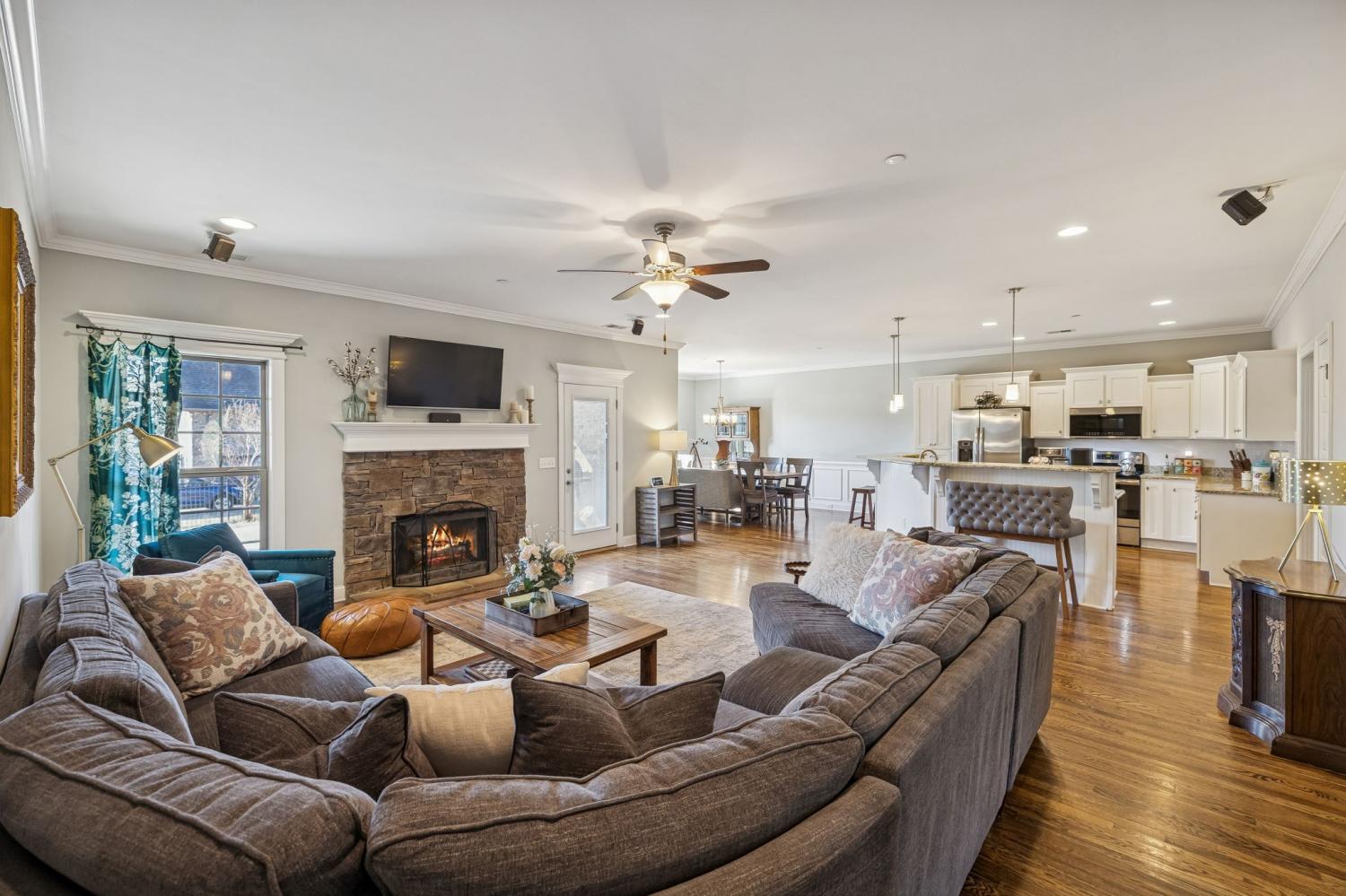 Located in the beautiful Cascade Falls community of Murfreesboro, this elegant two-story home sits on a premium homesite offering privacy, space, and convenience in one of the area’s most desirable neighborhoods. A welcoming entry foyer opens into a bright, open floorplan accented by finished wood flooring and designed for effortless entertaining and everyday comfort. The living area is anchored by a cozy fireplace, creating an inviting atmosphere, while the kitchen showcases granite countertops, custom cabinetry with generous storage, recessed lighting, stainless steel appliances, and easy flow into the formal dining space. The primary suite serves as a private retreat with double vanities, a separate tub and shower, and a spacious walk-in closet. Also downstairs you will find two guest bedrooms for a total of three bedrooms on the first level. Upstairs features an additional bedroom, a flexible media or bonus room, and an oversized walk-in attic providing exceptional storage options. Step outside to enjoy a covered patio and extended outdoor living space ideal for relaxing or hosting summer BBQs, all surrounded by peaceful scenery and upscale neighboring homes. Additional highlights include a side-entry two-car garage, ample driveway parking, and a backyard playground, all just minutes from Murfreesboro shopping, dining, and daily essentials. Opportunities in North Murfreesboro with no HOA are limited, so schedule your private showing and experience the comfort, style, and location this home has to offer.