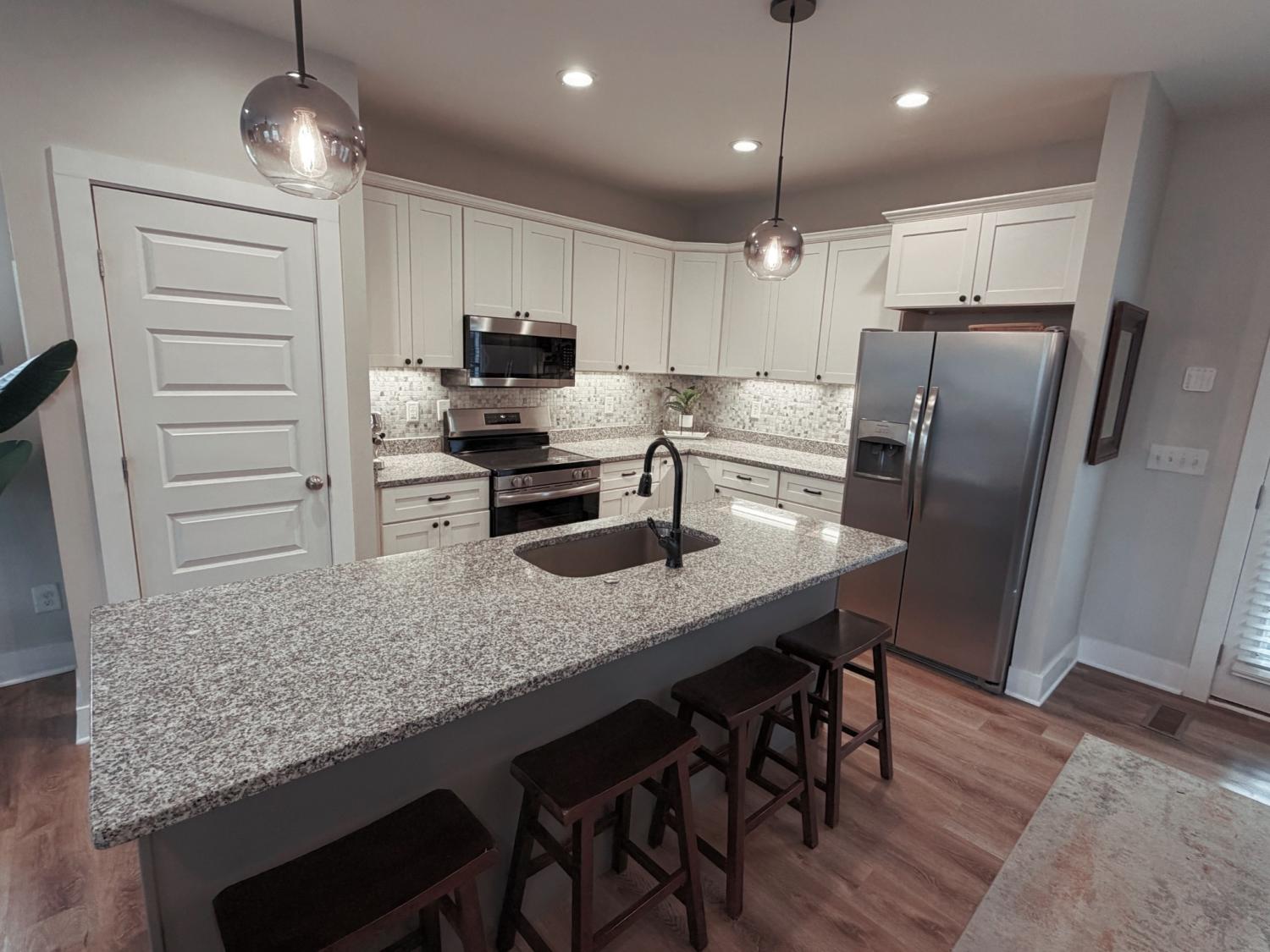 PRICE DROP! OPEN HOUSE SUNDAY 2-4pm! MOTIVATED SELLERS! Welcome to this beautifully designed 3-bedroom, 2.5-bathroom home that perfectly blends modern style with everyday functionality. The open floor concept on the main level creates a bright and inviting atmosphere, ideal for both entertaining and comfortable daily living. The spacious living room is anchored by a custom-built electric fireplace, adding warmth and a stylish focal point to the heart of the home. The kitchen and living areas flow seamlessly together, providing an ideal setup for gatherings, while still maintaining a cozy, welcoming feel. The main floor primary bedroom offers a peaceful retreat, featuring a tasteful accent wall, a generous walk-in closet, and private access to a screened-in porch—perfect for enjoying your morning coffee or unwinding in the evening. Upstairs, newly installed wood floors on the staircase and expansive landing add a fresh, elevated touch and enhance the overall character of the home. The additional bedrooms are impressively sized, offering flexibility for guests, home offices, or creative spaces. Thoughtful custom details continue throughout, including a stylish barn door, adding both charm and functionality. Storage is abundant across the home, ensuring everything has its place without sacrificing style or space. Ideally located just minutes from Rock Harbor Marina and Nashville West Shopping Center, you’ll enjoy easy access to waterfront recreation, shopping, dining, and entertainment. One of the lowest price/sqft in Charlotte Park!