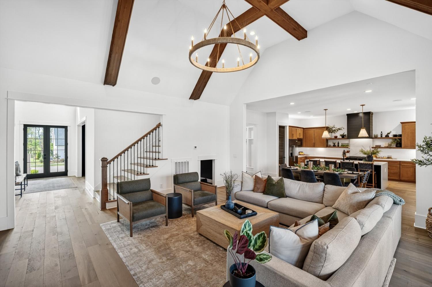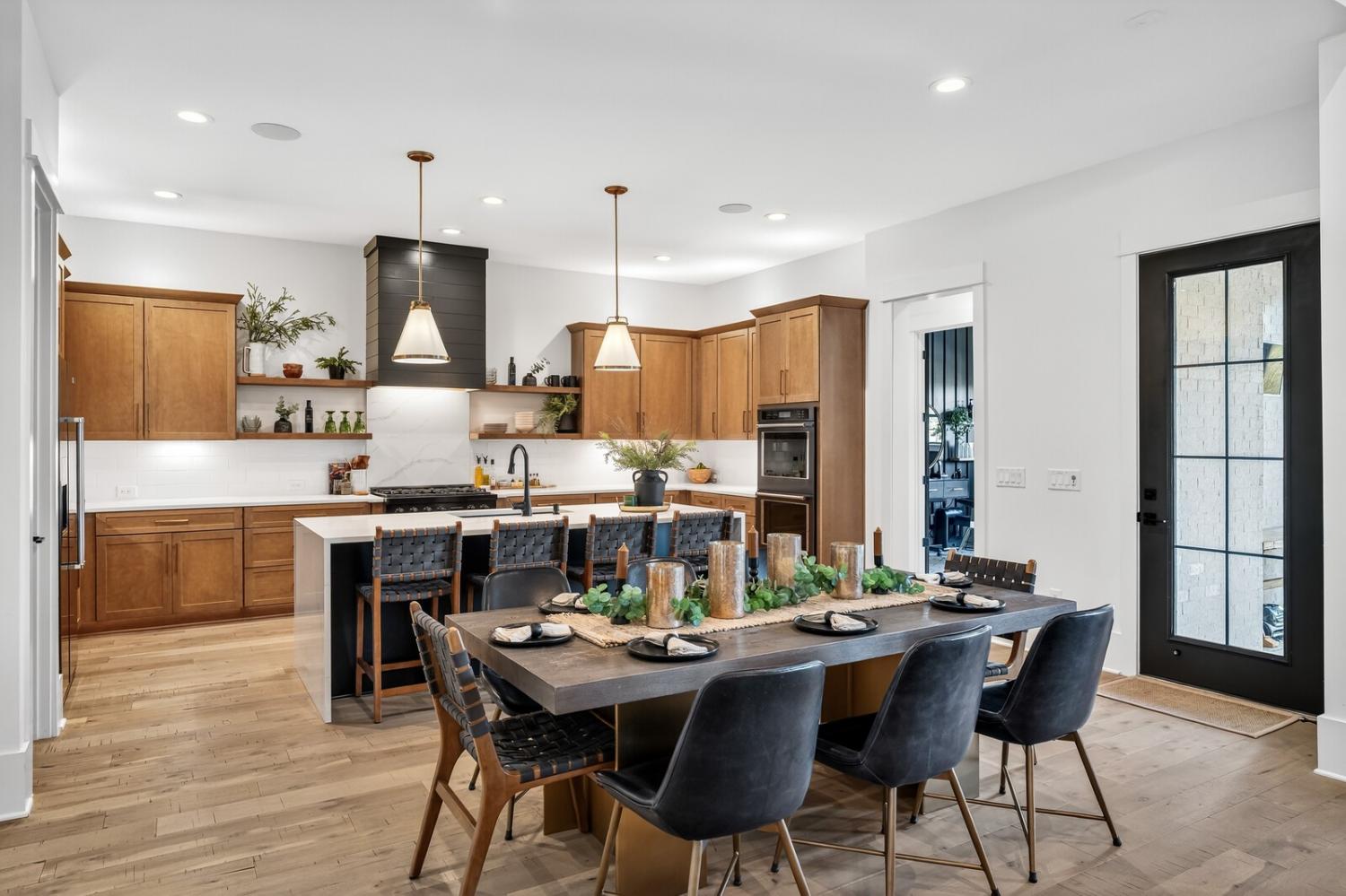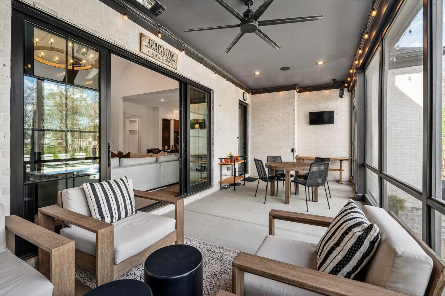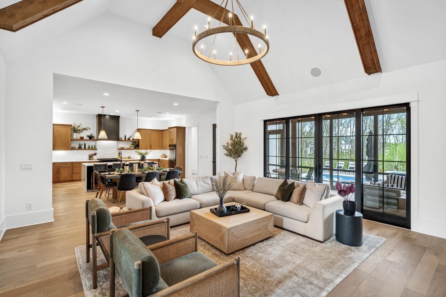 Welcome to this exceptional semi-custom estate in the prestigious Hardeman Springs community, perfectly situated on a private half-acre homesite. Offering 4,804 square feet, this beautifully designed home features 5 bedrooms, a bonus room, 4.5 baths, and a 3-car garage—blending timeless elegance with modern comfort throughout. The outdoor living space is truly remarkable. Backing to a serene, tree-lined buffer, the fully fenced yard provides privacy and tranquility. Over $300,000 has been invested to create a resort-style retreat, complete with a stunning in-ground pool and spa, professional landscape lighting, irrigation, and mature privacy plantings. Expansive sliding doors lead to a screened-in porch with a fireplace, ceiling fan, and heater—perfect for year-round entertaining. Inside, over $200,000 in upgrades elevate the home’s interior. The open-concept design centers around a chef’s kitchen featuring waterfall quartz countertops, double ovens, custom shelving, black stainless appliances, and under-cabinet lighting. The living room impresses with vaulted ceilings, cedar beams, and a gas fireplace with floor-to-ceiling shiplap and custom built-ins. The main-level primary suite offers a spa-like bath with dual vanities, soaking tub, walk-in shower, and an over-sized custom-designed boutique-styled closet. A private guest suite on the main level includes its own full bath and walk-in closet. Additional highlights include a spacious laundry room, built-in workspace, wet bar with wine fridge, pet retreat, and a flexible dining or sitting room. Upstairs features a large bonus room and three additional bedrooms. Thoughtful details throughout include engineered hardwood floors, epoxy garage floors, and a whole-home audio system extending outdoors. This turnkey home offers a rare opportunity to experience luxury living in one of the area’s most desirable communities.
