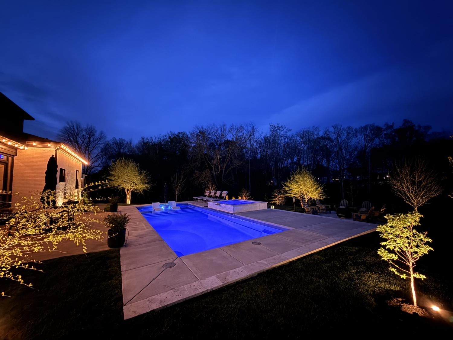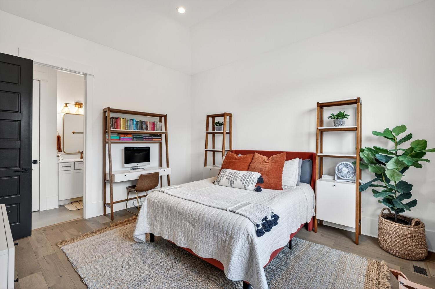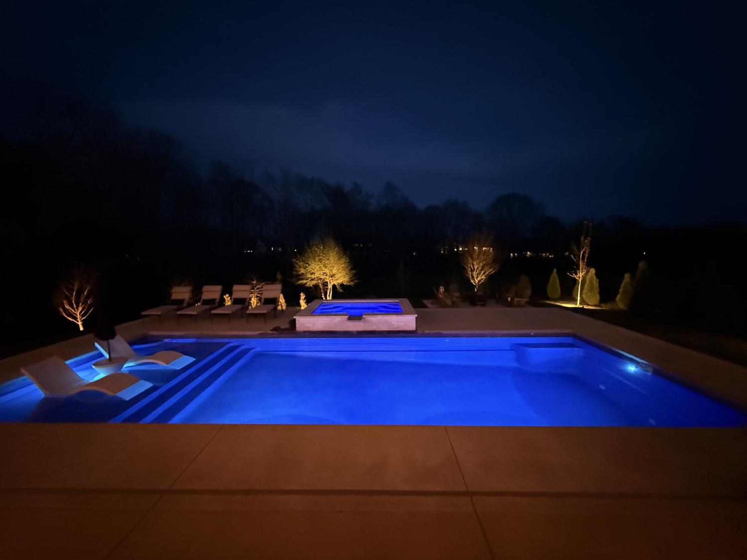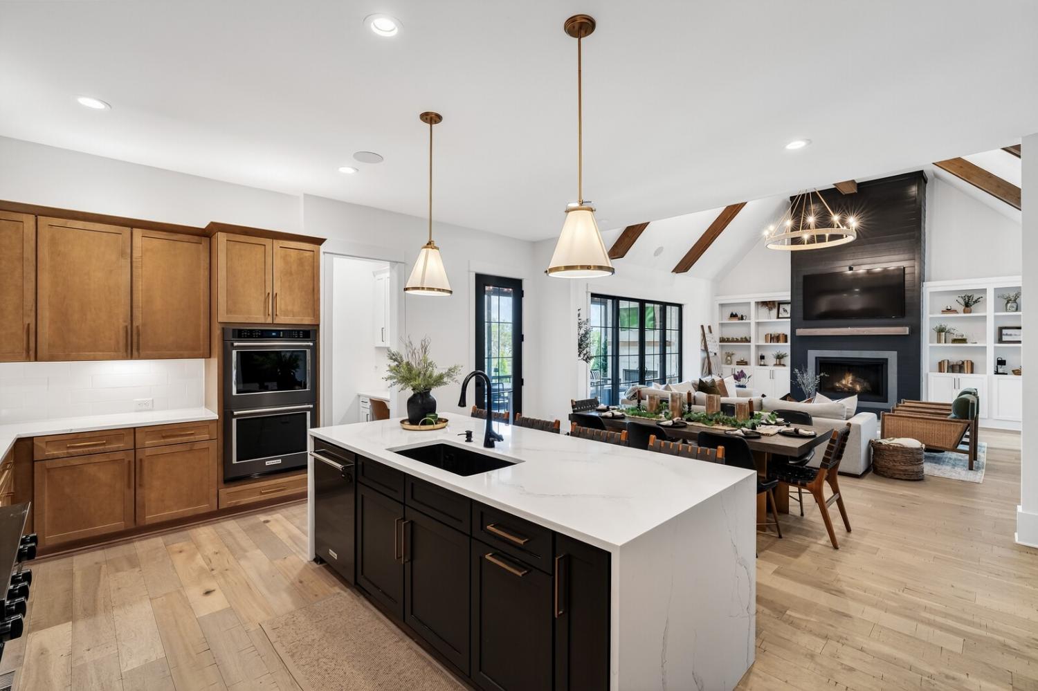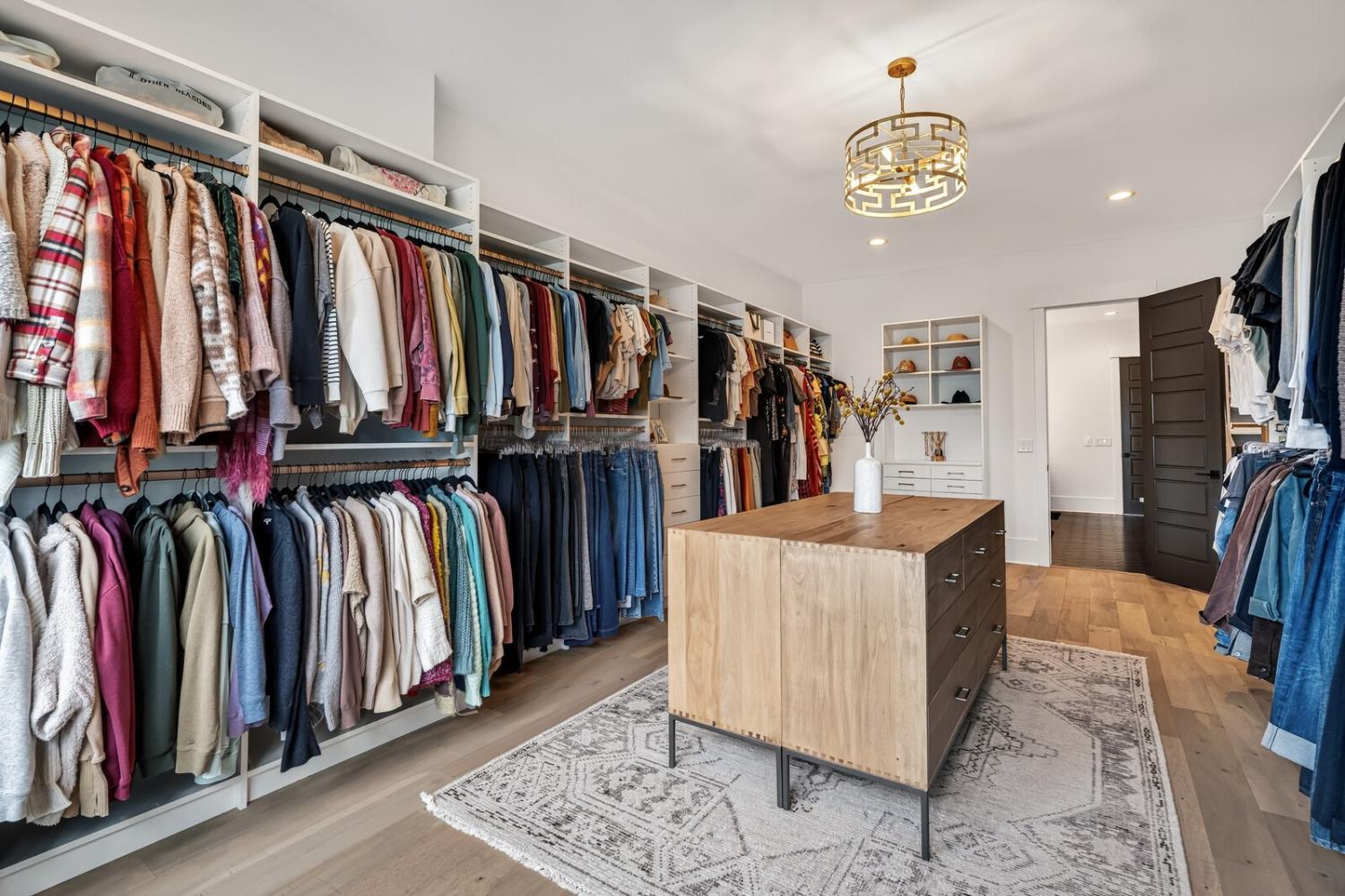 Welcome to this exceptional semi-custom estate in the prestigious Hardeman Springs community, perfectly situated on a private half-acre homesite. Offering 4,804 square feet, this beautifully designed home features 5 bedrooms, a bonus room, 4.5 baths, and a 3-car garage—blending timeless elegance with modern comfort throughout. The outdoor living space is truly remarkable. Backing to a serene, tree-lined buffer, the fully fenced yard provides privacy and tranquility. Over $300,000 has been invested to create a resort-style retreat, complete with a stunning in-ground pool and spa, professional landscape lighting, irrigation, and mature privacy plantings. Expansive sliding doors lead to a screened-in porch with a fireplace, ceiling fan, and heater—perfect for year-round entertaining. Inside, over $200,000 in upgrades elevate the home’s interior. The open-concept design centers around a chef’s kitchen featuring waterfall quartz countertops, double ovens, custom shelving, black stainless appliances, and under-cabinet lighting. The living room impresses with vaulted ceilings, cedar beams, and a gas fireplace with floor-to-ceiling shiplap and custom built-ins. The main-level primary suite offers a spa-like bath with dual vanities, soaking tub, walk-in shower, and an over-sized custom-designed boutique-styled closet. A private guest suite on the main level includes its own full bath and walk-in closet. Additional highlights include a spacious laundry room, built-in workspace, wet bar with wine fridge, pet retreat, and a flexible dining or sitting room. Upstairs features a large bonus room and three additional bedrooms. Thoughtful details throughout include engineered hardwood floors, epoxy garage floors, and a whole-home audio system extending outdoors. This turnkey home offers a rare opportunity to experience luxury living in one of the area’s most desirable communities.