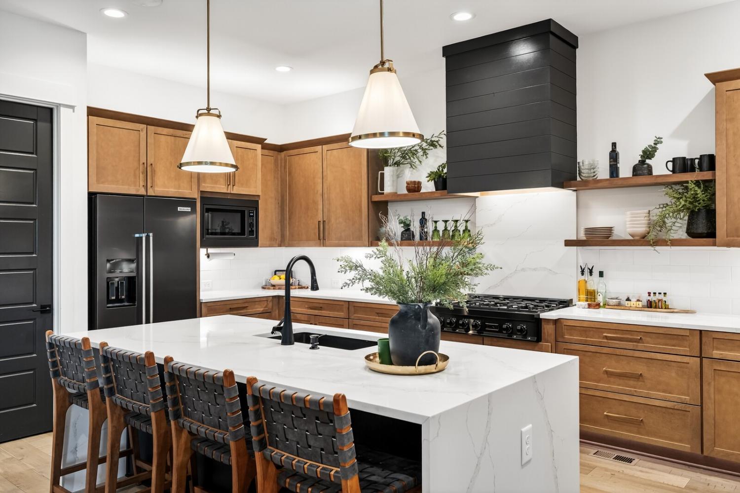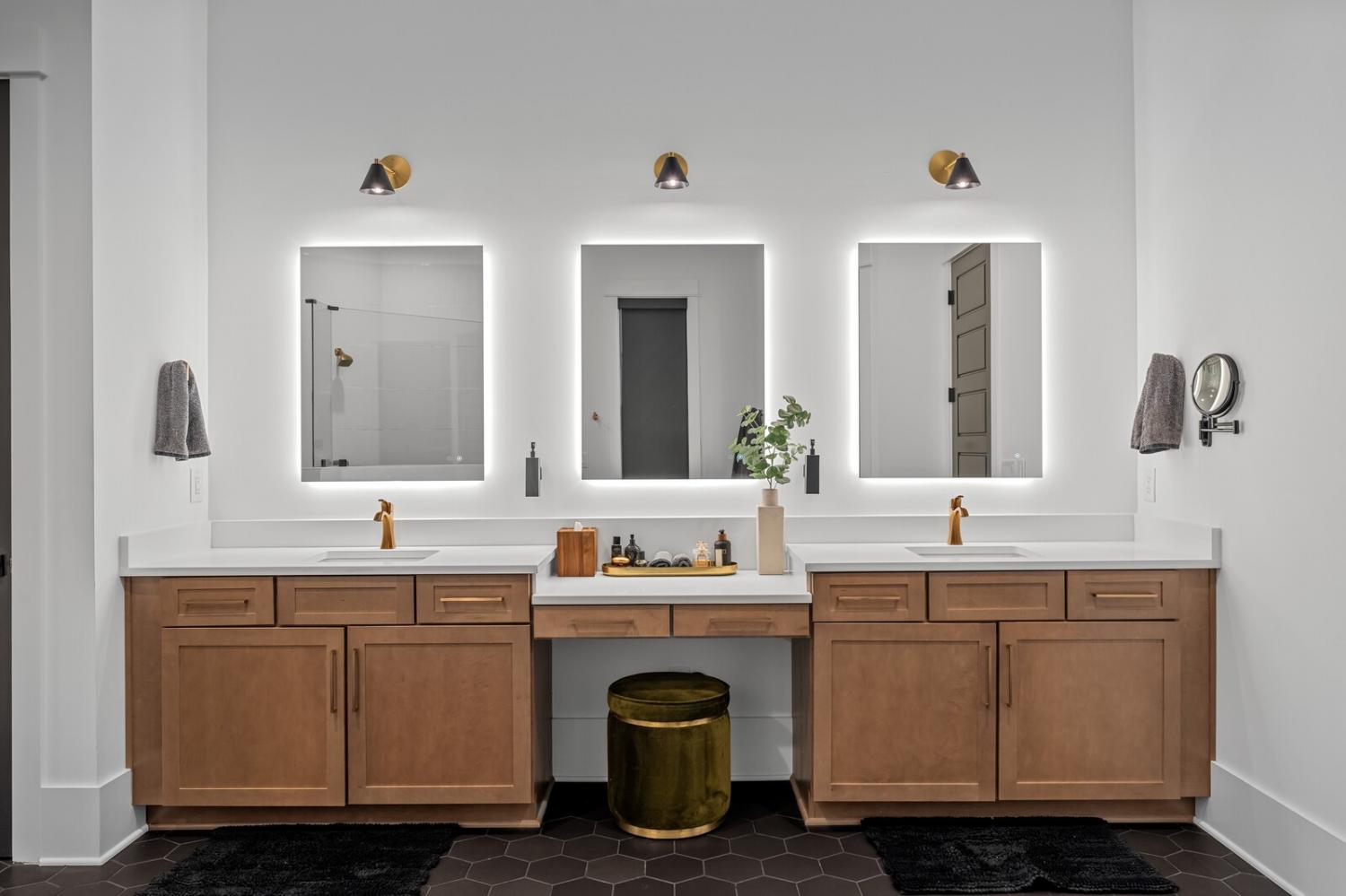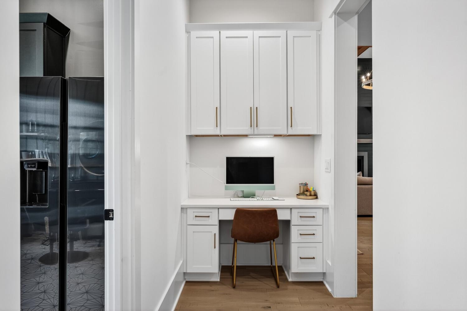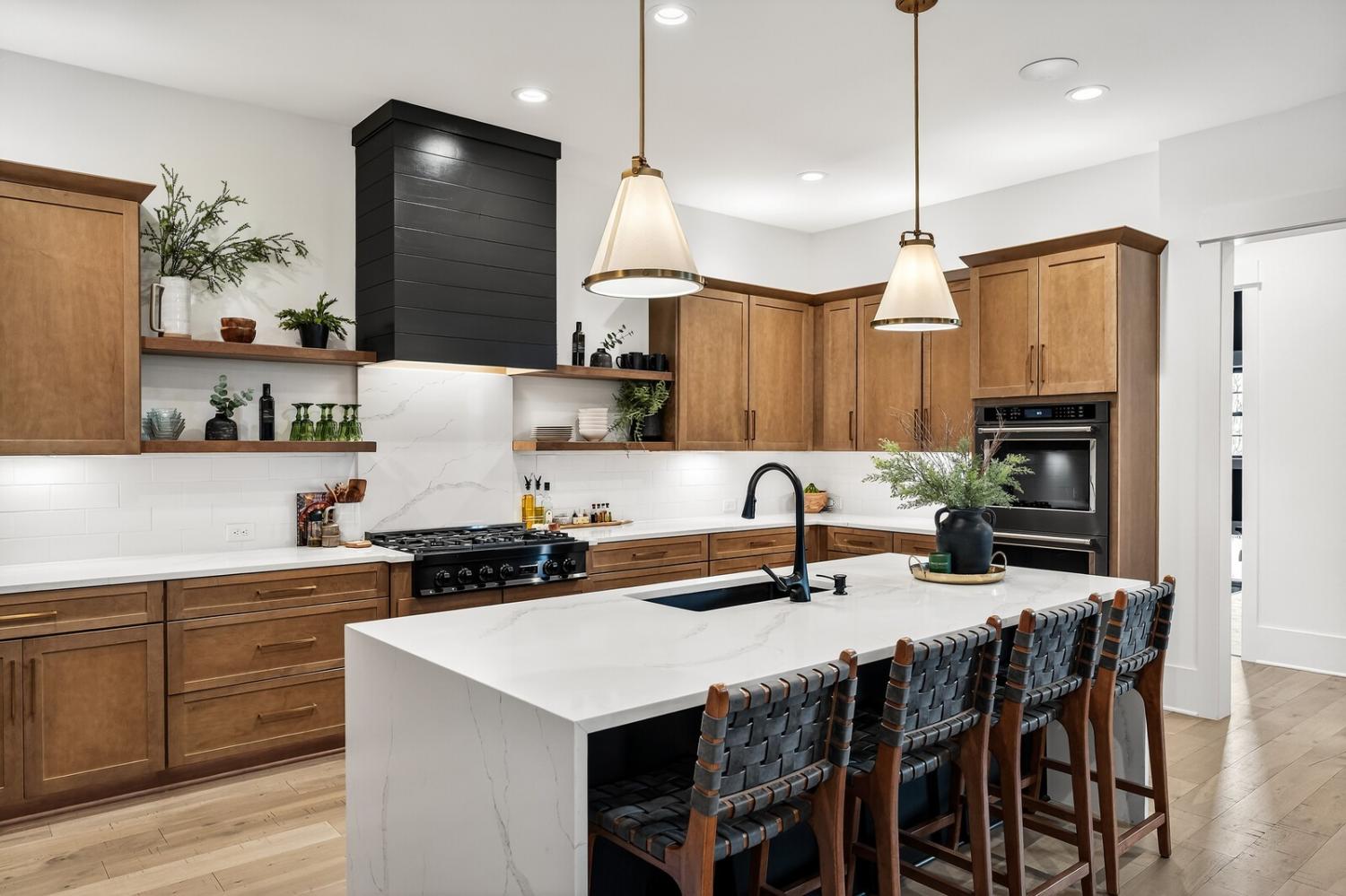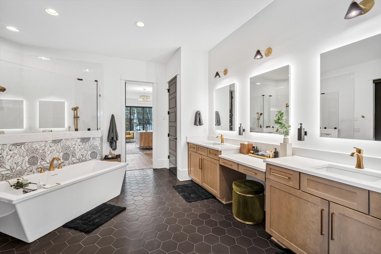 Welcome to this exceptional semi-custom estate in the prestigious Hardeman Springs community, perfectly situated on a private half-acre homesite. Offering 4,804 square feet, this beautifully designed home features 5 bedrooms, a bonus room, 4.5 baths, and a 3-car garage—blending timeless elegance with modern comfort throughout. The outdoor living space is truly remarkable. Backing to a serene, tree-lined buffer, the fully fenced yard provides privacy and tranquility. Over $300,000 has been invested to create a resort-style retreat, complete with a stunning in-ground pool and spa, professional landscape lighting, irrigation, and mature privacy plantings. Expansive sliding doors lead to a screened-in porch with a fireplace, ceiling fan, and heater—perfect for year-round entertaining. Inside, over $200,000 in upgrades elevate the home’s interior. The open-concept design centers around a chef’s kitchen featuring waterfall quartz countertops, double ovens, custom shelving, black stainless appliances, and under-cabinet lighting. The living room impresses with vaulted ceilings, cedar beams, and a gas fireplace with floor-to-ceiling shiplap and custom built-ins. The main-level primary suite offers a spa-like bath with dual vanities, soaking tub, walk-in shower, and an over-sized custom-designed boutique-styled closet. A private guest suite on the main level includes its own full bath and walk-in closet. Additional highlights include a spacious laundry room, built-in workspace, wet bar with wine fridge, pet retreat, and a flexible dining or sitting room. Upstairs features a large bonus room and three additional bedrooms. Thoughtful details throughout include engineered hardwood floors, epoxy garage floors, and a whole-home audio system extending outdoors. This turnkey home offers a rare opportunity to experience luxury living in one of the area’s most desirable communities.