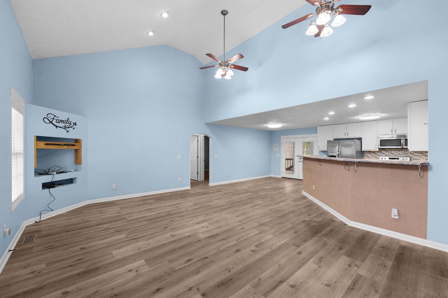 Welcome to your dream home in the gated Hills Of Pickwick community! This charming one-level home features an open-concept kitchen, living, and dining area with stylish LVP flooring and stainless steel appliances. The split bedroom plan offers privacy, with a luxurious master suite boasting a tile shower and separate whirlpool tub. Two additional guest rooms share a well-appointed bath. Outside, enjoy low-maintenance vinyl siding, a durable metal roof, and an asphalt drive leading to two double carports and a convenient storage building. Relax on the large covered rear deck or take a dip in the community pool. Located in the heart of Pickwick, this home combines comfort and convenience in a beautiful setting. Don't miss this opportunity to live the Pickwick lifestyle!