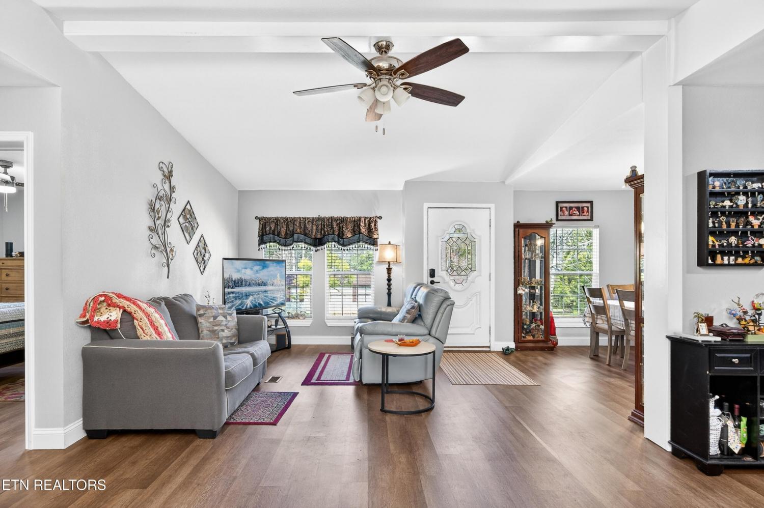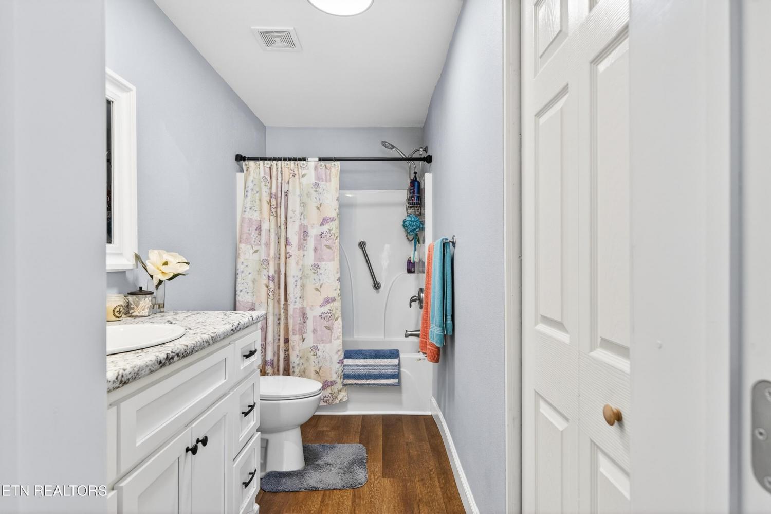 From I-40; Take Peavine headed North towards Fairfield Glade; L onto Dartmoor Drive; R onto Rugby Road; Home on R with sign.