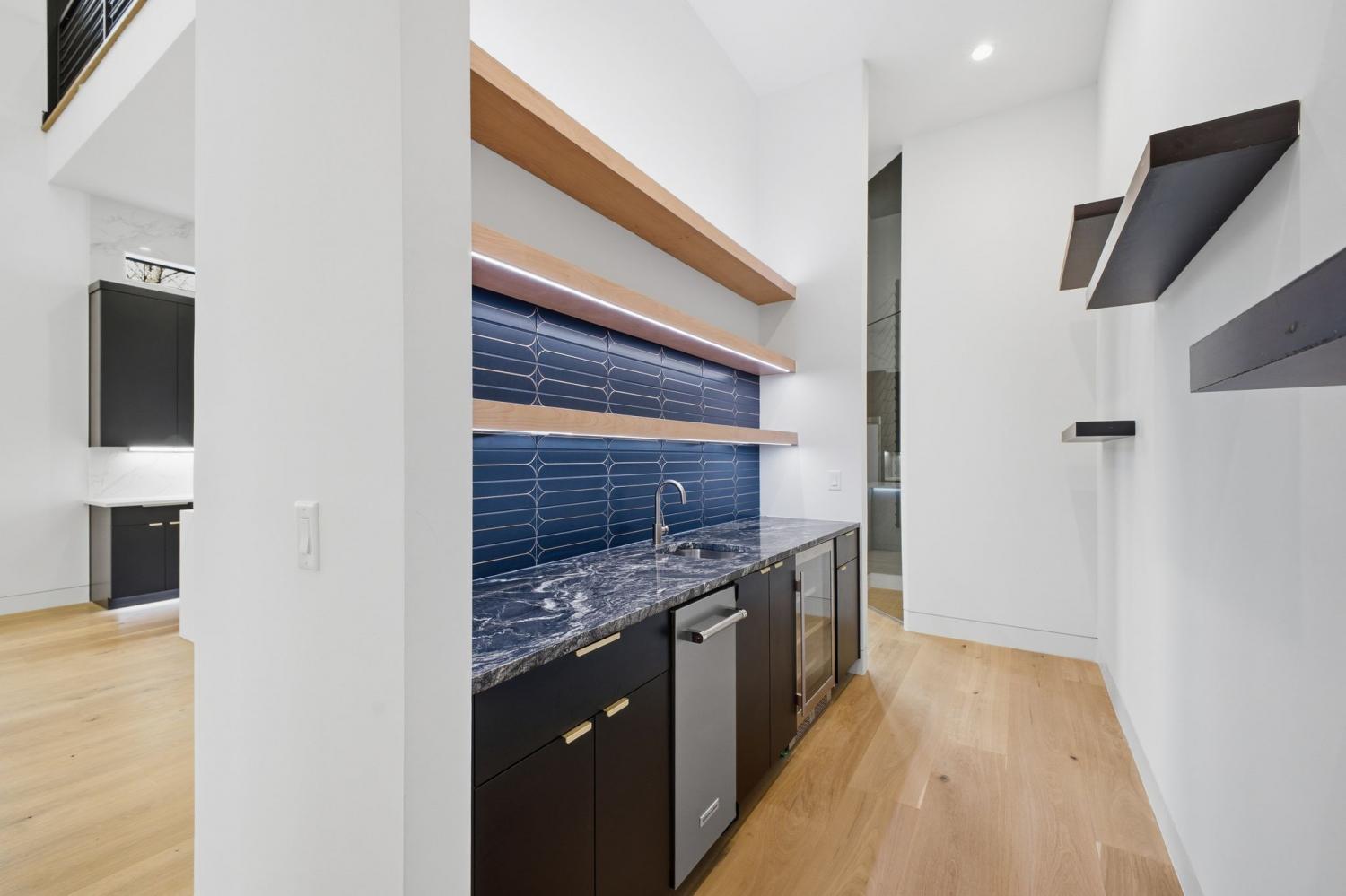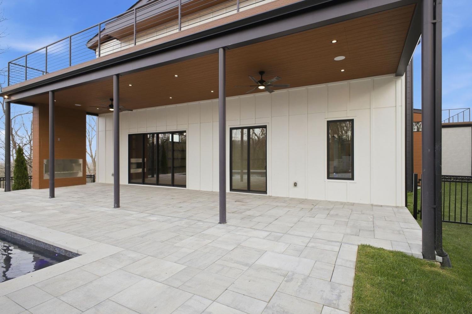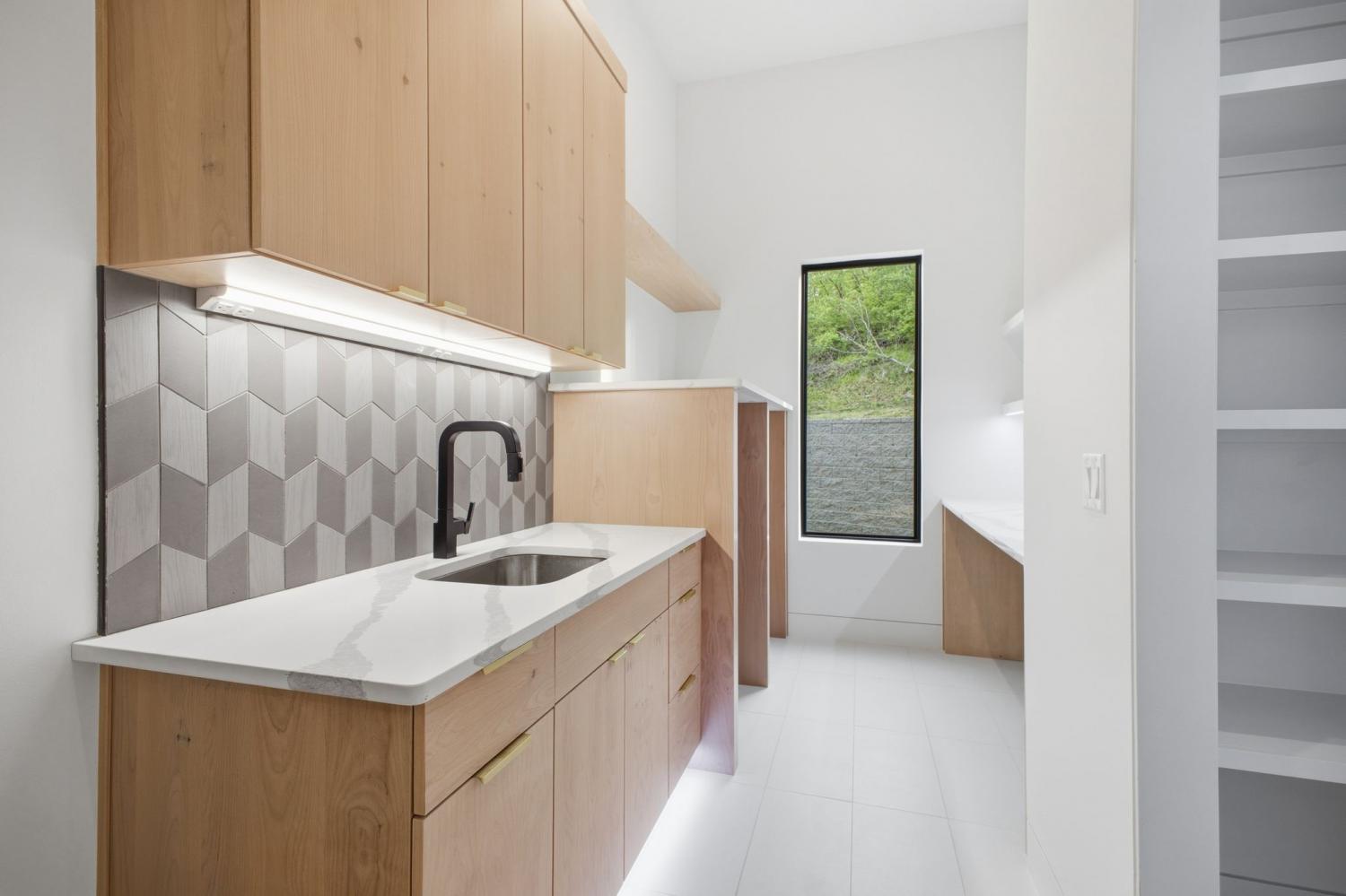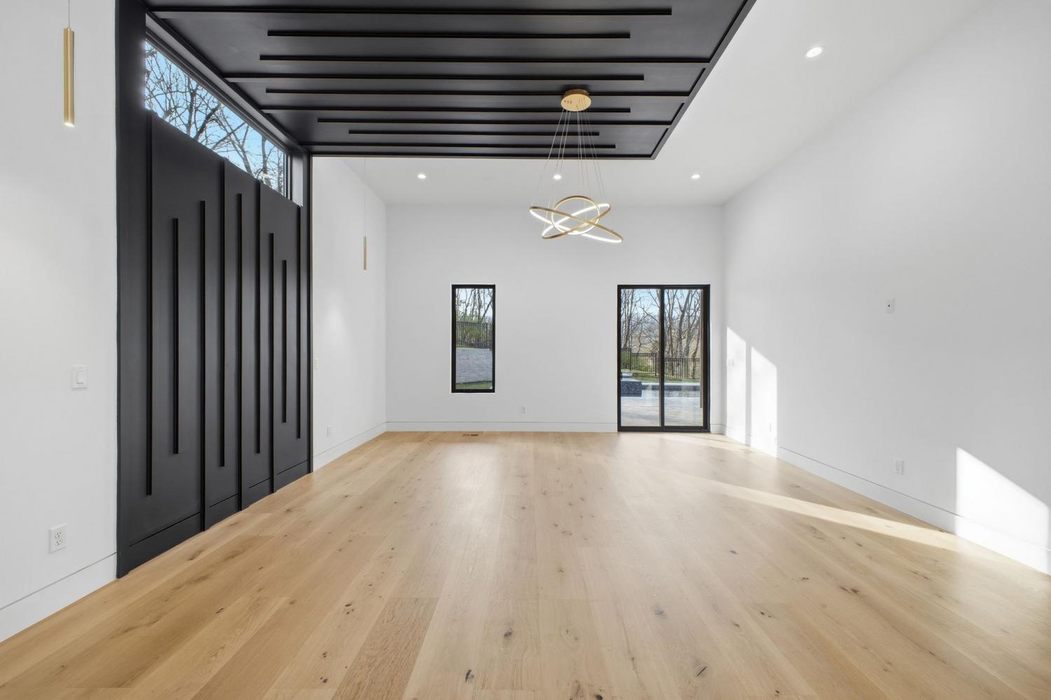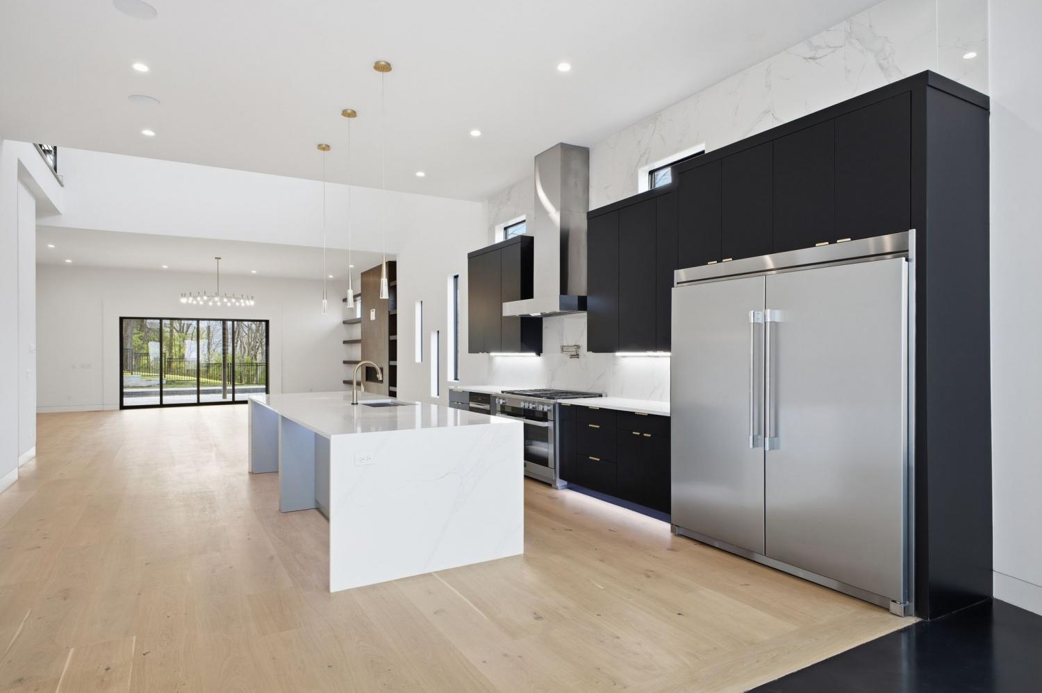 Tucked behind a private gated entrance in the heart of Oak Hill, this modern new construction residence is defined by four core elements: modern luxury, an exclusive location, true privacy, and a serene forest setting. Surrounded by mature trees and thoughtfully positioned on the lot, the home offers a rare sense of retreat just minutes from Nashville’s most sought after amenities. Built by Urban Development Group, known across Tennessee for delivering high end modern homes, the execution reflects both vision and precision. The kitchen anchors the home with custom cabinetry, a premium appliance suite, and a 48 inch professional range with warming drawer, double oven, and convection microwave. Dual dishwashers, a 64 inch commercial refrigerator and freezer, and expansive quartz surfaces elevate both daily living and entertaining. A walk in wine cellar, oversized pantry with floor to ceiling shelving, and a fully appointed butler’s pantry with icemaker and beverage refrigeration complete the space. The primary suite is designed as a private retreat with a spa caliber bath featuring an oversized walk in shower with dual rain heads and handheld fixture, a freestanding soaking tub, backlit mirrors, and a dedicated makeup vanity. The LED lit custom closet provides exceptional scale and organization. Wide plank white oak flooring runs throughout, complemented by integrated LED lighting, a floating staircase, and a custom epoxy foyer with gravel trench drain. Two gas fireplaces, a glass wall office, dual laundry rooms, and detailed millwork reinforce the home’s craftsmanship. Outdoor living includes a fully automated pool with infinity edge spa, rooftop composite decking, expansive paver terraces, and a four bay garage. Smart features include central vacuum, tankless water heater with recirculation, whole home audio pre wiring, and full low voltage infrastructure.