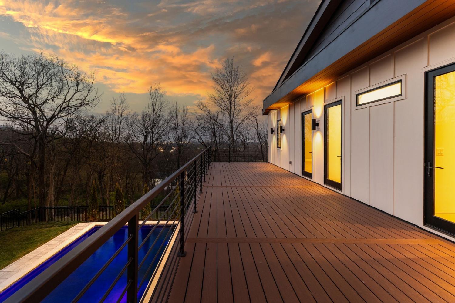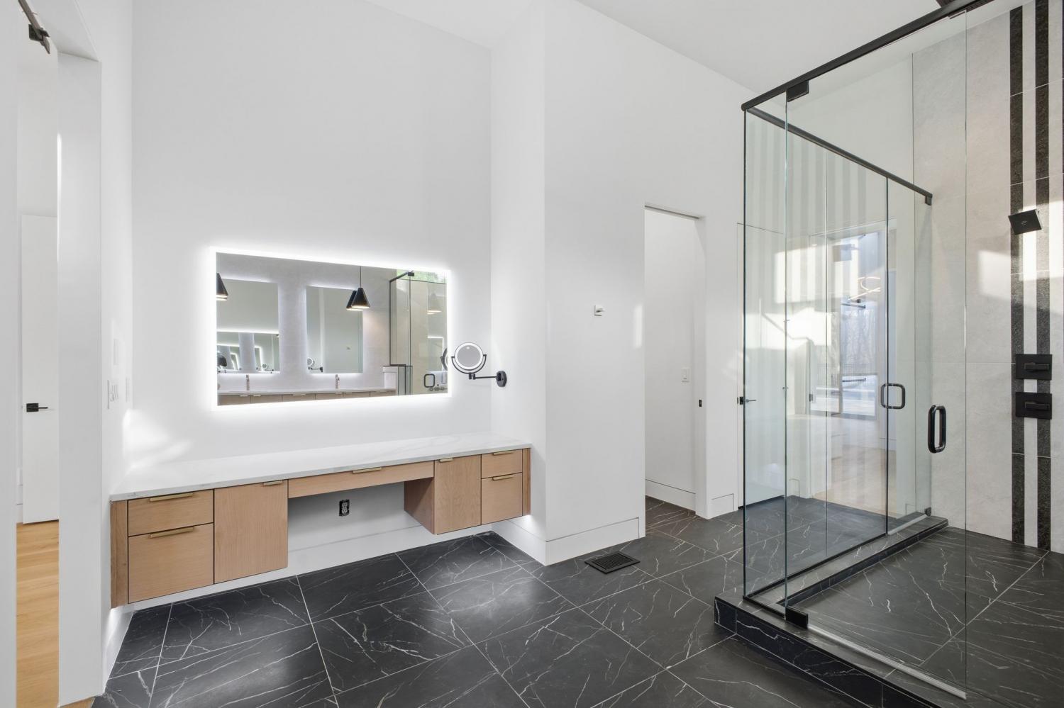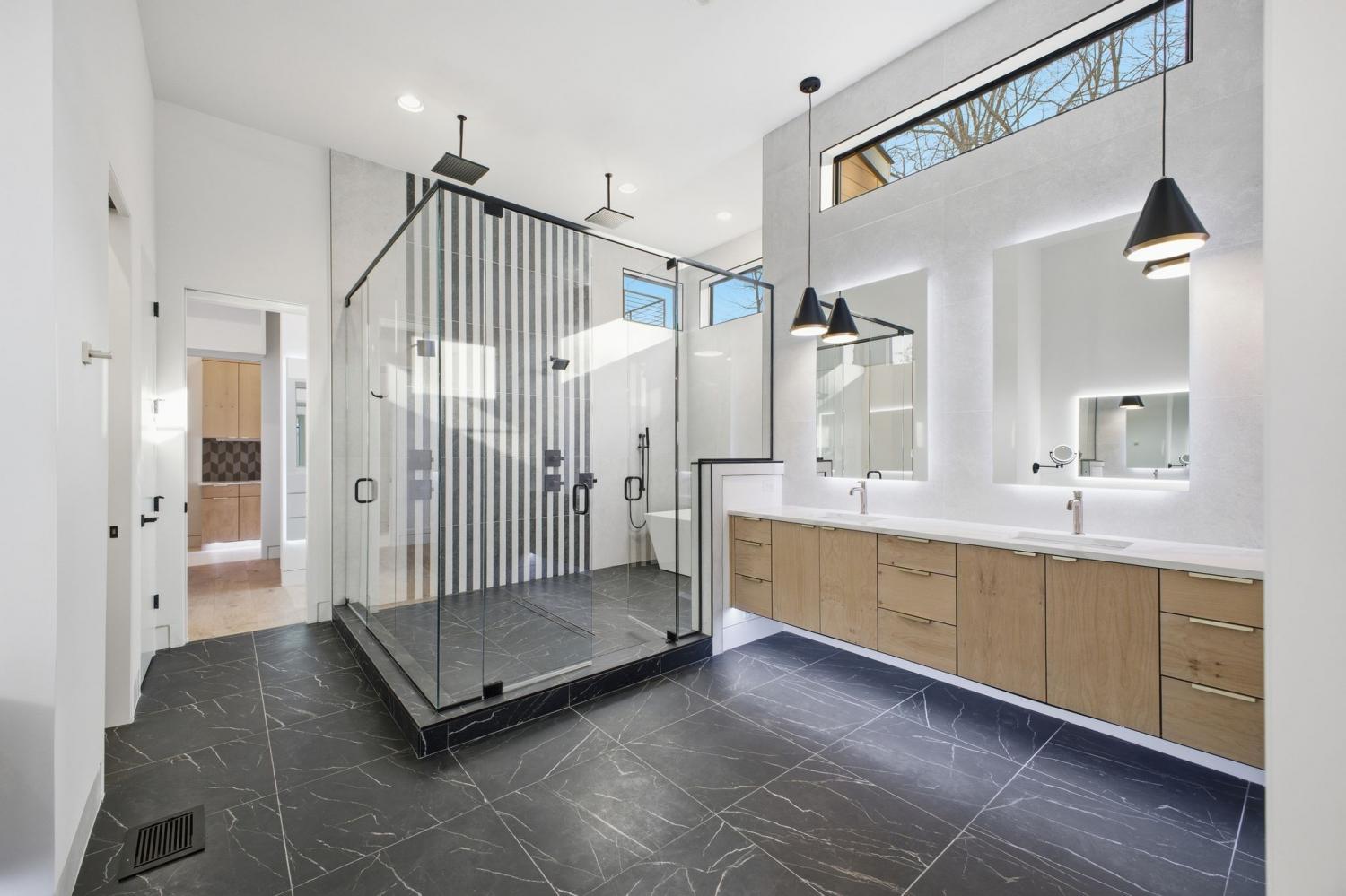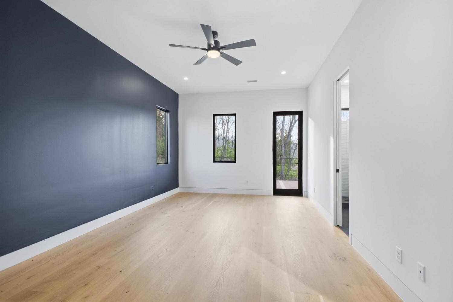 Tucked behind a private gated entrance in the heart of Oak Hill, this modern new construction residence is defined by four core elements: modern luxury, an exclusive location, true privacy, and a serene forest setting. Surrounded by mature trees and thoughtfully positioned on the lot, the home offers a rare sense of retreat just minutes from Nashville’s most sought after amenities. Built by Urban Development Group, known across Tennessee for delivering high end modern homes, the execution reflects both vision and precision. The kitchen anchors the home with custom cabinetry, a premium appliance suite, and a 48 inch professional range with warming drawer, double oven, and convection microwave. Dual dishwashers, a 64 inch commercial refrigerator and freezer, and expansive quartz surfaces elevate both daily living and entertaining. A walk in wine cellar, oversized pantry with floor to ceiling shelving, and a fully appointed butler’s pantry with icemaker and beverage refrigeration complete the space. The primary suite is designed as a private retreat with a spa caliber bath featuring an oversized walk in shower with dual rain heads and handheld fixture, a freestanding soaking tub, backlit mirrors, and a dedicated makeup vanity. The LED lit custom closet provides exceptional scale and organization. Wide plank white oak flooring runs throughout, complemented by integrated LED lighting, a floating staircase, and a custom epoxy foyer with gravel trench drain. Two gas fireplaces, a glass wall office, dual laundry rooms, and detailed millwork reinforce the home’s craftsmanship. Outdoor living includes a fully automated pool with infinity edge spa, rooftop composite decking, expansive paver terraces, and a four bay garage. Smart features include central vacuum, tankless water heater with recirculation, whole home audio pre wiring, and full low voltage infrastructure.
