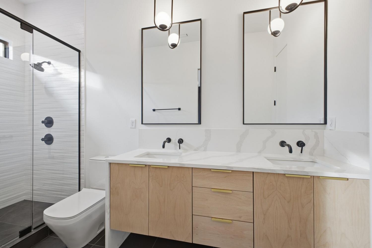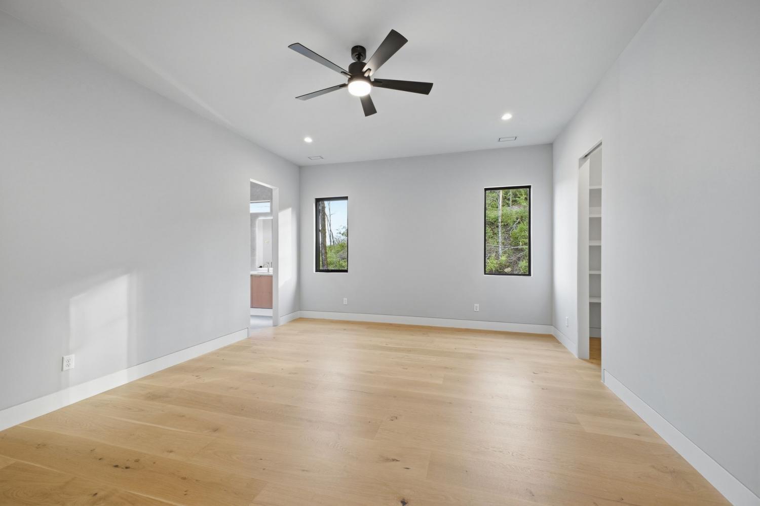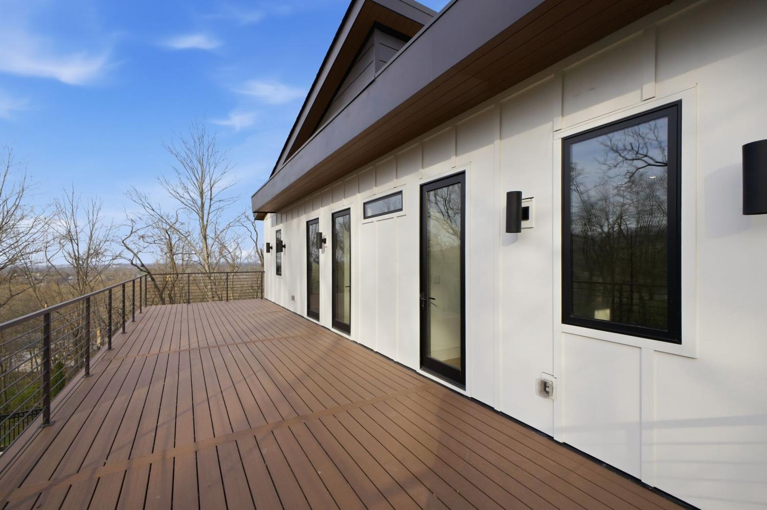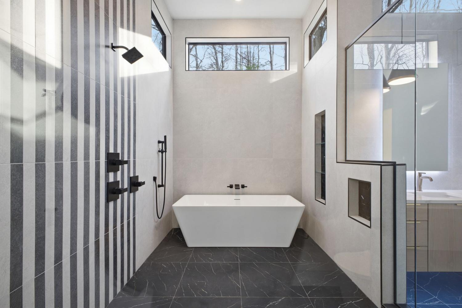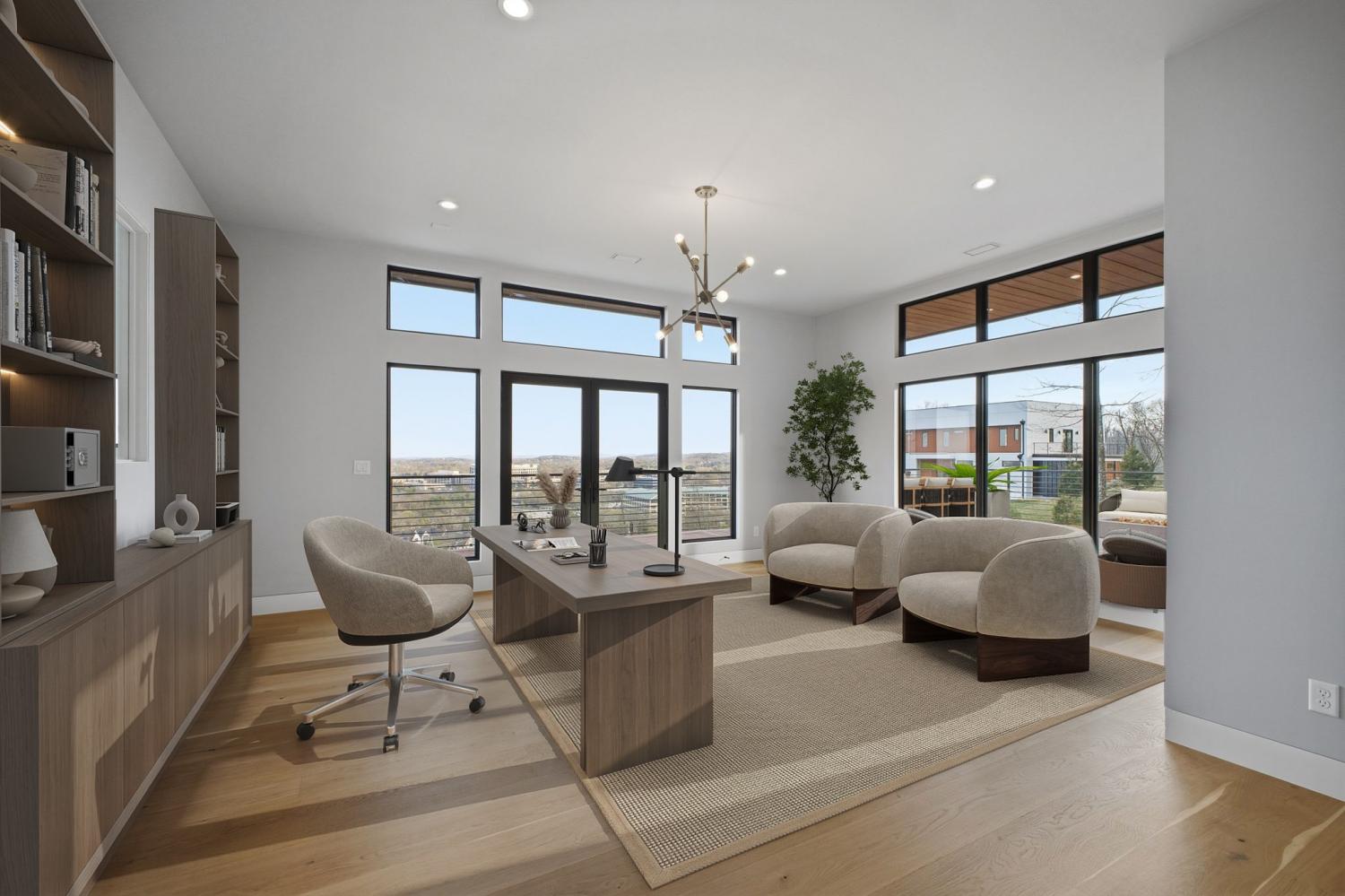 Tucked behind a private gated entrance in the heart of Oak Hill, this modern new construction residence is defined by four core elements: modern luxury, an exclusive location, true privacy, and a serene forest setting. Surrounded by mature trees and thoughtfully positioned on the lot, the home offers a rare sense of retreat just minutes from Nashville’s most sought after amenities. Built by Urban Development Group, known across Tennessee for delivering high end modern homes, the execution reflects both vision and precision. The kitchen anchors the home with custom cabinetry, a premium appliance suite, and a 48 inch professional range with warming drawer, double oven, and convection microwave. Dual dishwashers, a 64 inch commercial refrigerator and freezer, and expansive quartz surfaces elevate both daily living and entertaining. A walk in wine cellar, oversized pantry with floor to ceiling shelving, and a fully appointed butler’s pantry with icemaker and beverage refrigeration complete the space. The primary suite is designed as a private retreat with a spa caliber bath featuring an oversized walk in shower with dual rain heads and handheld fixture, a freestanding soaking tub, backlit mirrors, and a dedicated makeup vanity. The LED lit custom closet provides exceptional scale and organization. Wide plank white oak flooring runs throughout, complemented by integrated LED lighting, a floating staircase, and a custom epoxy foyer with gravel trench drain. Two gas fireplaces, a glass wall office, dual laundry rooms, and detailed millwork reinforce the home’s craftsmanship. Outdoor living includes a fully automated pool with infinity edge spa, rooftop composite decking, expansive paver terraces, and a four bay garage. Smart features include central vacuum, tankless water heater with recirculation, whole home audio pre wiring, and full low voltage infrastructure.