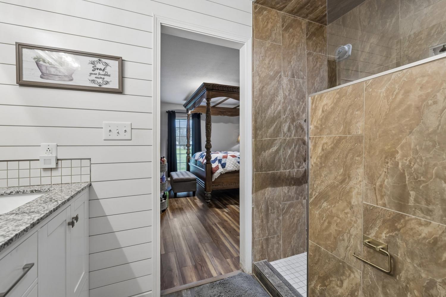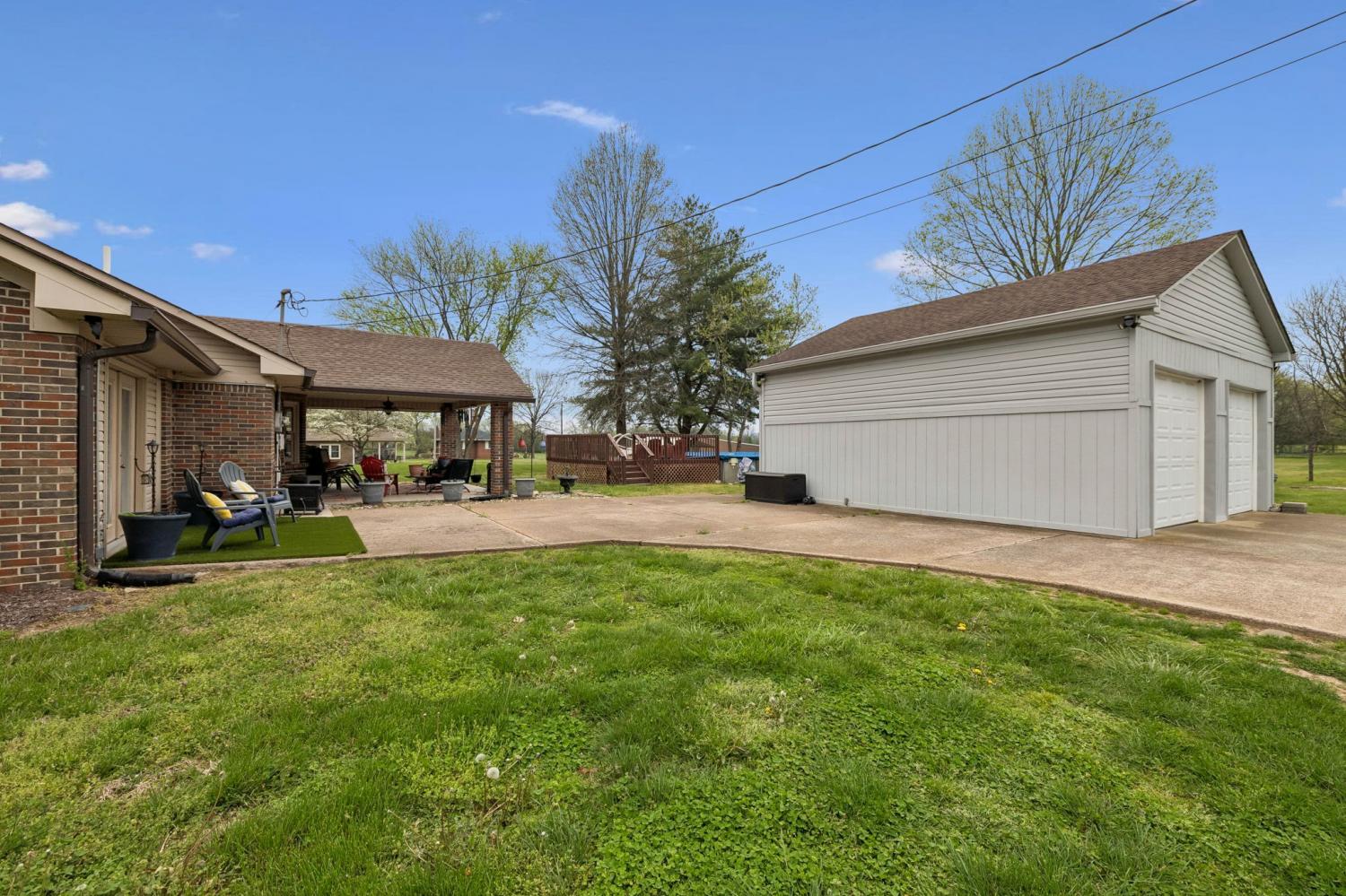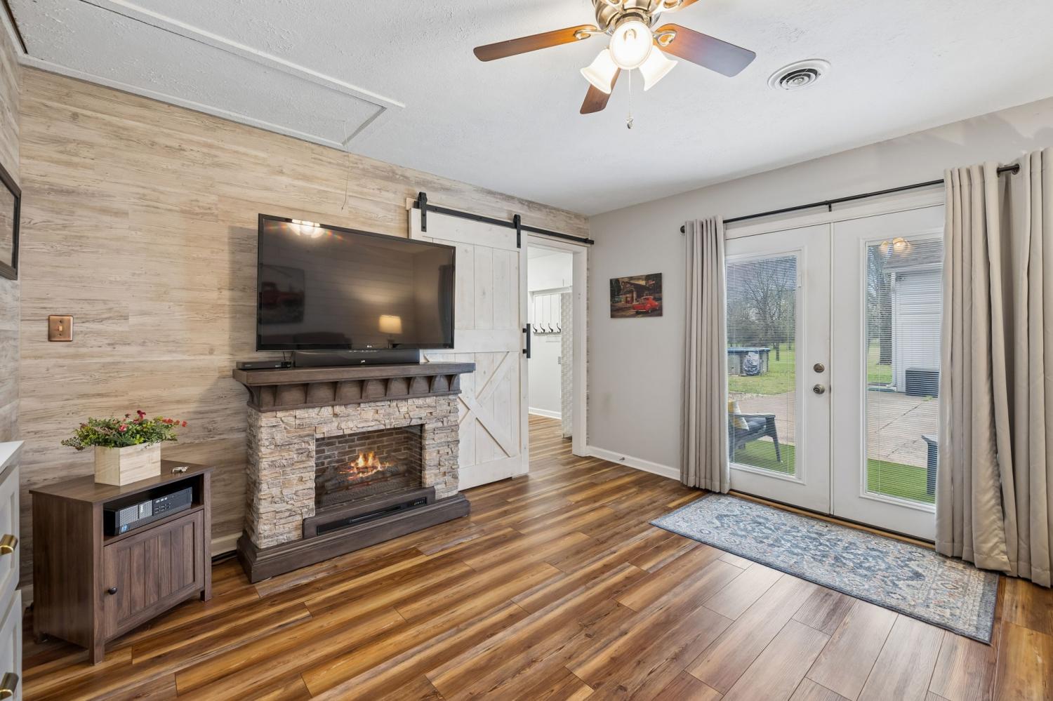 Beautifully renovated, one-level all-brick home offering the perfect blend of modern upgrades and peaceful country living. Fully updated in 2017, this property is move-in ready and designed to impress. Ideally located just outside the city limits, you’ll enjoy a quiet countryside setting while being only minutes from downtown Columbia’s dining, shopping, and entertainment. Inside, you’ll find a thoughtfully upgraded interior featuring all new windows, gutters, and exterior doors, along with stylish shiplap accents in the bathrooms. Both bathrooms showcase custom tile walk-in showers with sleek sliding glass doors. The flexible fourth bedroom offers the perfect space for a home office, nursery, or additional guest room. The chef’s kitchen is a standout, featuring quartz countertops, a custom island with marble top, and abundant custom cabinetry. Stainless steel appliances, including the refrigerator, remain with the home. Relax in the cozy living area with a propane fireplace and gas logs, or enjoy peace of mind with a newer 3-ton HVAC system (just 2 years old). Outside, you’ll find a spacious 1,200 sq ft detached two-car garage complete with openers. Step into your backyard retreat featuring a 24-foot above-ground pool with a brand-new sand filter system, surrounded by a deck perfect for summer entertaining. Additional highlights include LED exterior security lighting with motion and photo sensors. This home truly checks all the boxes—style, comfort, and location.