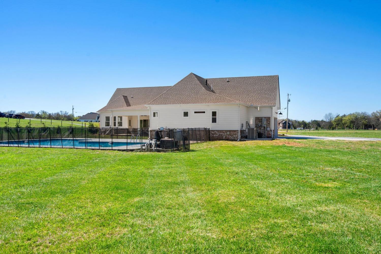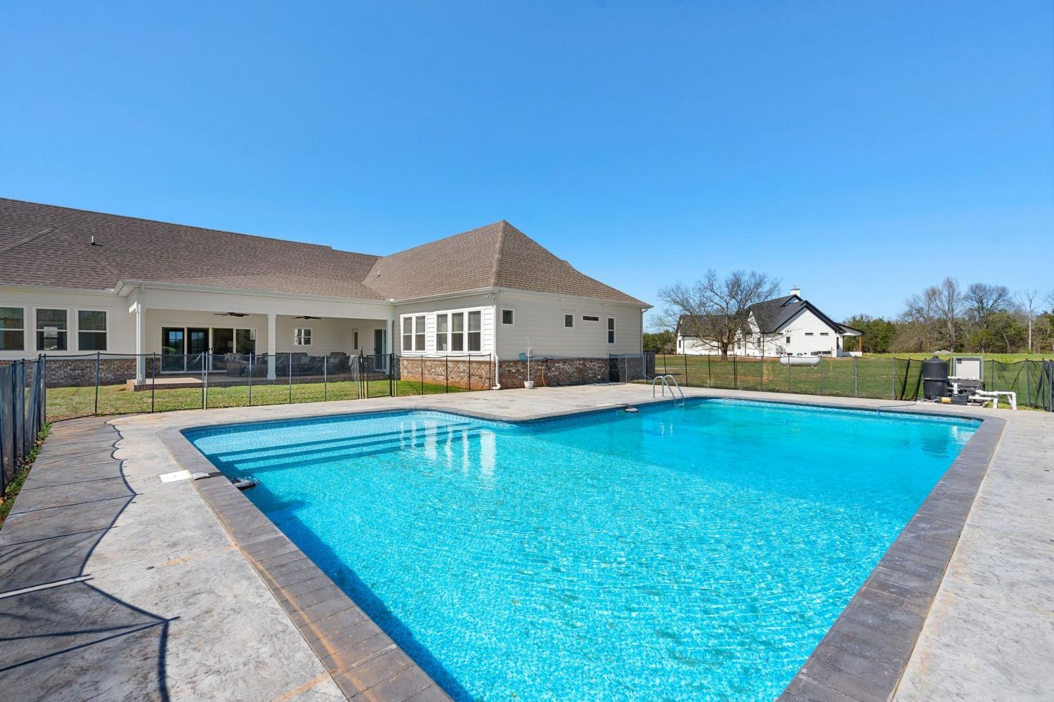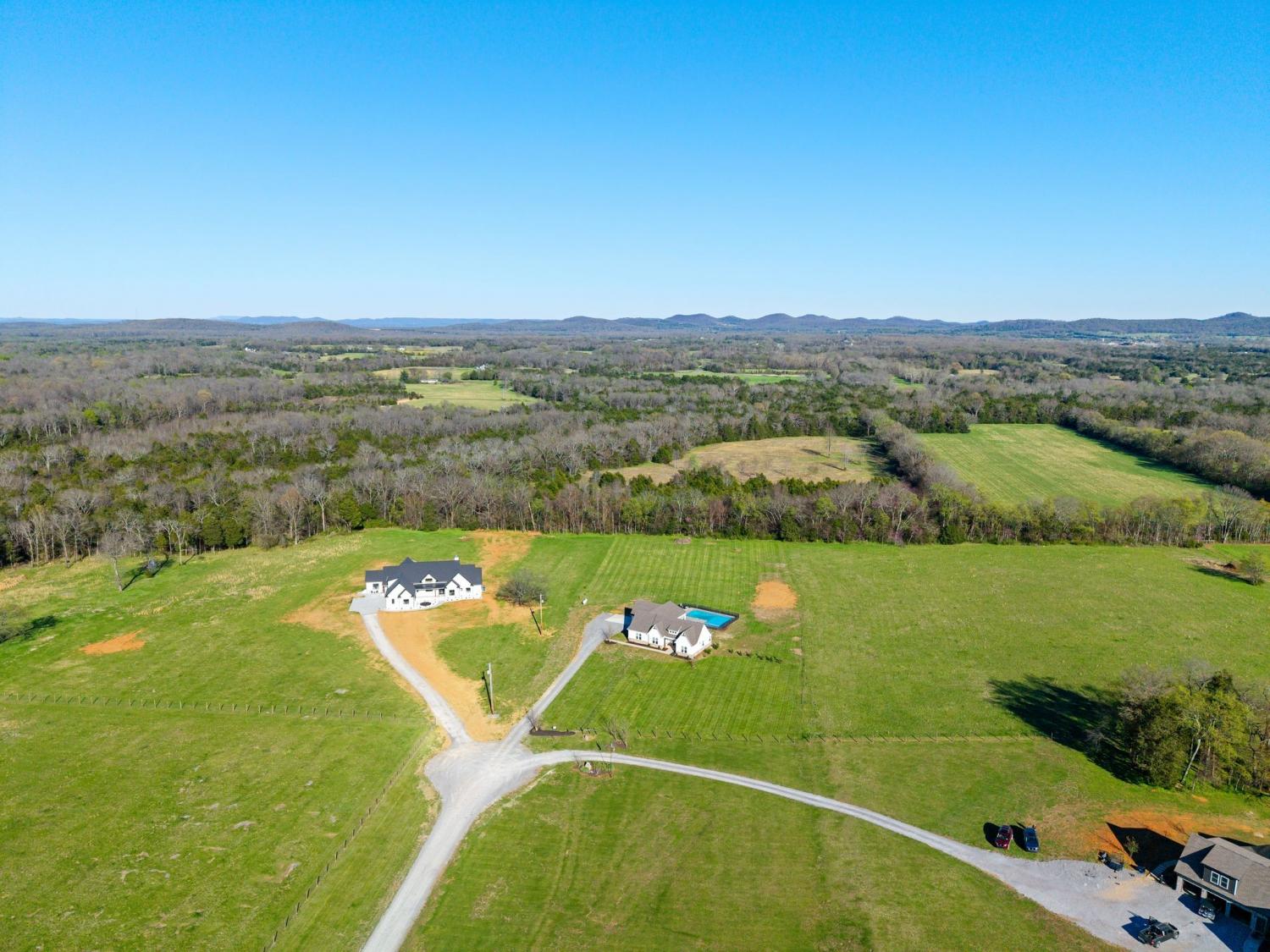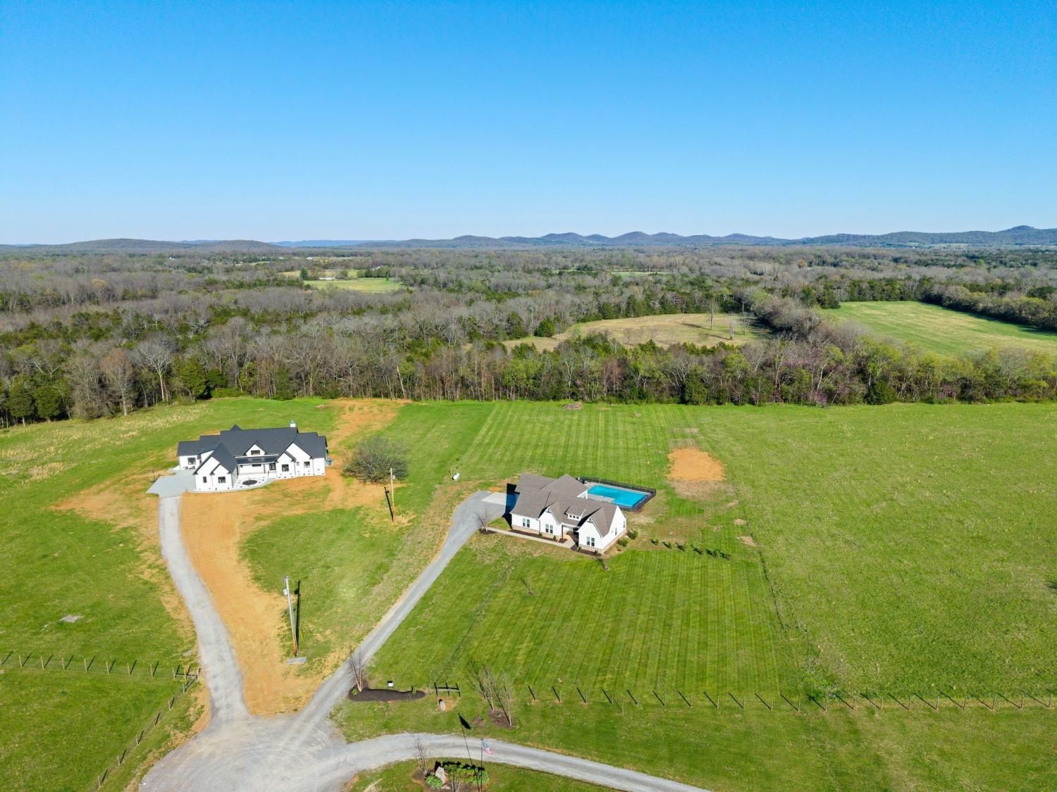 Spacious and beautifully designed, this 5-bedroom, 4.5 bath home perfectly blends comfort, style, and functionality on an impressive 11.67-acre property. Two primary suites are thoughtfully located downstairs, offering a perfect setup for a mother-in-law arrangement or multi-generational living! The charming exterior and inviting curb appeal set the tone, with a long gravel driveway, a generous front lawn, and a welcoming covered rocking chair front porch. Step inside to bright, open living spaces highlighted by a tray ceiling and picturesque views of the backyard and pool. The expansive living room provides plenty of space for gatherings, with seamless access to the covered patio for effortless indoor-outdoor living. There is also a 50 amp RV plug and interior sprinkler system! The kitchen is both stylish and functional, featuring quartz countertops, ample cabinetry, and a large center island perfect for cooking, entertaining, or casual dining. Farm style sink with window views of the back yard! Adjacent, the dining area is filled with natural light from large windows, creating a warm and inviting setting for everyday meals. The primary downstairs suites serve as serene retreats, each with modern en-suite bathrooms showcasing dual vanities, sleek finishes, and walk-in tiled showers with glass enclosures and built-in benches. Soft, timeless tones throughout the home provide a neutral backdrop, making it easy to personalize each space. Additional features include a functional mudroom with built-in bench and wall hooks and a bright laundry room with cabinetry and large folding space. A fifth bedroom upstairs could also be used as a home office or playroom and offers a full bathroom with tiled shower w/ glass doors! Outdoor living shines with a resort-style backyard, complete with an in-ground saltwater, heated pool and ample space for entertaining, relaxing, or enjoying the natural surroundings of this 11.67 acre property. Home under contract w/ 48 hr refusal.