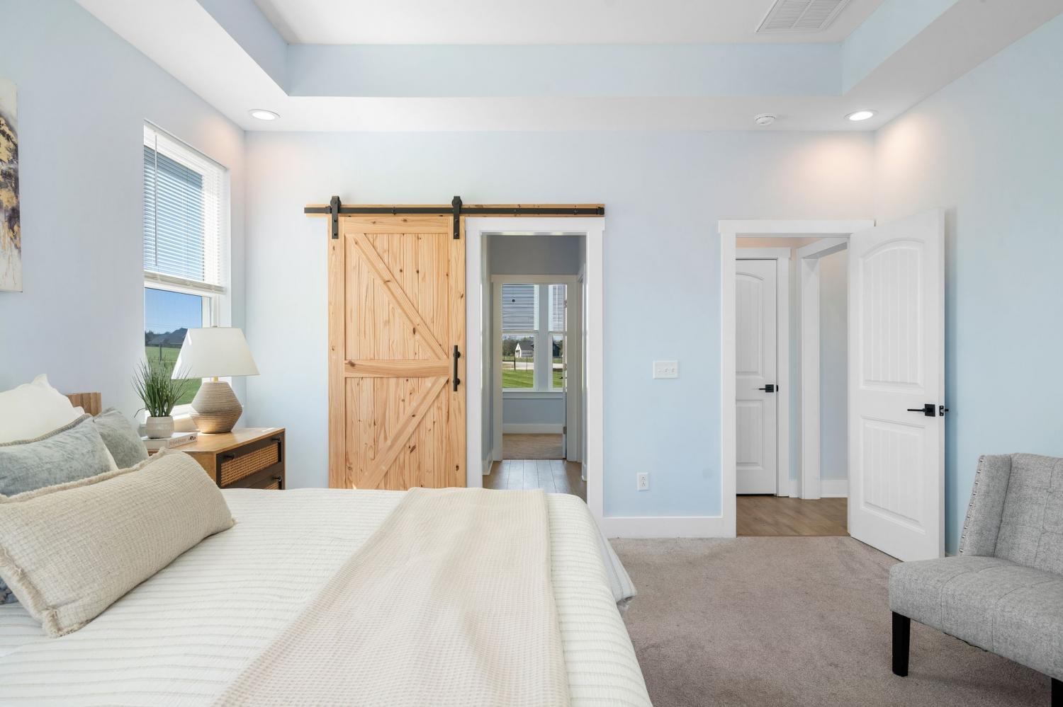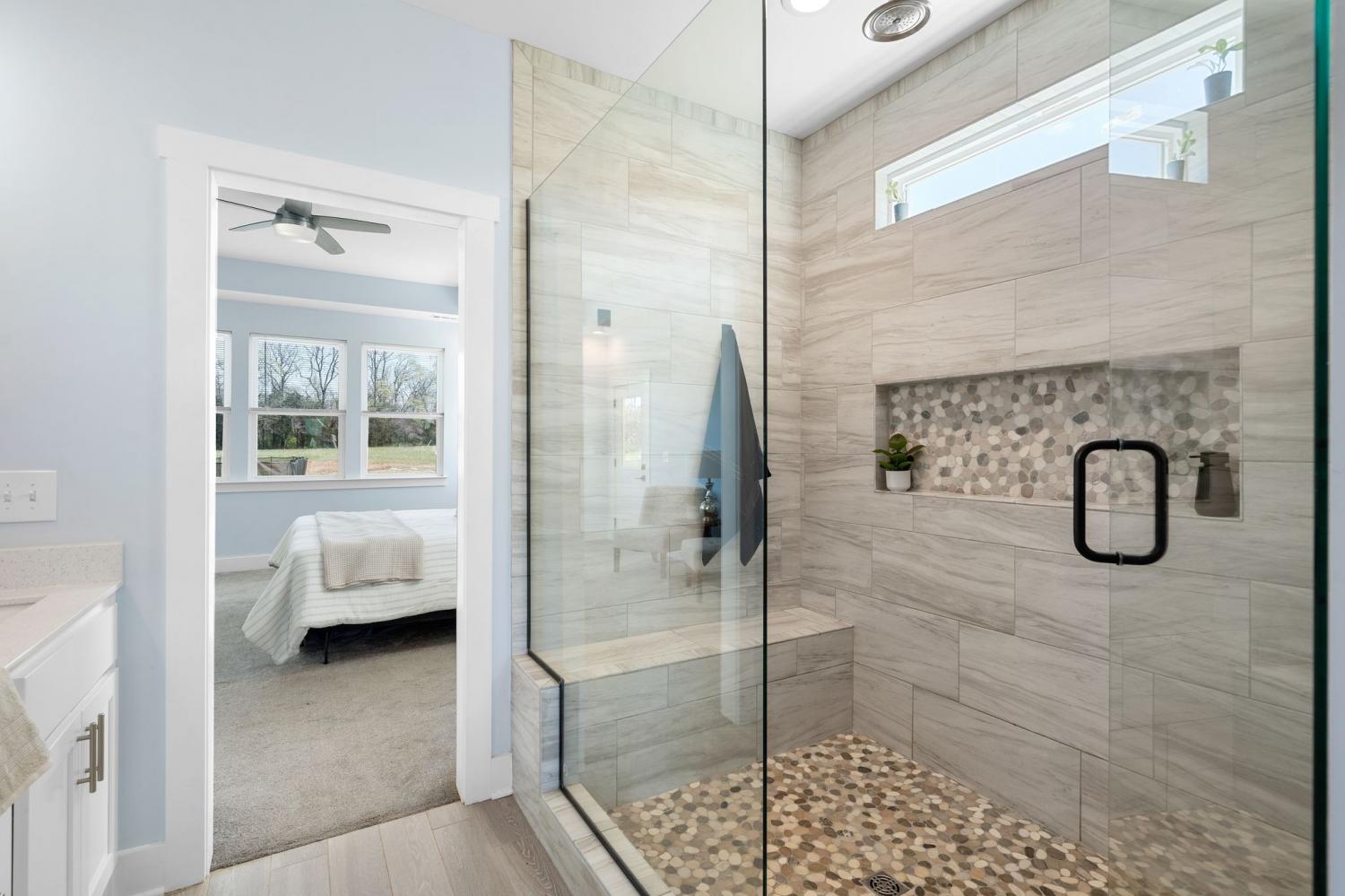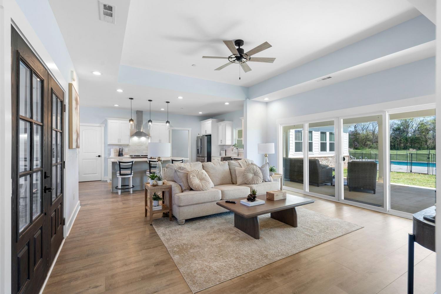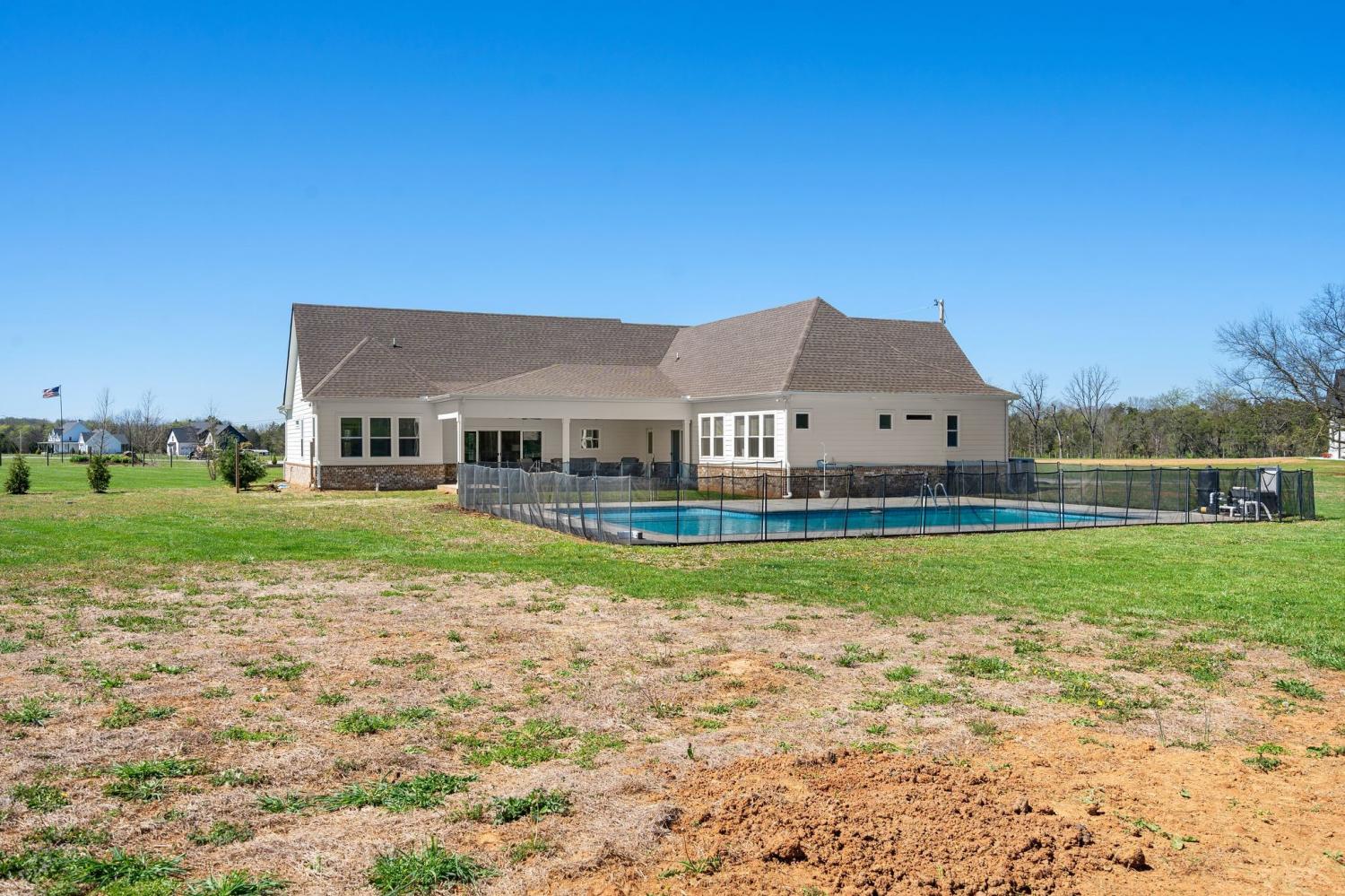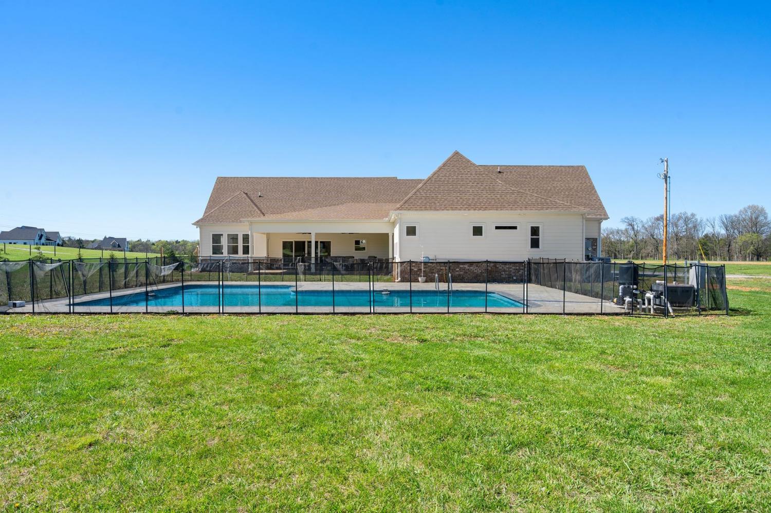 Spacious and beautifully designed, this 5-bedroom, 4.5 bath home perfectly blends comfort, style, and functionality on an impressive 11.67-acre property. Two primary suites are thoughtfully located downstairs, offering a perfect setup for a mother-in-law arrangement or multi-generational living! The charming exterior and inviting curb appeal set the tone, with a long gravel driveway, a generous front lawn, and a welcoming covered rocking chair front porch. Step inside to bright, open living spaces highlighted by a tray ceiling and picturesque views of the backyard and pool. The expansive living room provides plenty of space for gatherings, with seamless access to the covered patio for effortless indoor-outdoor living. There is also a 50 amp RV plug and interior sprinkler system! The kitchen is both stylish and functional, featuring quartz countertops, ample cabinetry, and a large center island perfect for cooking, entertaining, or casual dining. Farm style sink with window views of the back yard! Adjacent, the dining area is filled with natural light from large windows, creating a warm and inviting setting for everyday meals. The primary downstairs suites serve as serene retreats, each with modern en-suite bathrooms showcasing dual vanities, sleek finishes, and walk-in tiled showers with glass enclosures and built-in benches. Soft, timeless tones throughout the home provide a neutral backdrop, making it easy to personalize each space. Additional features include a functional mudroom with built-in bench and wall hooks and a bright laundry room with cabinetry and large folding space. A fifth bedroom upstairs could also be used as a home office or playroom and offers a full bathroom with tiled shower w/ glass doors! Outdoor living shines with a resort-style backyard, complete with an in-ground saltwater, heated pool and ample space for entertaining, relaxing, or enjoying the natural surroundings of this 11.67 acre property. Home under contract w/ 48 hr refusal.