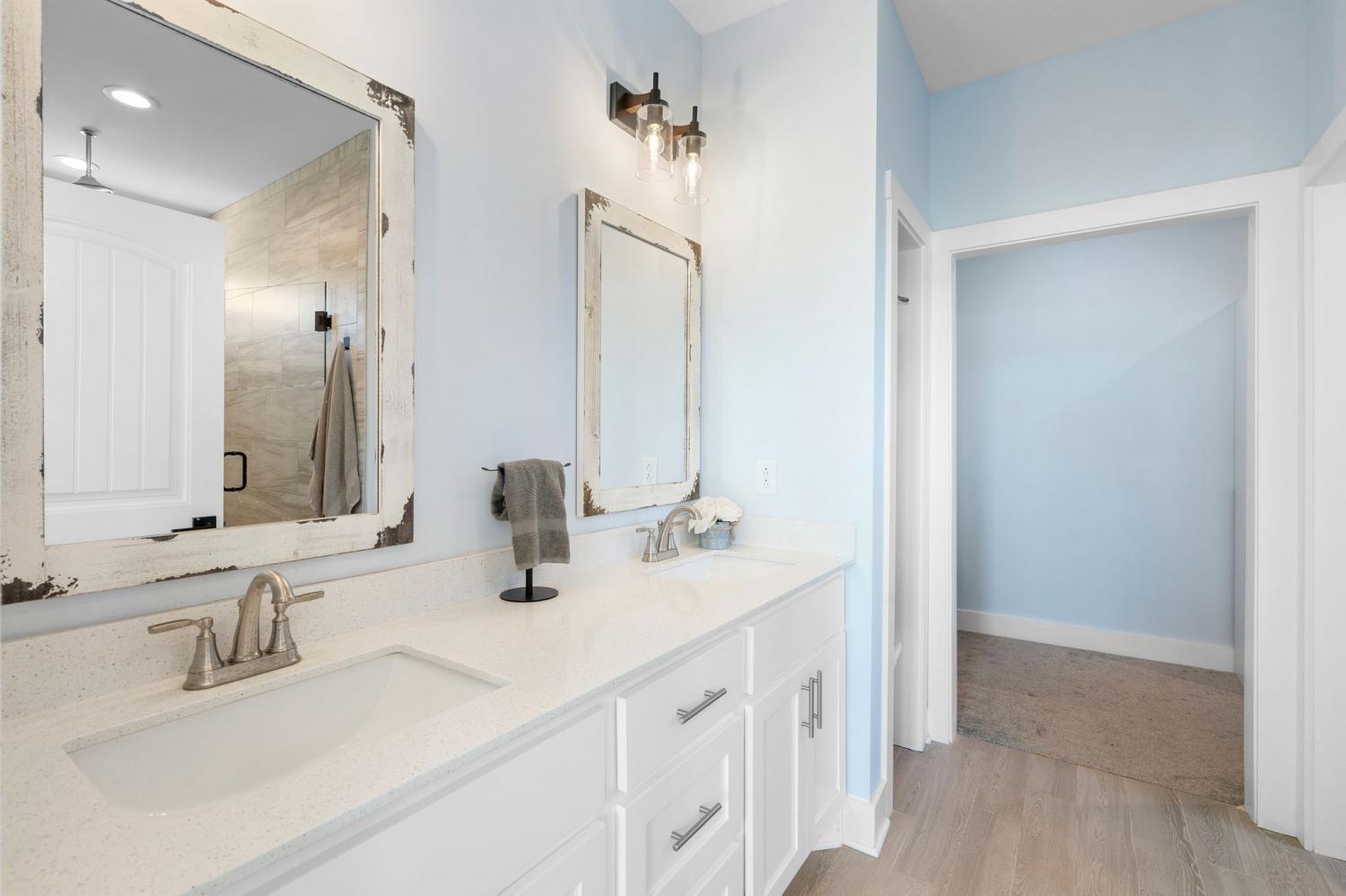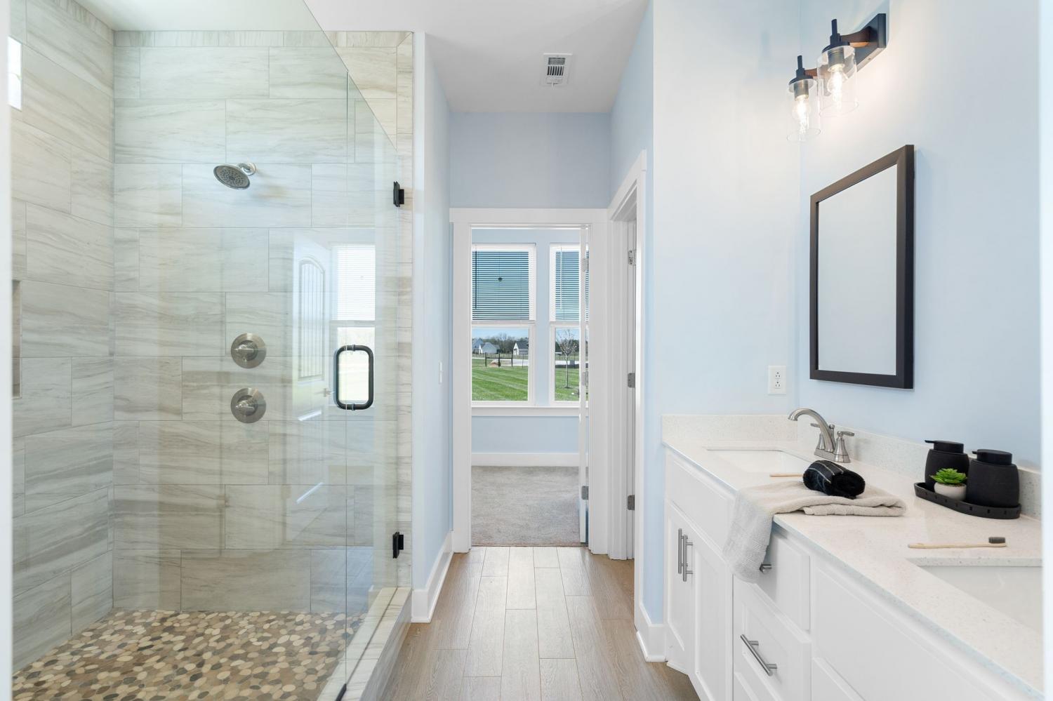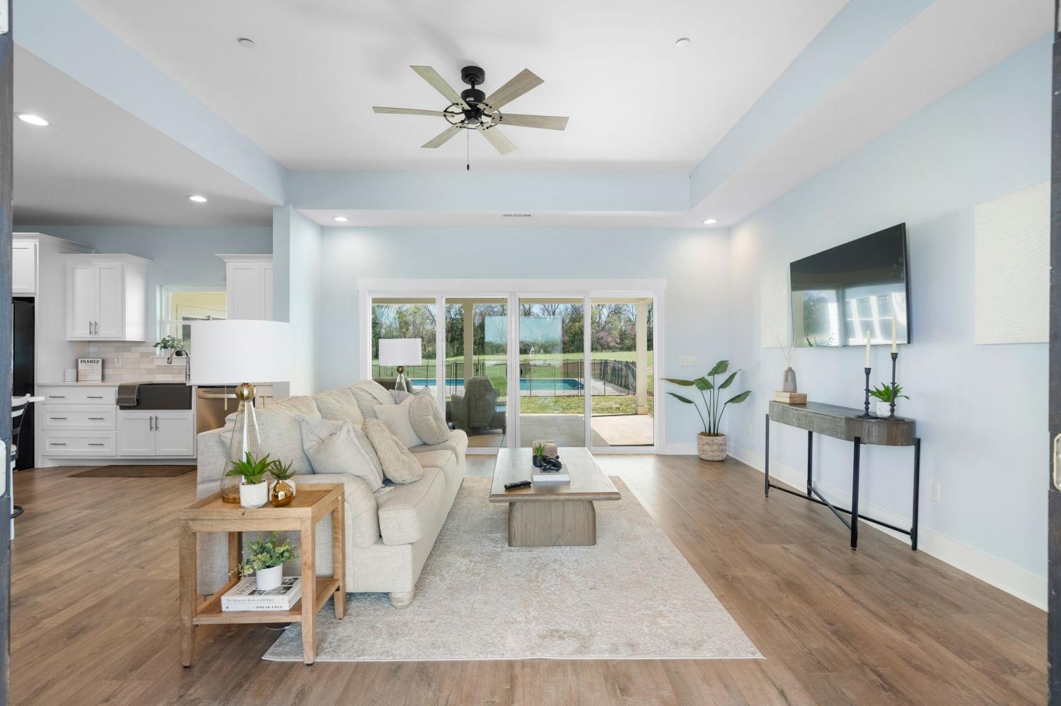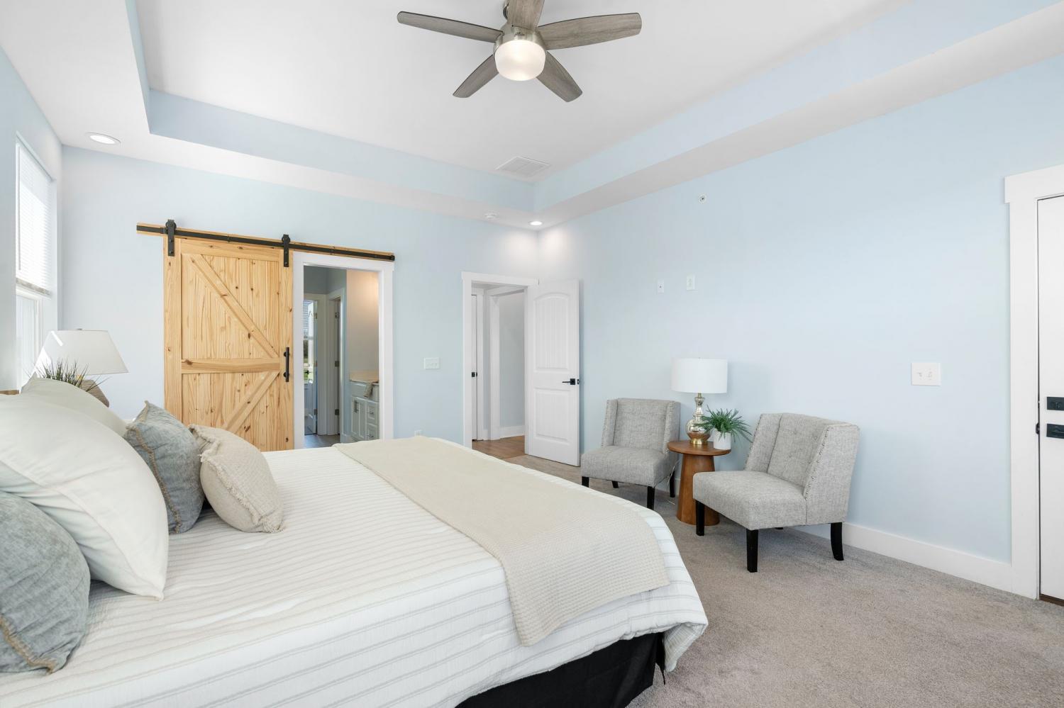 Spacious and beautifully designed, this 5-bedroom, 4.5 bath home perfectly blends comfort, style, and functionality on an impressive 11.67-acre property. Two primary suites are thoughtfully located downstairs, offering a perfect setup for a mother-in-law arrangement or multi-generational living! The charming exterior and inviting curb appeal set the tone, with a long gravel driveway, a generous front lawn, and a welcoming covered rocking chair front porch. Step inside to bright, open living spaces highlighted by a tray ceiling and picturesque views of the backyard and pool. The expansive living room provides plenty of space for gatherings, with seamless access to the covered patio for effortless indoor-outdoor living. There is also a 50 amp RV plug and interior sprinkler system! The kitchen is both stylish and functional, featuring quartz countertops, ample cabinetry, and a large center island perfect for cooking, entertaining, or casual dining. Farm style sink with window views of the back yard! Adjacent, the dining area is filled with natural light from large windows, creating a warm and inviting setting for everyday meals. The primary downstairs suites serve as serene retreats, each with modern en-suite bathrooms showcasing dual vanities, sleek finishes, and walk-in tiled showers with glass enclosures and built-in benches. Soft, timeless tones throughout the home provide a neutral backdrop, making it easy to personalize each space. Additional features include a functional mudroom with built-in bench and wall hooks and a bright laundry room with cabinetry and large folding space. A fifth bedroom upstairs could also be used as a home office or playroom and offers a full bathroom with tiled shower w/ glass doors! Outdoor living shines with a resort-style backyard, complete with an in-ground saltwater, heated pool and ample space for entertaining, relaxing, or enjoying the natural surroundings of this 11.67 acre property. Home under contract w/ 48 hr refusal.