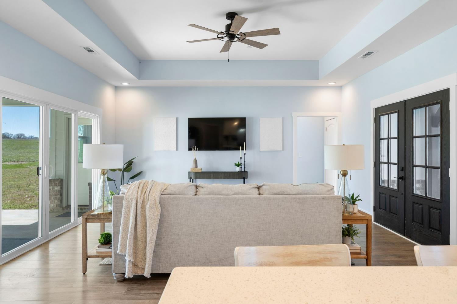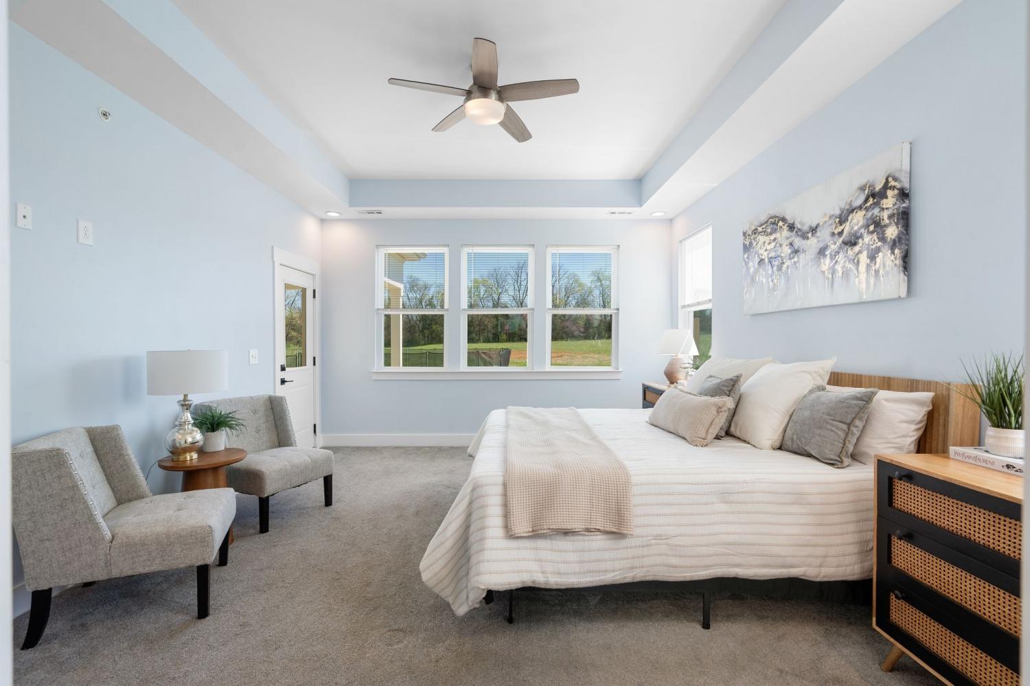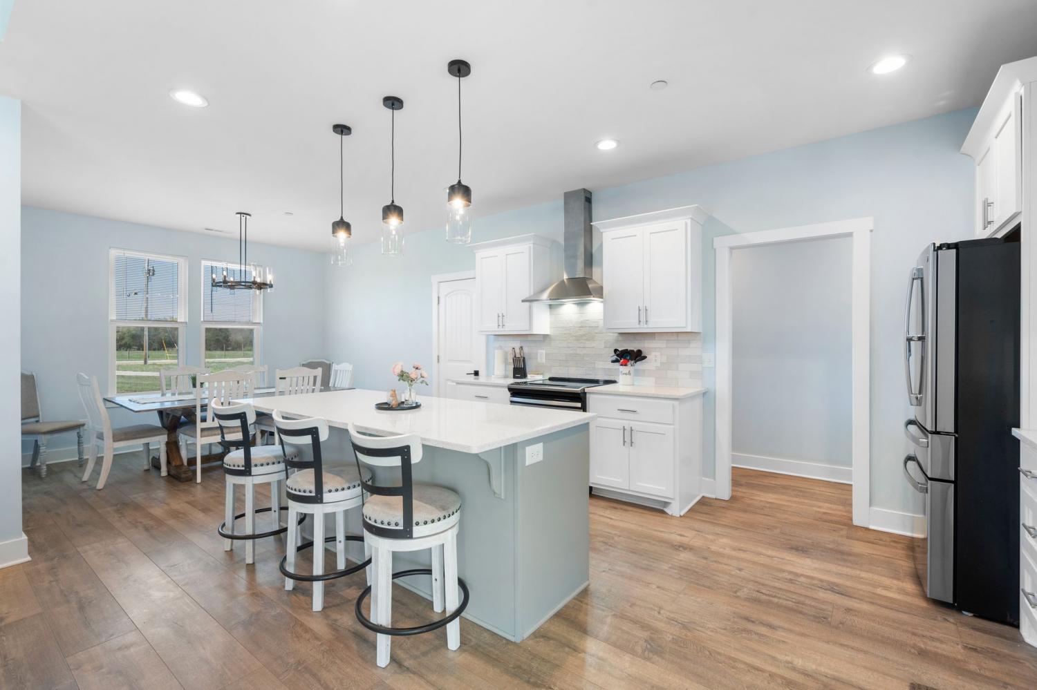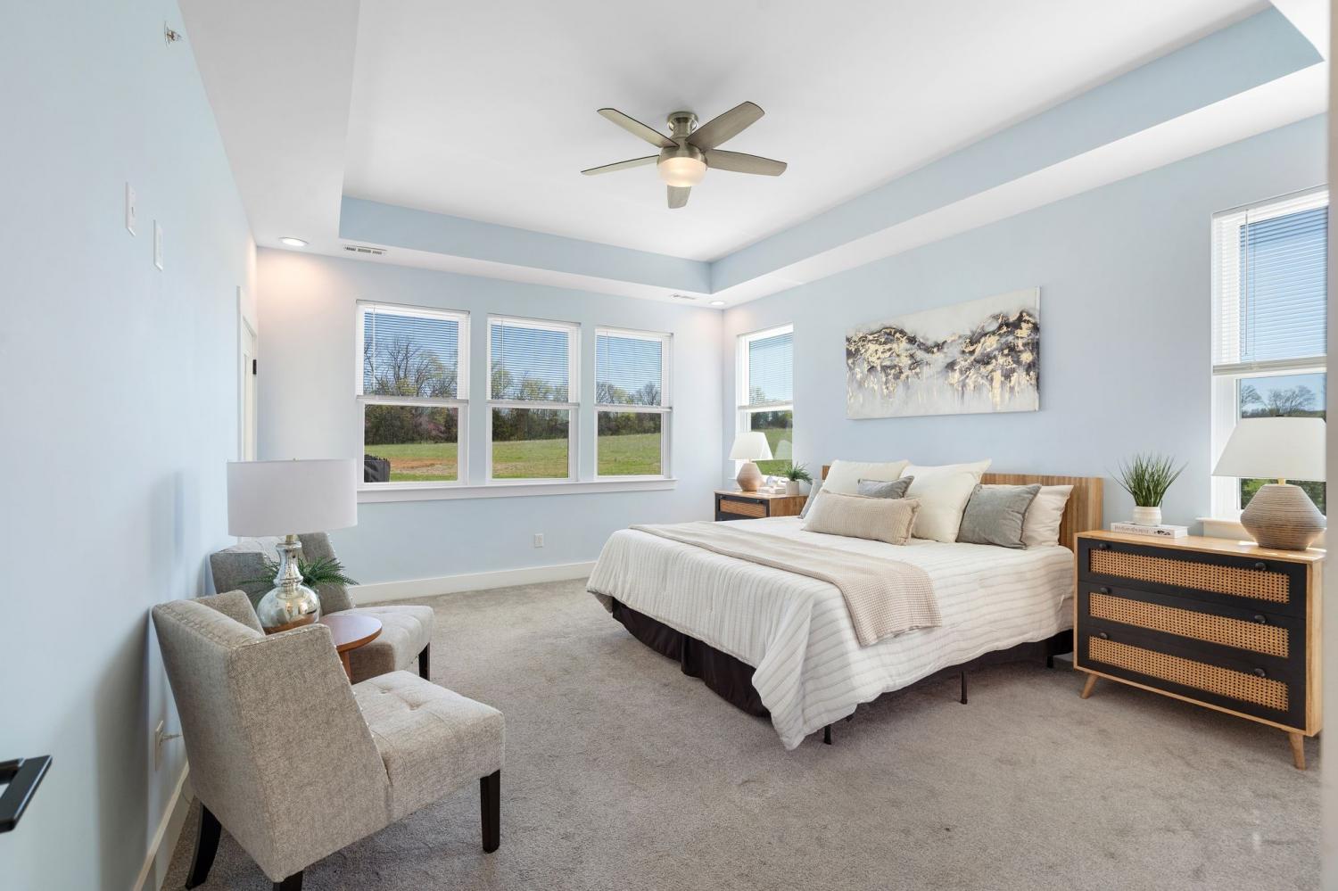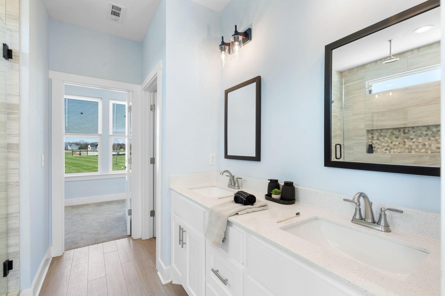 Spacious and beautifully designed, this 5-bedroom, 4.5 bath home perfectly blends comfort, style, and functionality on an impressive 11.67-acre property. Two primary suites are thoughtfully located downstairs, offering a perfect setup for a mother-in-law arrangement or multi-generational living! The charming exterior and inviting curb appeal set the tone, with a long gravel driveway, a generous front lawn, and a welcoming covered rocking chair front porch. Step inside to bright, open living spaces highlighted by a tray ceiling and picturesque views of the backyard and pool. The expansive living room provides plenty of space for gatherings, with seamless access to the covered patio for effortless indoor-outdoor living. There is also a 50 amp RV plug and interior sprinkler system! The kitchen is both stylish and functional, featuring quartz countertops, ample cabinetry, and a large center island perfect for cooking, entertaining, or casual dining. Farm style sink with window views of the back yard! Adjacent, the dining area is filled with natural light from large windows, creating a warm and inviting setting for everyday meals. The primary downstairs suites serve as serene retreats, each with modern en-suite bathrooms showcasing dual vanities, sleek finishes, and walk-in tiled showers with glass enclosures and built-in benches. Soft, timeless tones throughout the home provide a neutral backdrop, making it easy to personalize each space. Additional features include a functional mudroom with built-in bench and wall hooks and a bright laundry room with cabinetry and large folding space. A fifth bedroom upstairs could also be used as a home office or playroom and offers a full bathroom with tiled shower w/ glass doors! Outdoor living shines with a resort-style backyard, complete with an in-ground saltwater, heated pool and ample space for entertaining, relaxing, or enjoying the natural surroundings of this 11.67 acre property. Home under contract w/ 48 hr refusal.