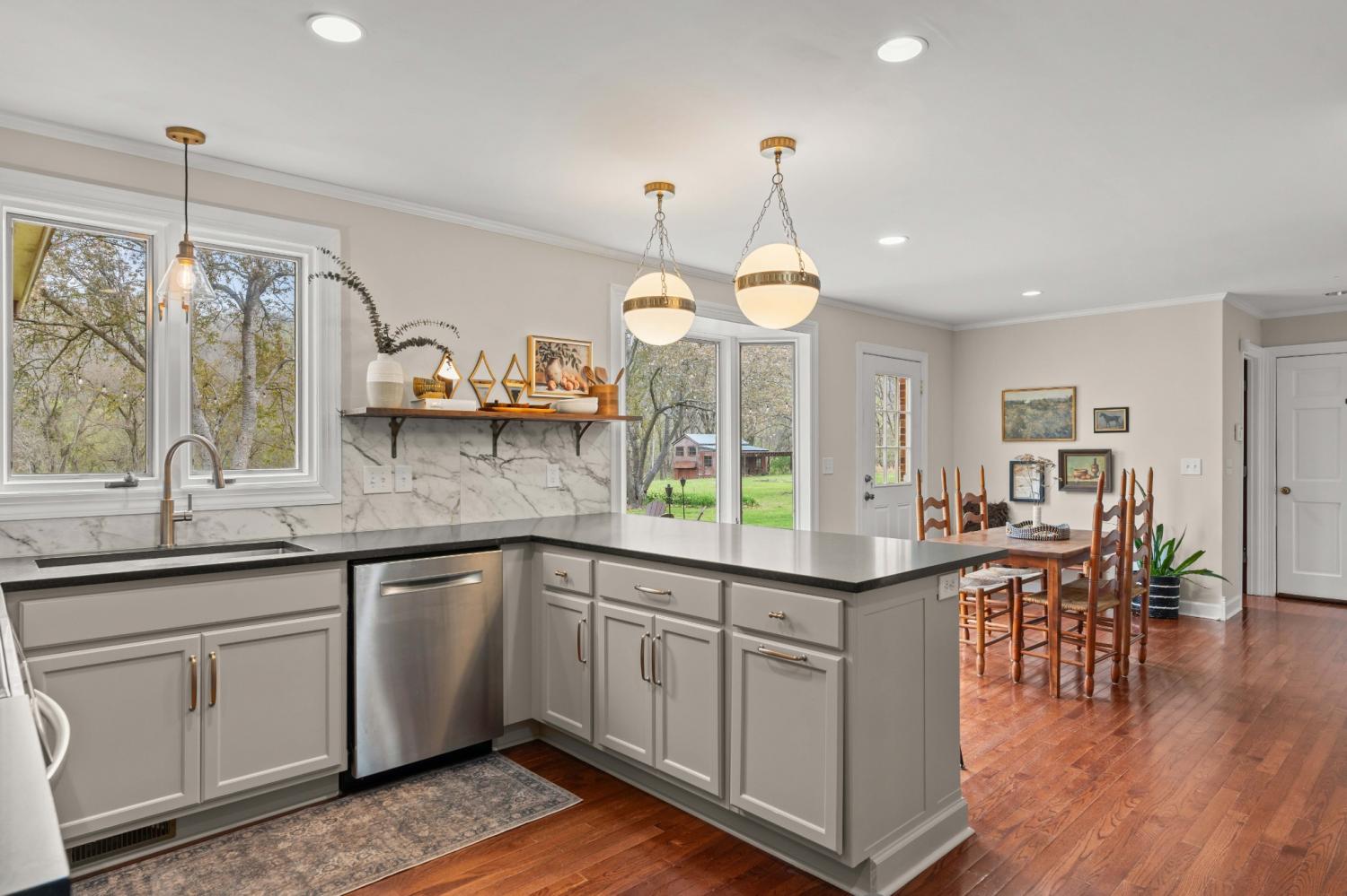 Seclusion, character, and craftsmanship — rarely do all three appear on the same deed. This custom 3BD/2.5BA estate commands over 13 private acres along Sycamore Creek, enveloped by mature trees and positioned well beyond the road, yet just 30 minutes from Nashville and moments from I-24. The arrival is an experience in itself. A long, canopied driveway draws you away from the outside world and into something altogether different — the kind of approach that sets expectations high before you ever reach the front door. The residence sits in quiet remove from the street, offering a sense of privacy and permanence that simply cannot be manufactured. Inside, the home rewards closer inspection at every turn. Solid walnut paneling lends the den a richness that is both rare and deeply considered. A slate foyer makes a composed first impression. Two fireplaces. Generously scaled rooms throughout. The renovated kitchen is as functional as it is refined — double ovens, a separate bar, and oversized windows that bathe the space in natural light. Updated bathrooms and fresh paint throughout complete a home that presents with the confidence of something truly cared for.The grounds are equally compelling. Eighteen exterior spotlights animate the property after dark, while the mature tree canopy delivers a level of privacy that only decades can produce. Sycamore Creek traces both sides of the property — a year-round, living amenity — and features a natural sandbar that lends the land a sense of leisure and romance that stops buyers mid-tour. An equipment building rounds out the offering with significant flex potential — equally suited as a workshop, studio, or private retreat, depending on the vision of its next steward. Two-car garage. High-speed internet available. The full 13.46 acres encompasses two adjoining tracts offered together, providing both an exceptional residence and the land to match.