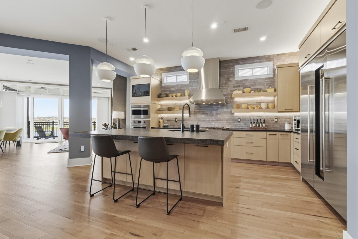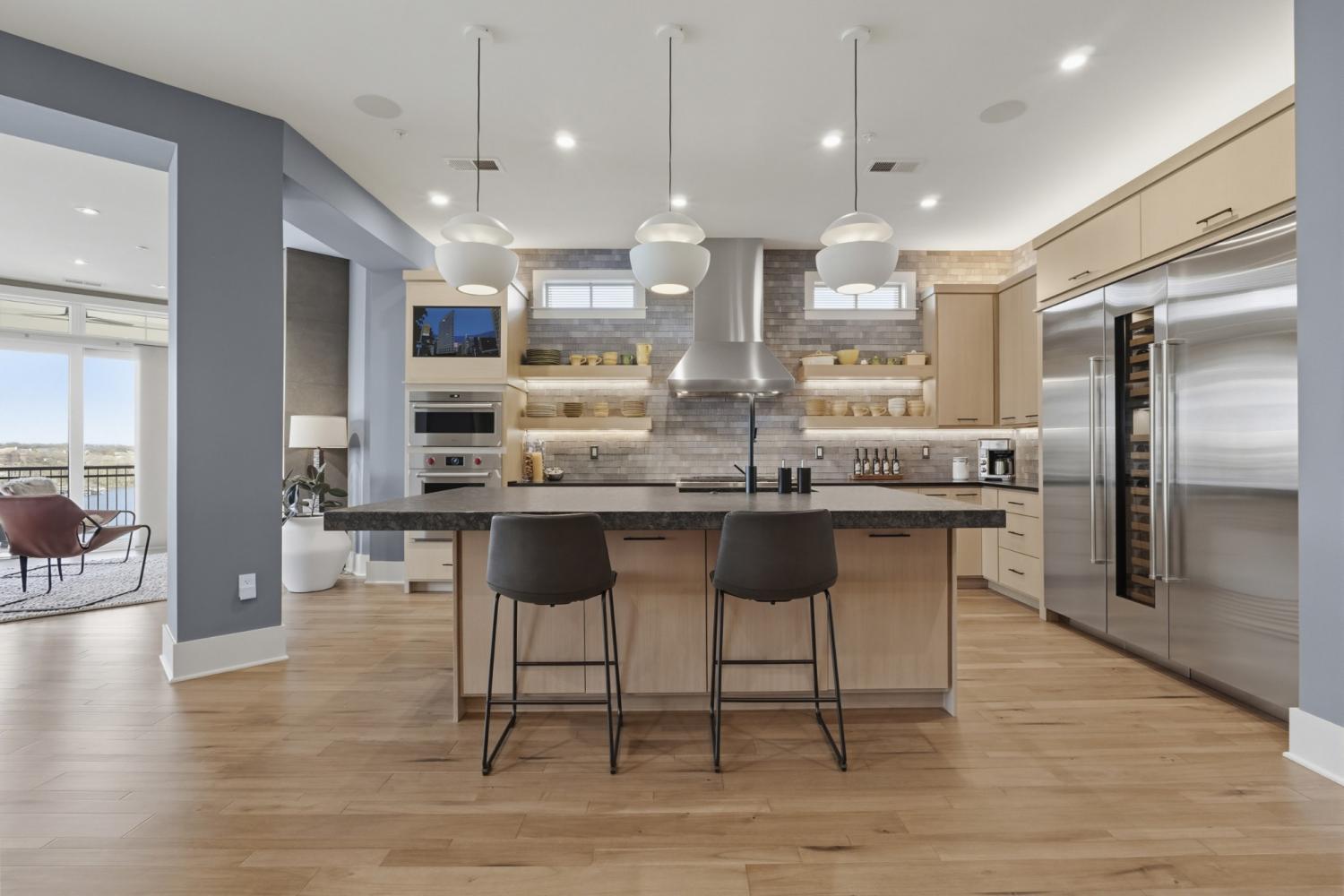 LUXURY LAKEFRONT CORNER UNIT, PANORAMIC VIEWS, OLD HICKORY LAKE. WELCOME to Unit C302 at Revery Point, one of only four exclusive corner residences offering unobstructed panoramic views of Old Hickory Lake. This rare luxury condo combines elevated design, modern technology & effortless waterfront living in one of Sumner County's most sought-after communities. Spanning over 3,300 sq.ft, this 3 bedroom, 2.5- bath residence is designed to impress with 10'ceilings, expansive windows, & natural light pouring in from every angle. The open-concept layout seamlessly connects the living, dining, & kitchen spaces--perfect for both everyday living & entertaining. The chef's kitchen is a true standout, featuring premium Wolf/Sub-Zero appliances, w/custom cabinetry w/abundance of storage, designer tilework & high end-finishes throughout. Smart home features & integrated sound/lighting systems elevate the experience even further. Enjoy indoor-outdoor living with TWO private balconies overlooking the water- creating the perfect setting for morning coffee or evening sunets. The primary suite is a private retreate featuring floor-to-ceiling lake views, a custom walk-in closet, heated bathroom floors, & a spa-inspired bath complete with a freestanding tub, glass shower, floating vanaties detailed w/under cabinet lighting & elevated finishes. Additional highlights include wide-plank hardwood flooring throughout, designer lighting, spacious laundry room, climate controled storage conveniently located on same floor, & two reserved covered parking spaces. Direct elevator access offers a secure, lock-&-leave lifestyle. Residents enjoy private access to a scenic lakefront walking path, along w/optional membership to Tennessee Grasslands Golf & Country Club, offering championship golf courses, resort-style pools, fitness centers, dining & more. This is more than a home-it's a lifestyle! Live effortlessly. Live waterfront. Guest parking right in front of C building for convenience.