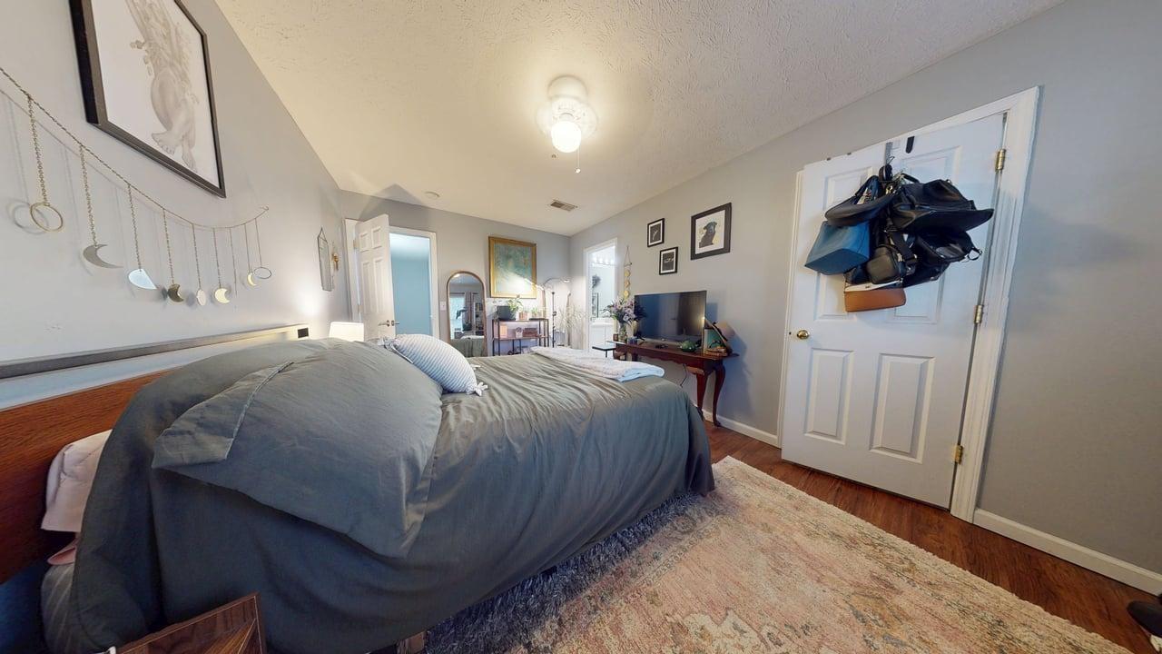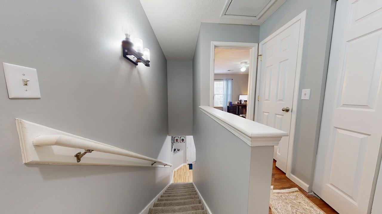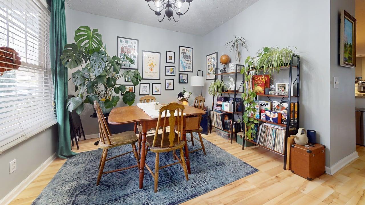 BEST LOCATION IN COMPLEX BACKING TO TREES! Welcome to this beautifully updated 2-bedroom, 2.5-bathroom townhome offering approximately 1,216 sq ft of comfortable living space in the sought-after River Bridge neighborhood. Nestled in a quiet, tree-lined setting with easy access to shopping, dining, parks, and a quick commute to downtown Nashville and Bellevue, this home is perfect for first-time buyers, professionals, or investors. Key Features: Open & Inviting Main Level — Step into a bright, open-concept living and dining area with warm light hardwood floors throughout. The spacious living room flows seamlessly into the kitchen and dining space, creating an ideal layout for entertaining or everyday living. Modern Kitchen — Features a breakfast bar with black metal barstools, ample cabinetry, and stainless steel appliances. The adjacent dining area is bright and welcoming. Generous Bedrooms — Both upstairs bedrooms offer plenty of natural light and closet space. The primary suite includes an en-suite bathroom for added convenience. Flexible Bonus Spaces — A dedicated home office area with a large monitor setup and ergonomic chair provides the perfect spot for remote work or study. A cozy reading nook or additional living space completes the upstairs layout. Outdoor Living — Enjoy your private patio with string lights, comfortable seating, and a peaceful wooded backdrop. Great for morning coffee, evening relaxation, or casual gatherings. A storage area and green space add to the appeal. Additional Highlights — Fresh neutral paint, updated lighting fixtures (including a stylish chandelier in the dining area), wood-look flooring, and thoughtful storage throughout. The home is move-in ready with a functional layout that maximizes every square foot.