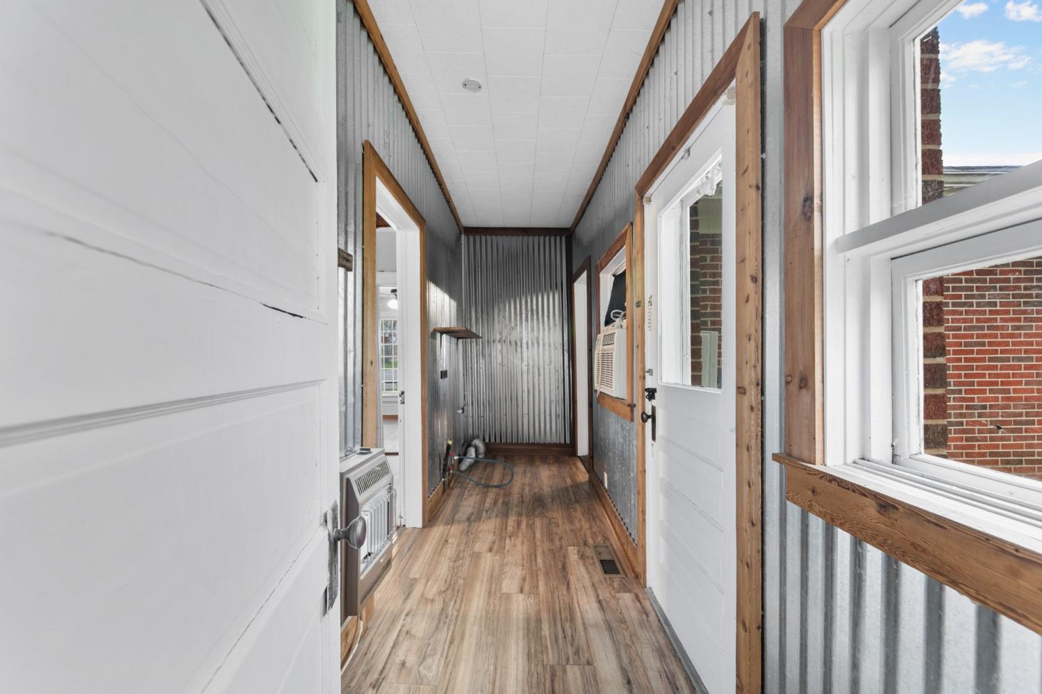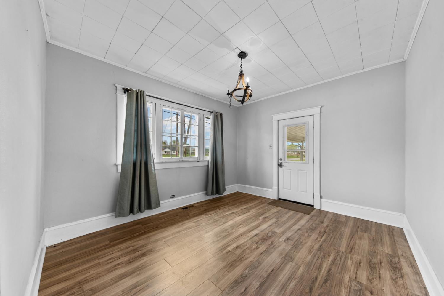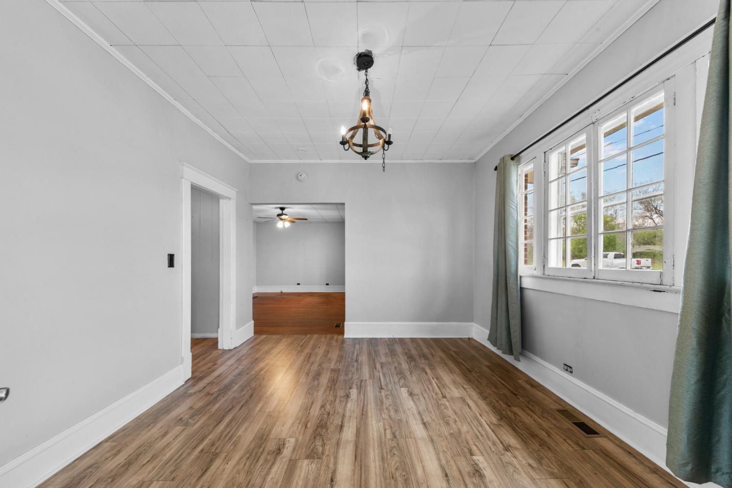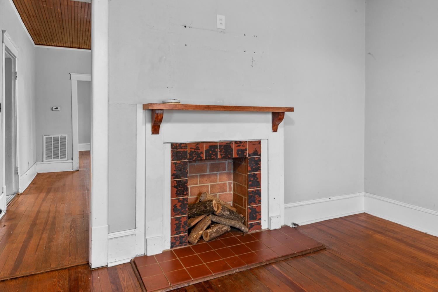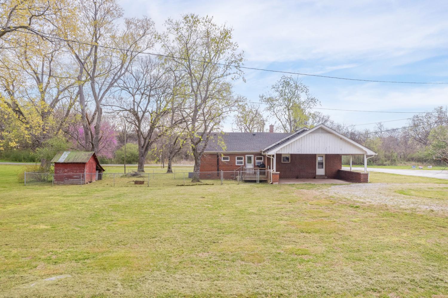 Welcome home to this charming all-brick gem! This cozy 2-bed, 1-bath home sits on a corner lot and offers 1,160 sqft of comfortable living space. Step inside and you'll immediately notice the beautiful hardwood floors flowing through the living room and both bedrooms. The dining room and kitchen feature easy-to-maintain laminate flooring. Two fireplaces add warmth and character throughout the home. The bathroom features a nicely tiled shower, giving the space a clean and updated feel. Outside is where things get even better. A covered front porch welcomes you home and provides the perfect spot for morning coffee and friendly waves to the neighbors. Out back, you'll find a spacious deck ideal for grilling and entertaining, plus a fenced-in backyard that keeps pets and little ones safe while they play. The 2-car carport means no more scraping frost off your windshield on cold mornings, which is honestly reason enough to make an offer. See media picture for property across the road that is included with this sale. Property is in a flood zone. Schedule your showing today before someone else scoops up this sweet little find. Selling AS-IS.