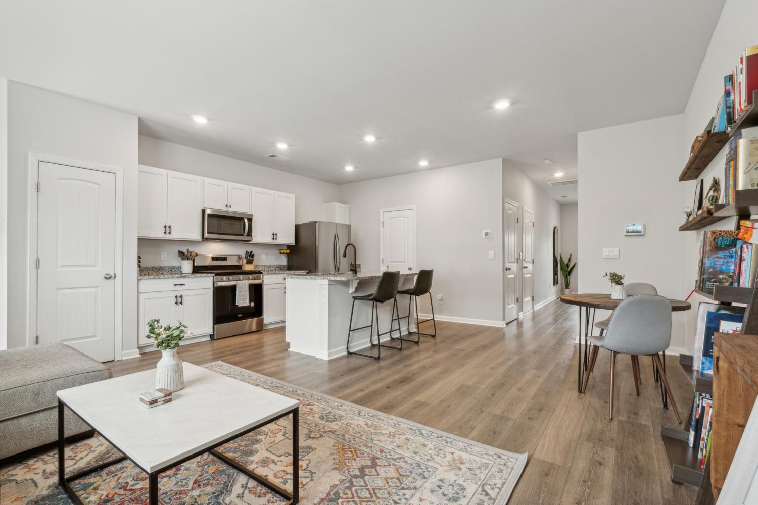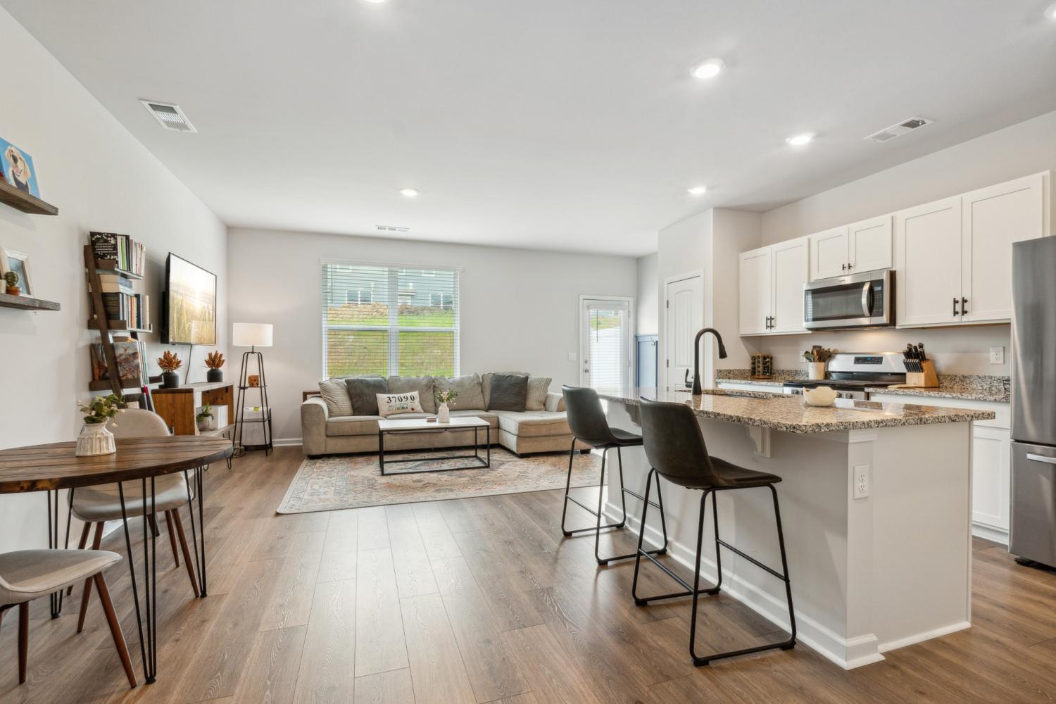 Welcome to this beautifully maintained two-story townhome in Lebanon, TN, offering a great mix of practicality and everyday comfort in a highly accessible location. Conveniently positioned just off I-40, you’ll be within close proximity to grocery stores, dining options, retail, historic Lebanon, and downtown Nashville—making both commuting and daily errands simple. As you enter, you’ll notice a well-designed floor plan with clean finishes throughout. The main level features a comfortable living area that opens to a private outdoor patio, providing a great spot to unwind or spend time with guests. The kitchen includes a gas range, plenty of cabinet storage, and everything you need for daily use, while the nearby dining space makes mealtime easy and functional. Upstairs, the layout offers separation and flexibility. The primary bedroom is set apart on its own side, complete with a private bathroom and generous closet space. Across the hall, you’ll find two additional bedrooms and a shared full bath, perfect for guests, roommates, or a home office. **In unit Washer & Dryer