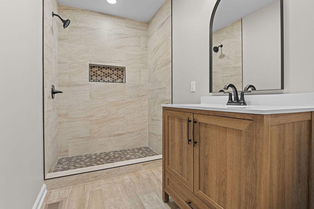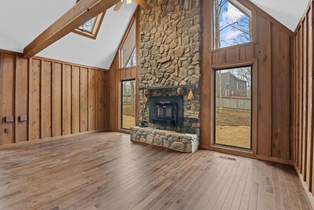 Discover the potential of this charming 2,480 square foot home, situated on a tranquil lot enveloped by lush, mature trees. This property features a dramatic water fall that flows into a holding pond area. Step into the great room, where dramatic vaulted ceilings soar above a stunning stone fireplace, creating an inviting atmosphere. The first floor includes a second primary bedroom with an ensuite bath for added convenience. Upstairs, the spacious main bedroom boasts a private bath, offering a perfect retreat. The expansive main floor layout features a generous kitchen, dining room, and living space, plus an extra bedroom for guests or a home office. The finished basement serves as a fantastic fourth bedroom, ideal for a teenager's living area, and provides easy access to the backyard. Don't miss this opportunity to create lasting memories in a home that truly fits your lifestyle!