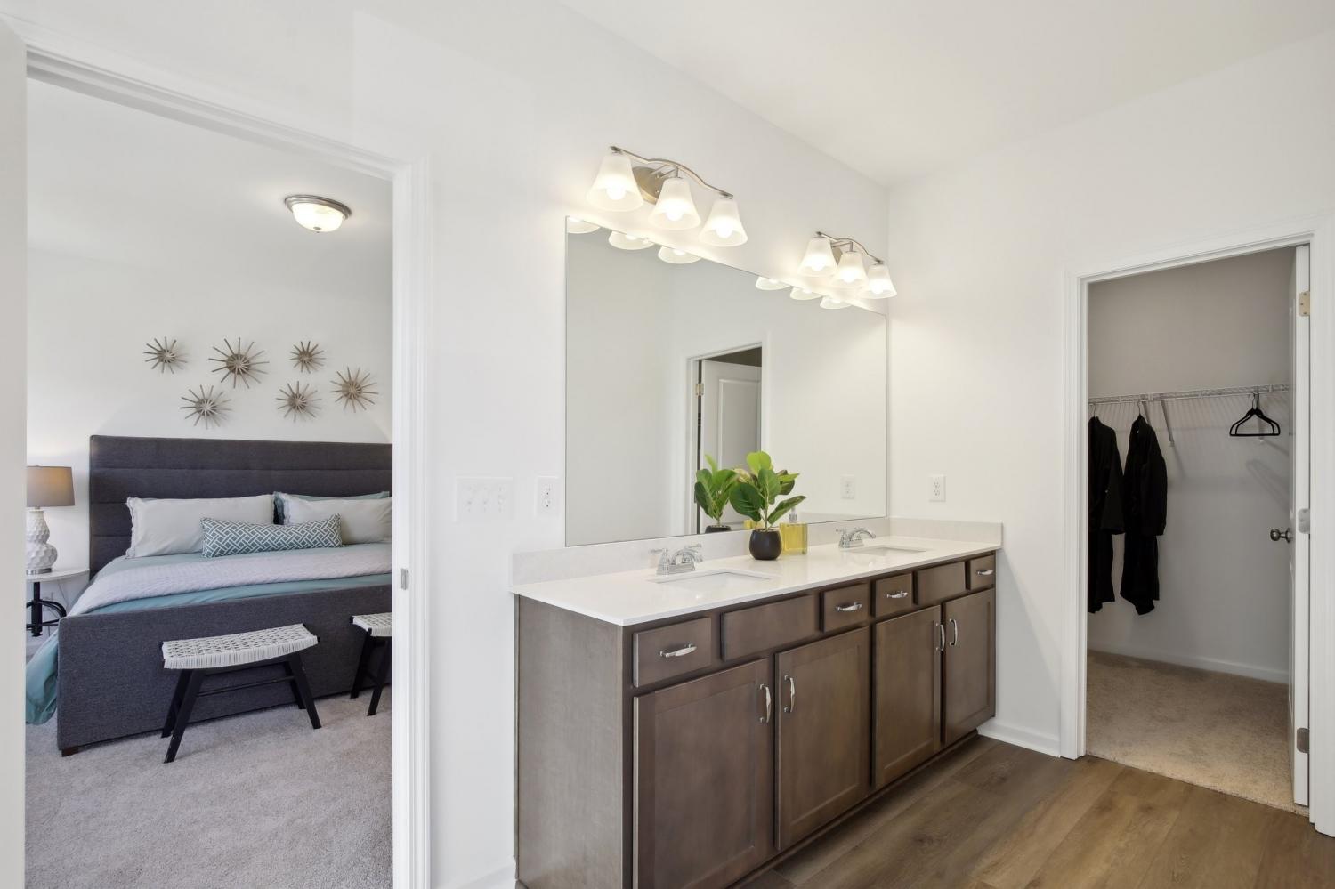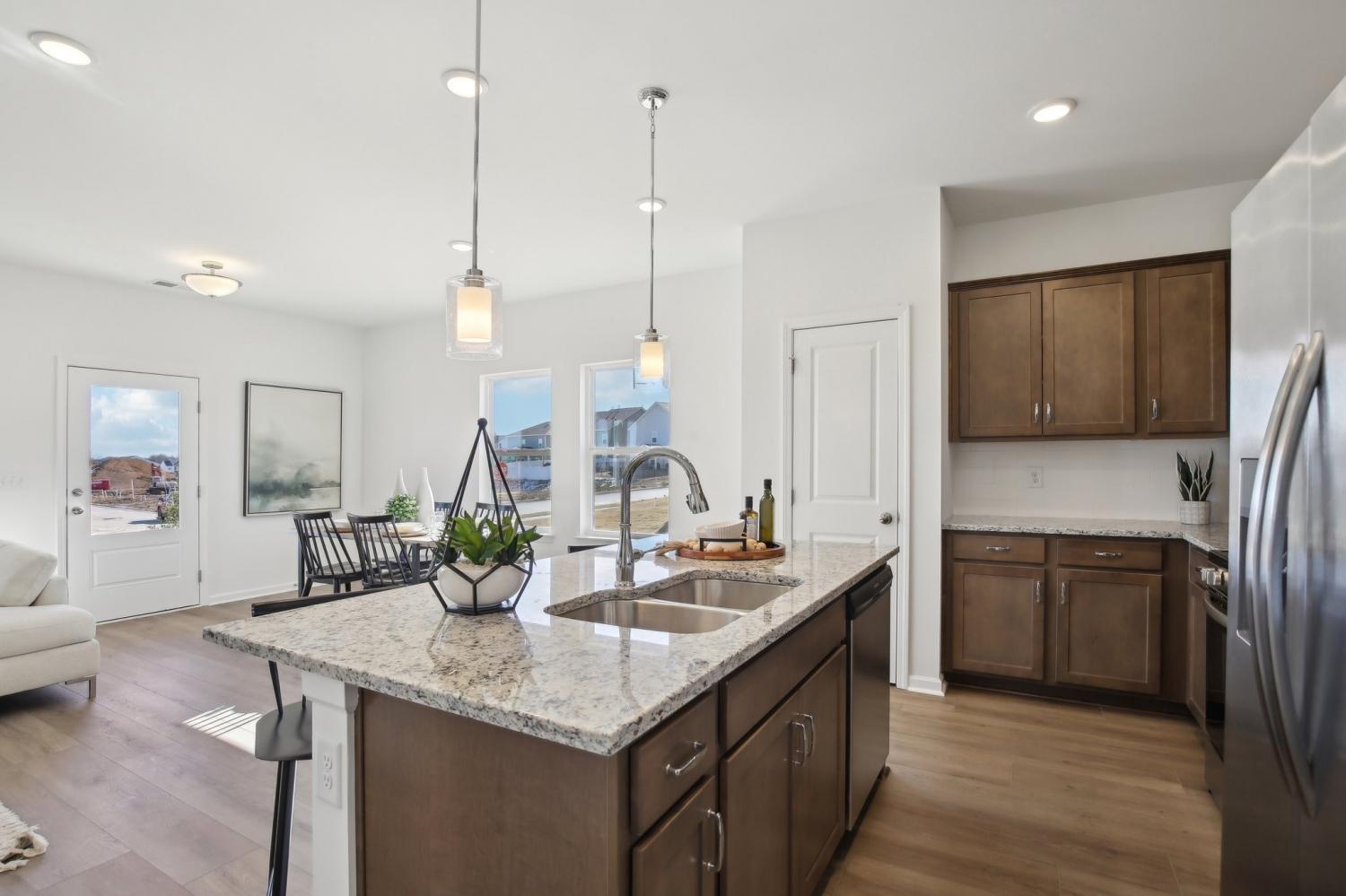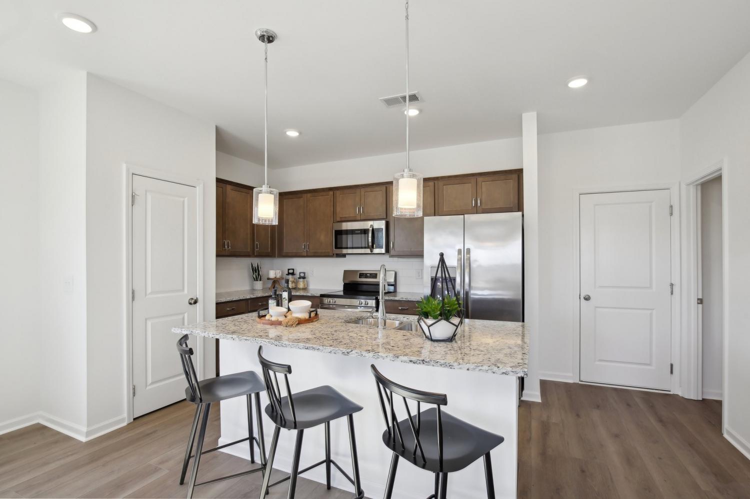 The Sussex at Wilson Meadows by Smith Douglas Homes. Experience convenient, modern living in the spacious Sussex townhome. The two-car rear garage leads to a kitchen with a large center island. The cozy dining area is open to the kitchen and family room, with a convenient exit to the expansive front porch. Upstairs, the owner's suite features a spacious walk-in closet and a separate water closet. Two bedrooms, a full hall bath, and a second-floor laundry room provide convenience for household chores. *4.99% FHA / VA fixed rate or $15,000 Felx cash. Special offer details apply. Contact the onsite agent for details.