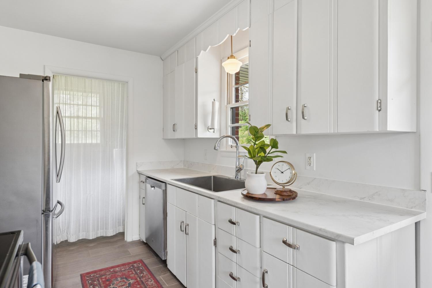 Move right in to this updated 3-bedroom, 1-bath midcentury ranch that perfectly blends vintage charm with thoughtful modern improvements set on over half an acre. Original hardwood floors run throughout the home add warmth and character. The kitchen features brand-new porcelain tile flooring, new countertops, stainless steel appliances, and a dedicated laundry room just off the kitchen for everyday convenience. Outside, the property truly shines. The large, fully fenced front yard includes established garden beds ready for spring planting and a spacious storage shed for all your homesteading dreams. A newly landscaped front yard and brand-new walkway to the front door elevate the curb appeal even further. Major behind the scenes upgrades offer peace of mind, including a newly encapsulated crawl space and new sump pump. The unfinished basement provides abundant storage and a safe storm shelter. Tucked in a charming neighborhood filled with large lots and classic homes, you’ll enjoy peaceful surroundings while still providing convenience: just 15 minutes to downtown Nashville, 10 minutes to Rivergate and East Nashville, 5 minutes to Cedar Hill Park, and 10 minutes to Bates Nursery to help fill those garden beds! Ask about the 100% financing, no PMI loan available for qualified owner occupants!