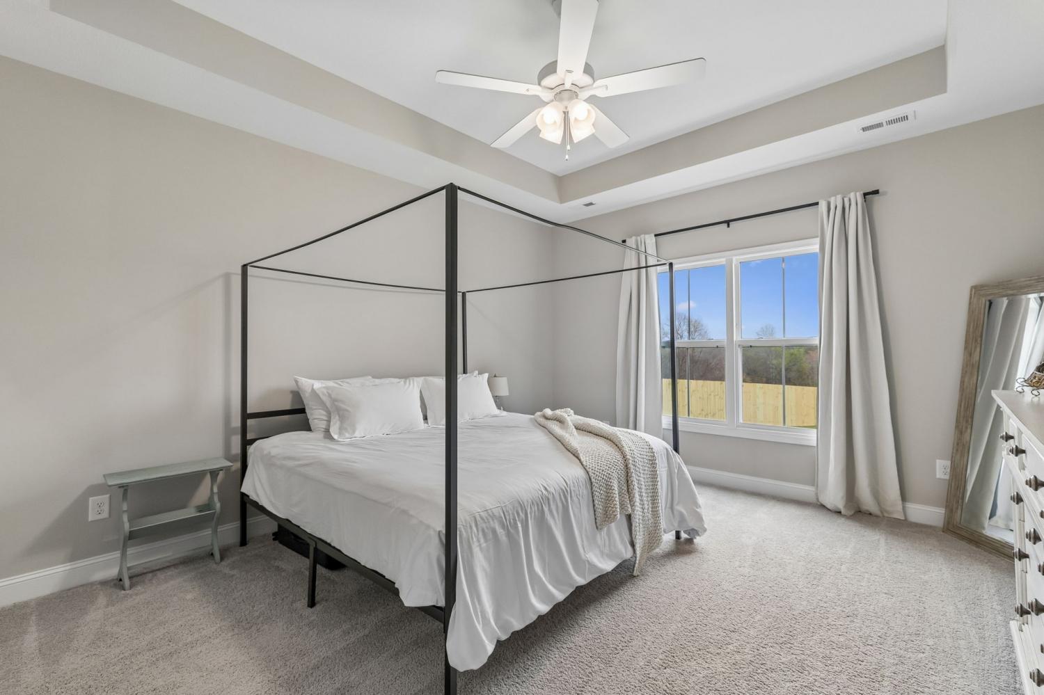 You will LOVE THIS FUNCTIONAL FLOOR PLAN that is zoned for the DESIRED Montgomery Central Schools + a short commute to Clarksville (20 mins) / Nashville (45 miles) -- 4 beds 3 baths TWO CAR GARAGE and just under 2,500 sqft!! Primary bedroom suite on MAIN LEVEL + an additional guest bedroom + full bathroom (perfect for little ones, guest room, home office, or a nursery).. other two bedrooms, a full bath, and the dedicated BONUS SPACE located upstairs || NO HOA HERE and NO CITY TAXES !! ||... PRIMARY BEDROOM features: large room with a private bathroom w/ double sink vanity, great cabinet storage, LUXE SPA WORTHY SHOWER, and HUGE walk-in closet that leads into the laundry room = TOTAL CONVENIENCE..!!! The kitchen has LARGE ISLAND, granite countertops, plenty of cabinet storage, a coffee bar, and walk in closet pantry.. DEDICATED DINING SPACE ... the LIVING ROOM will fit your large L shape couch perfectly in front of the cozy FIREPLACE!! || Other fun features to note include a BUILT IN DOG HOUSE for your furry friends under the stairs!! and a mud room to put your bags/shoes in beside the garage! Plenty of storage & linen closets throughout... LOTS OF STORAGE in the WALK IN ATTIC || ** JUST UNDER 2 ACRE YARD .. SPACE to roam + make a personalized back yard oasis.. room for your future shop plans here !!! Fantastic covered patio just off the kitchen/ living space perfect for hosting / patio lounge furniture and an uncovered patio section for grilling! and yes, you can have CHICKENS here!! ... || Utilities Include: City water, septic, High Speed Internet || .. This LOCATION LOCATION is perfect for Clarksville, Dickson, Ashland City, or NASHVILLE COMMUTERS || ... SCHOOL ZONE for HIGHLY DESIRED MONTGOMERY CENTRAL schools! Montgomery Central Elementary is aTN REWARD SCHOOL (one of the top distinctions a school can earn in TN) /// *** If you are looking for a newer build, large sqft / 4 bedrooms + bonus, and a large yard with quiet country living THIS IS IT!!!! ***