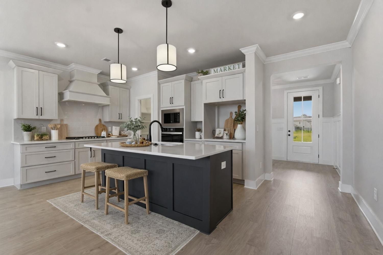 The Mercer by Celebration Homes! This thoughtfully designed home features 4 bedrooms and 3.5 baths with an inviting open foyer and a large laundry room for everyday convenience. The kitchen is a standout, offering a gas cooktop, wall oven, wall microwave, and a huge walk-in pantry, all open to the living space—perfect for entertaining. The great room showcases a tray ceiling with crown molding, a fireplace, and seamless access to the covered outdoor patio for indoor-outdoor living. The primary bedroom is located on the first floor and includes a spacious en-suite bath, walk-in closet, and hard surface flooring. Elegant hardwood steps and landing lead to the second floor, where Bedrooms 2 and 3 feature oversized walk-in closets. Bedroom 4 includes its own private bath and is ideally situated near the bonus room, making it an excellent guest or teen suite. Level lot. See design book attached for selected finishes.