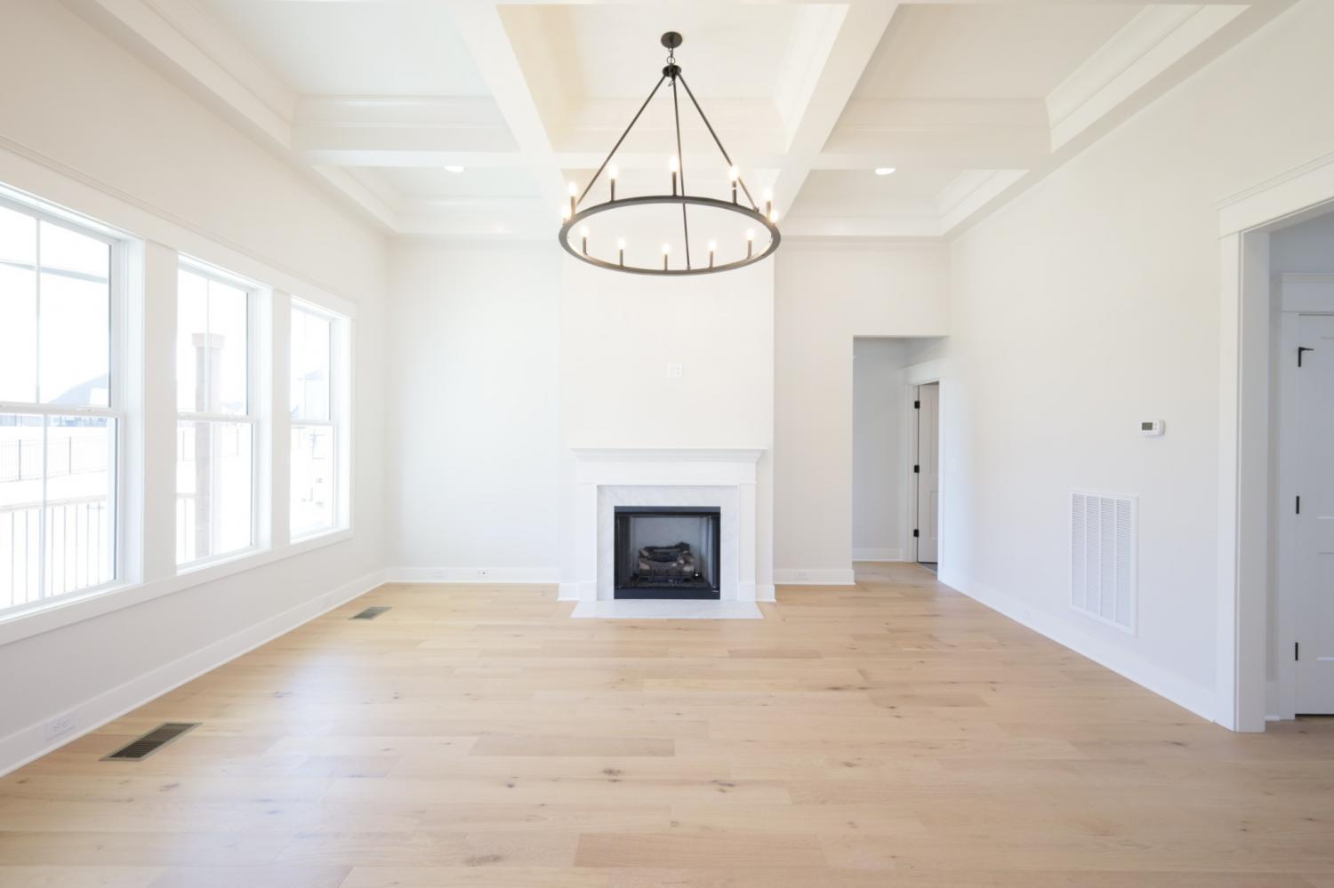 $12,000 toward closing cost and/or rate buy down with Preferred Lender. Exceptional quality construction by R&H Builders - Beautiful brick home with 4 spacious bedrooms, 3 full bathrooms, and a large bonus room. Great lot with extra usable backyard space across the alley. Primary bedroom on the main level with a 10 foot tray ceiling, a custom closet system, and a luxury ensuite with freestanding tub and large walk-in shower. Beautiful designer details: 12-foot-tall coffered ceiling in the family room, wainscoting, deluxe windows, custom cabinets, quartz countertops, hardwood and tile flooring, covered back patio, plus a grand two-story front entryway. Gas fireplace in the family room. Tankless water heater. Premium Encapsulated Crawlspace with Dehumidifier. Carrier HVAC units.