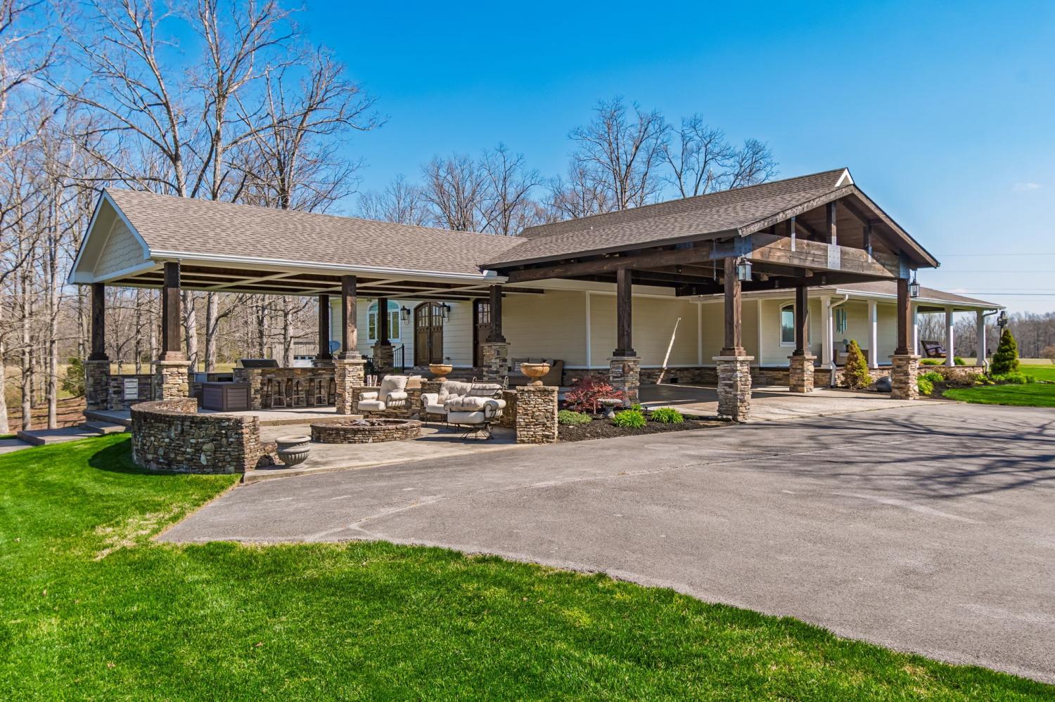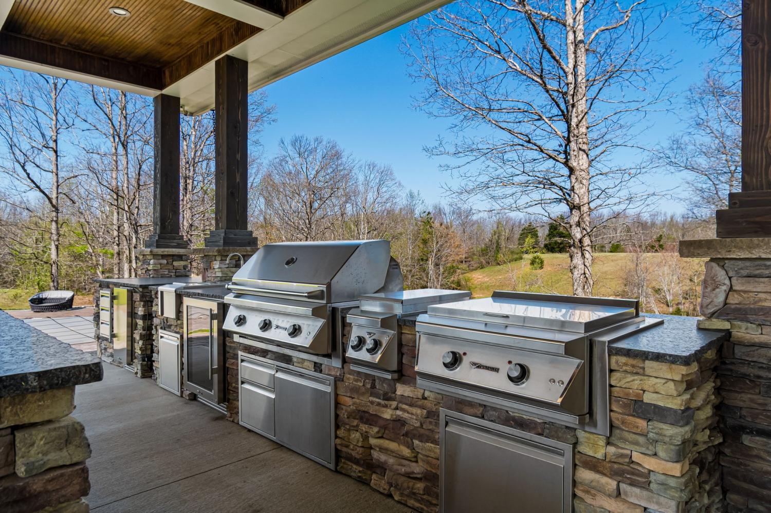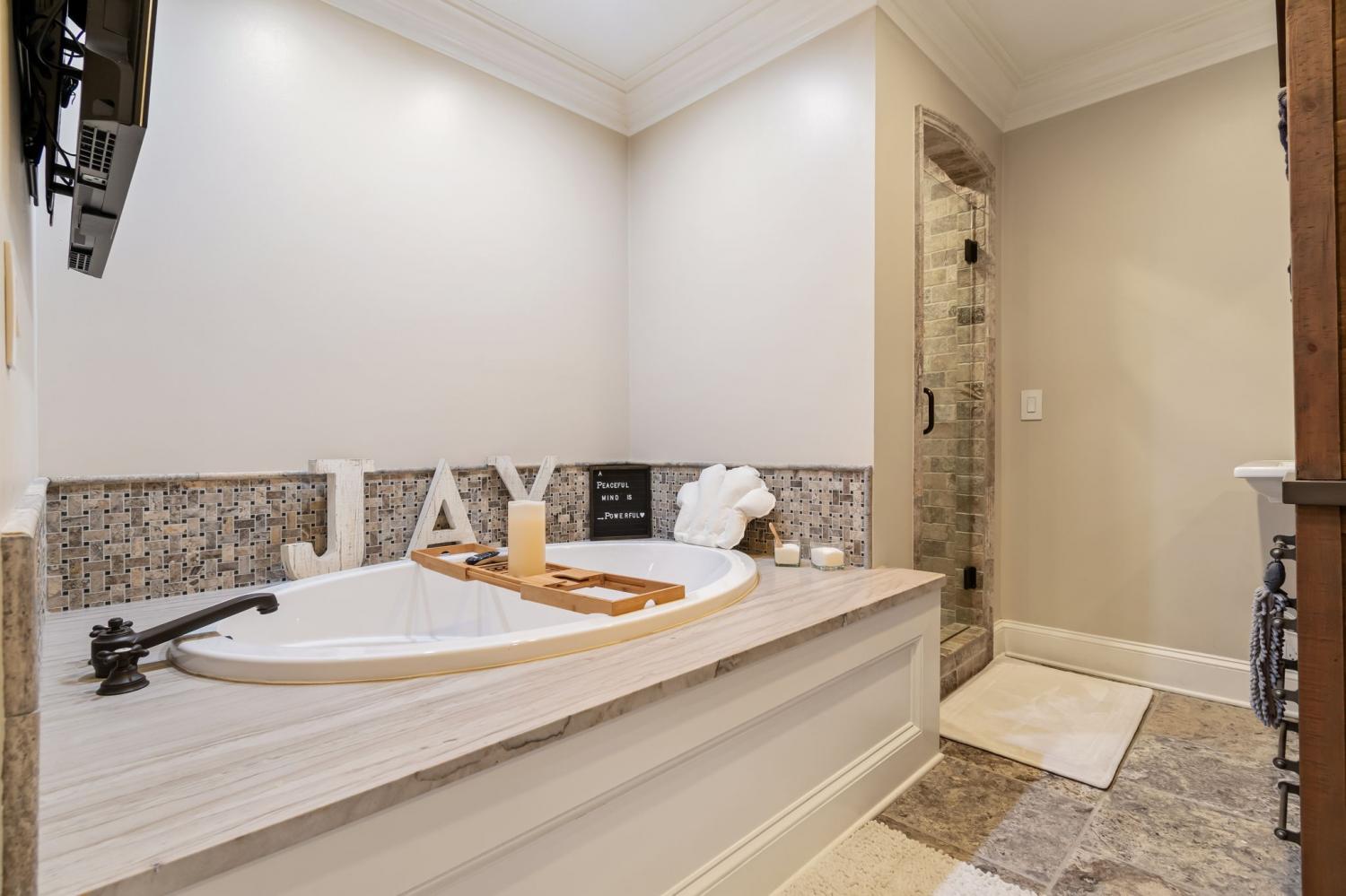 Set on nearly 97 acres of level, usable land about an hour south of Nashville, this exceptional custom estate offers a rare blend of luxury, privacy, and turnkey recreation. With high-end finishes, multiple water features, and fully usable acreage, opportunities like this are increasingly hard to find—making it a standout for buyers seeking both lifestyle and long-term value. Inside, the thoughtfully designed home showcases craftsmanship throughout. The chef’s kitchen is a true centerpiece, featuring premium Wolf appliances, double ovens, custom soft-close cabinetry, and granite countertops that extend through the kitchen, bathrooms, and basement kitchenette. The main-level primary suite offers a private retreat with heated tile floors in the spa-like bath and spacious walk-in closet. Enjoy an oversized double-headed shower, air-jetted soaking tub, and a dedicated fireplace for a warm, relaxing atmosphere. A second fireplace anchors the main living area. Upstairs, two generously sized bedrooms and a full bath provide comfortable accommodations for family or guests. The finished basement adds versatility with a large flex space, private entrance, additional bedroom, and full bath—ideal for guests, in-law quarters, or income-producing potential. Designed for modern living, the home also includes high-speed internet, remote-controlled blinds, and both city and well water to support irrigation and landscaping. Outdoors, enjoy a private resort setting with a heated saltwater pool, outdoor cooking area, basketball pad, and chipping/putting green. The land features three scenic ponds—two stocked—along with open acreage suited for a variety of uses. A detached three-car garage and additional two-car carport provide ample storage, while mature blueberry bushes add charm and function. Whether you’re looking for a private luxury residence, an entertainer’s dream, or a recreational retreat, this property delivers on every level.