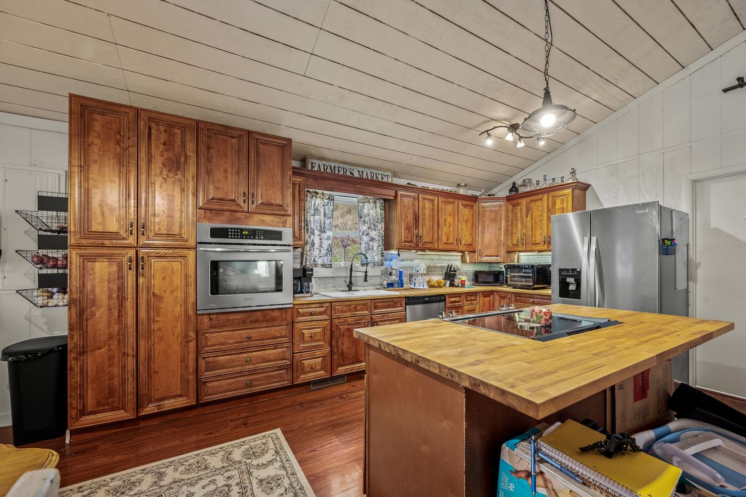 BEAUTIFUL VIEWS, WITH LARGE PORCH TO SIT IN THE ROCKING CHAIR AND LOVE LIFE. CUSTOM CABINETS IN THE KITCHEN THAT HAS A VERY LARGE ISLAND. NEW APPICANCES. OPEN CONCEPT WITH SPACIOUS LIVING WITH WOOD BURNING FIREPLACE AREA. OVERSIZED MAIN BEDROOM WITH ATTACHED REMODELED BATHROOM. THE CRAWL SPACE IS INCAPSULATED. HIGH SPEED INTERNET.