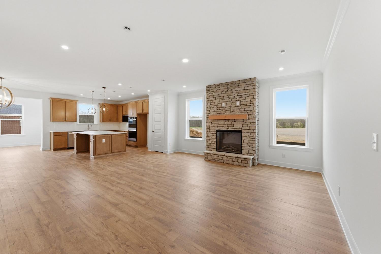 MOVE IN READY! This Ansley plan features mostly main level living with the primary + 2 bedrooms & 2 full baths downstairs on a corner lot! Open concept kitchen, dining, and living room with a stone fireplace and morning room. Enter from the garage and experience a spacious foyer with a large drop zone for shoes and coats. Also, you will find a large bonus room, 4th bed, and 3rd full bathroom waiting for guests upstairs. Kitchen has light wood colored cabinets with farmhouse sink and white backsplash with double oven and an induction cooktop. Additional cabinets upgraded in laundry room and blinds included. Amenities at Windtree will include a pool, a clubhouse with fitness center, putting green, sport court (basketball/pickleball), and playground all centered around the heart of the community. ASK ABOUT OUR MORTGAGE CHOICE PROGRAM CURRENT INCENTIVE!!