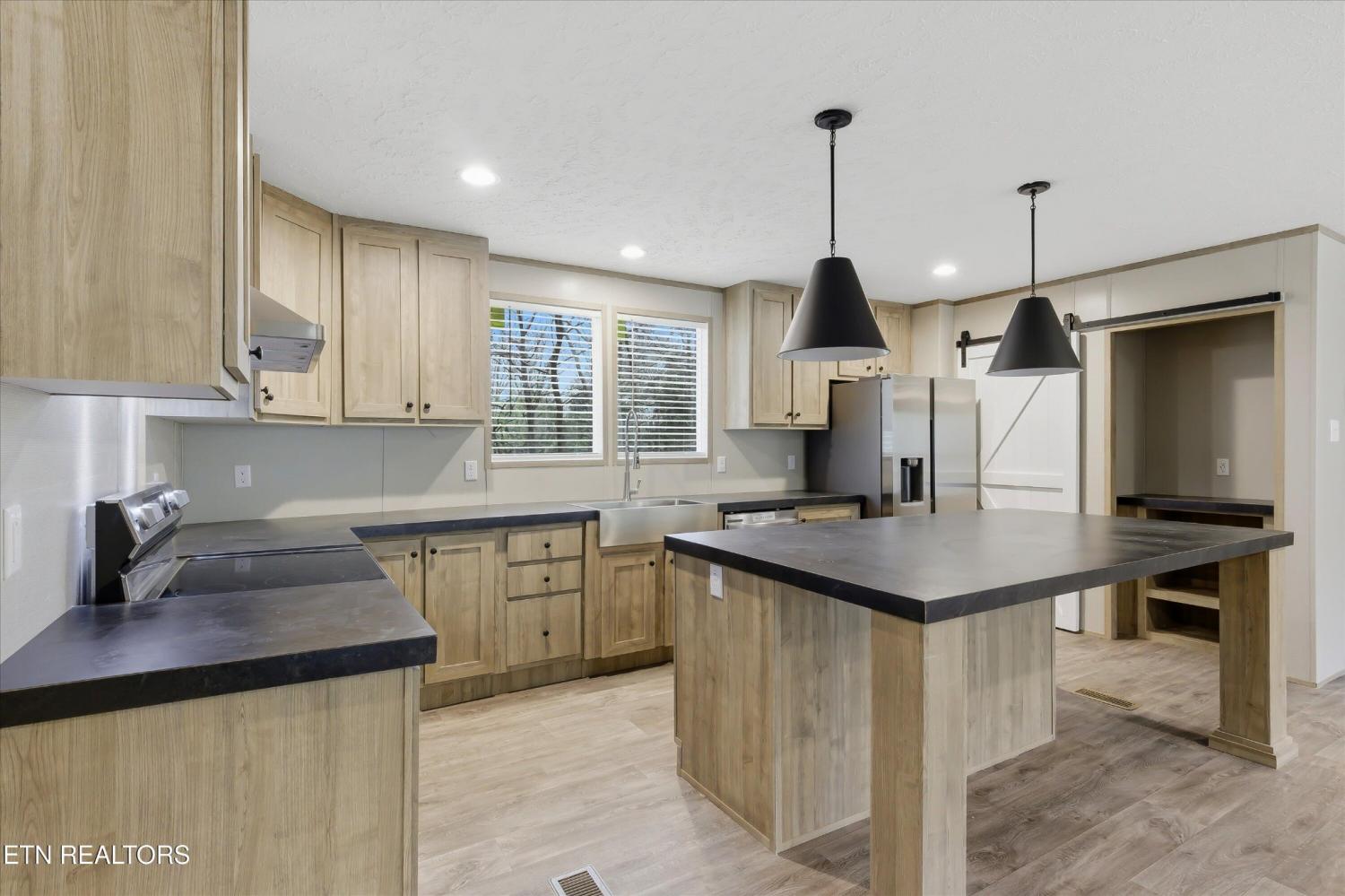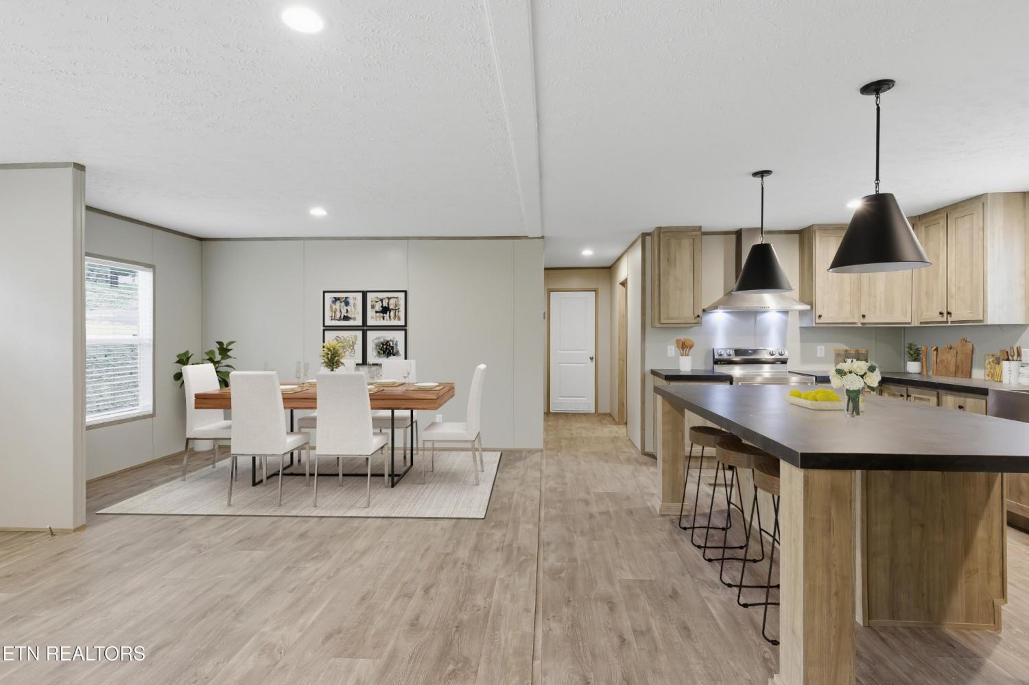 Step into this brand-new single-level home, featuring a fresh sage green and white exterior that offers great curb appeal in Lake Awana Resort Subdivision. Inside, you'll find a bright, open layout anchored by light-toned flooring that carries throughout the main living areas, creating an airy and inviting feel. The kitchen is centrally located and designed for everyday functionality, with pale wood cabinetry, contrasting countertops, brand-new stainless appliances, and a spacious island for prep or casual dining. A dedicated pantry with a sliding barn door adds convenient storage with a stylish touch. The primary suite includes a generously sized ensuite with dual vanities, a soaking tub, and a separate walk-in shower. The thoughtfully designed home includes a split bedroom floor plan for added privacy, durable LVP flooring in the main living areas and a separate laundry room for everyday convenience. Enjoy time outdoors from the front porch or back deck, and take advantage of the low-maintenance lifestyle this home offers just moments from the Tennessee River. Move-in ready and waiting for its first owner--schedule your showing today!