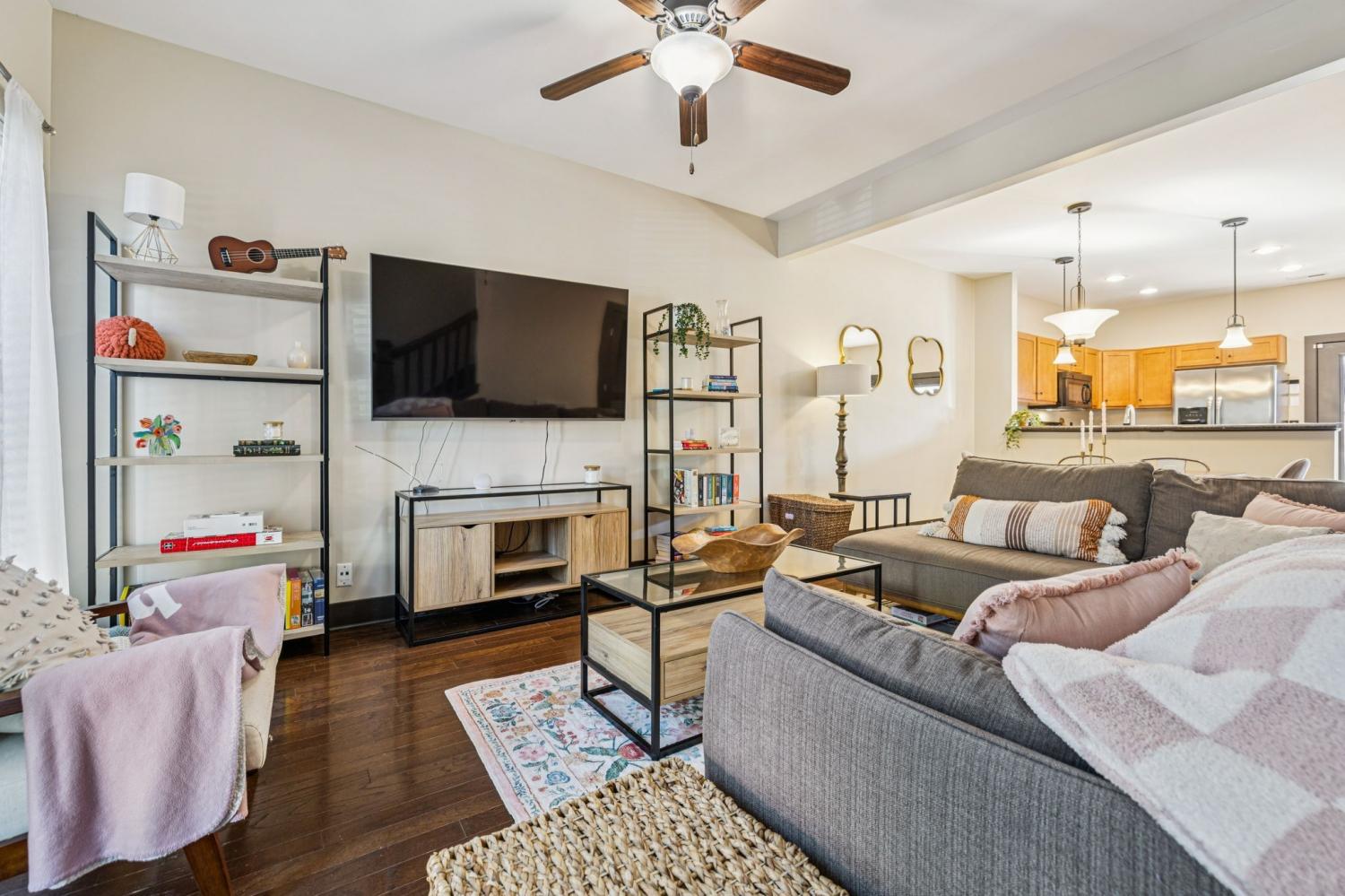 Stylish & Convenient Southeast Nashville Townhome! Well-maintained 3 bed, 2.5 bath home with 1,614 sq ft in Rosemonte Townhomes. Bright, open-concept layout features new front railing, fresh paint, hardwood floors, high ceilings, and natural light throughout. Spacious living room flows into the dining area and kitchen with granite countertops, stainless steel appliances, and ample cabinetry (kitchen opens to a covered balcony/deck). Upstairs, two large ensuite bedrooms each offer privacy and comfort, and the primary suite includes a walk-in closet, double vanity bath, and French doors opening to an additional private balcony. Large bonus room on the third level with space for optional third bedroom, work, play, or entertaining. Enjoy morning coffee on the covered front porch, and walkability (LESS than one mile) to nearby favorites like Prince's Hot Chicken, Bar-B-Cutie Smokehouse, Sprouts, Publix, William A. Pitts Park, and more. Additional highlights include a laundry closet, half bathroom on the main level, and designated parking. Just minutes from Nippers Corner, I-65, and Brentwood amenities! HOA includes Grounds Maintenance, Sidewalks, and Roof. All appliances remain.