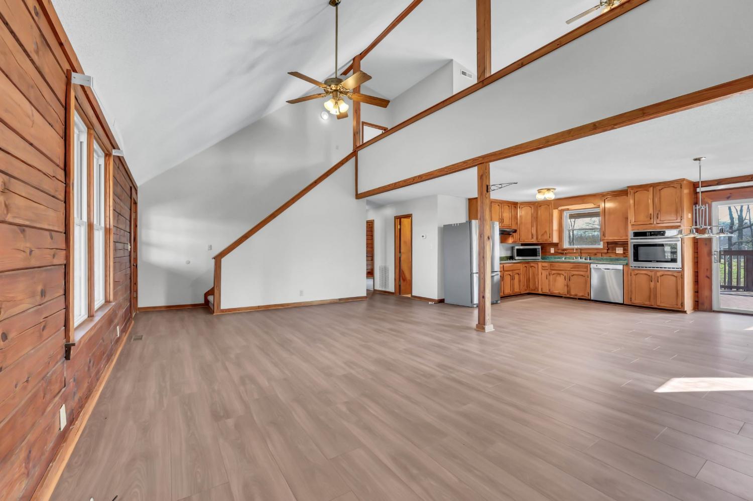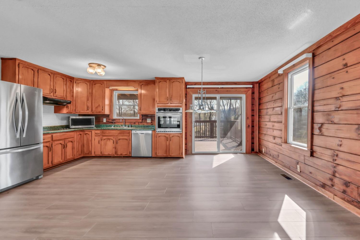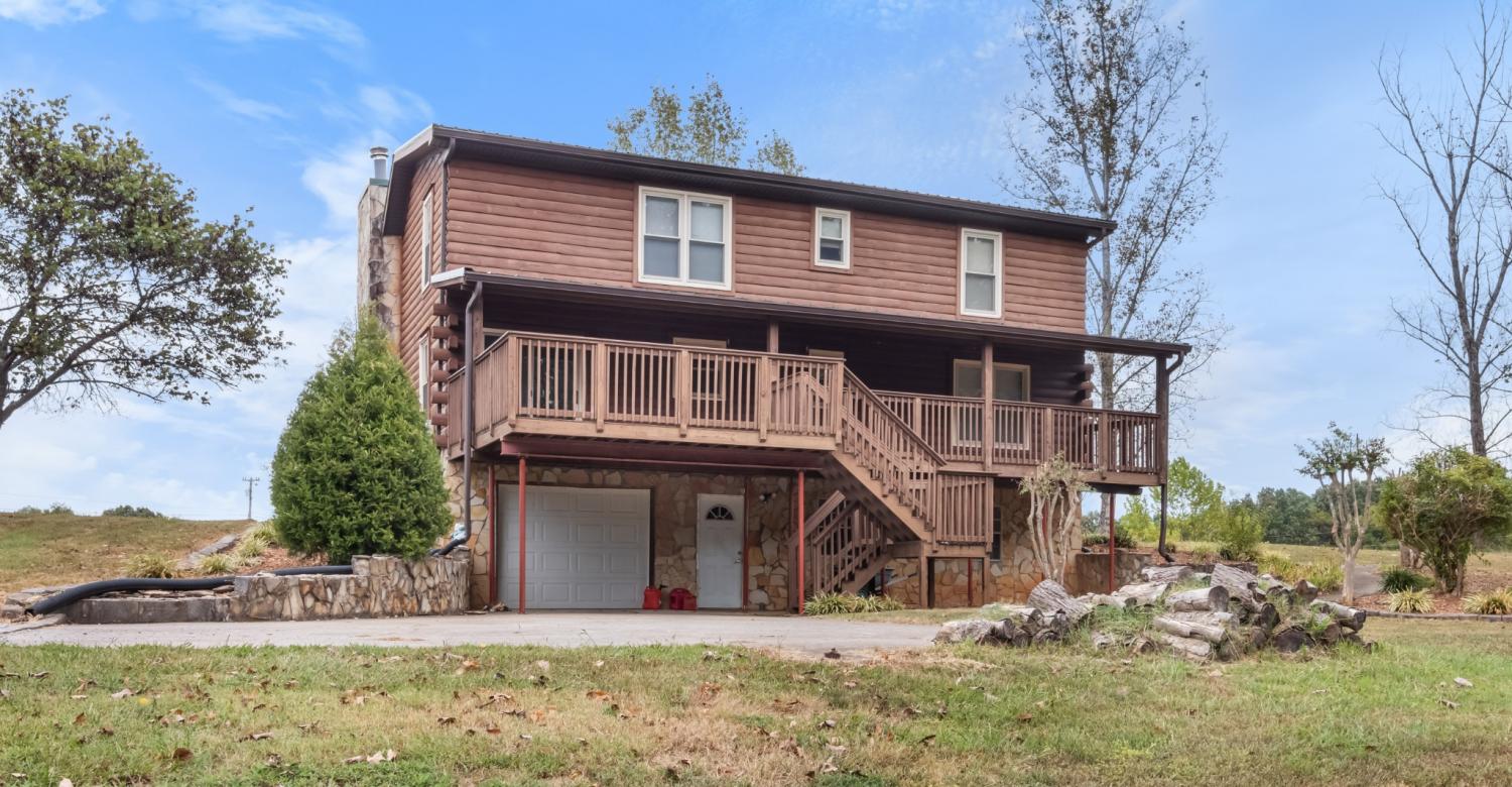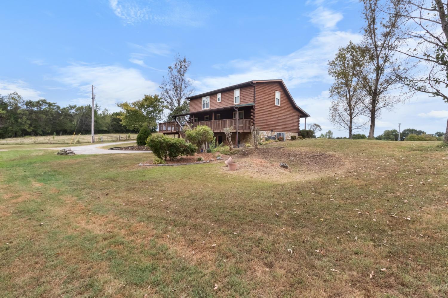 Experience peaceful country living in this beautifully crafted custom log home, perfectly situated on over 5 acres and designed with both comfort and functionality in mind. With over 2,000 square feet of living space, this property is ideal for those seeking room to roam—both inside and out. Step into the open-concept living area featuring a cathedral ceiling and a warm, inviting great room complete with a cozy fireplace. The country kitchen comes fully equipped with all appliances and offers the perfect setting for everyday living and entertaining. Recent updates include brand new luxury vinyl plank flooring throughout the main living areas and fresh carpet in all bedrooms, giving the home a clean, modern feel while maintaining its rustic charm. The main level features two spacious bedrooms and a full bath, while upstairs you'll find a private primary suite along with a huge bonus room. The finished basement adds incredible flexibility with room for an additional bedroom, office, home gym, craft room, or whatever suits your lifestyle. Enjoy the outdoors year-round with both a full-length covered back deck and a welcoming front porch—ideal for relaxing and taking in the scenic surroundings. Equestrian-ready amenities include two fenced pastures and a 4-stall horse barn, making this property a dream for horse lovers.