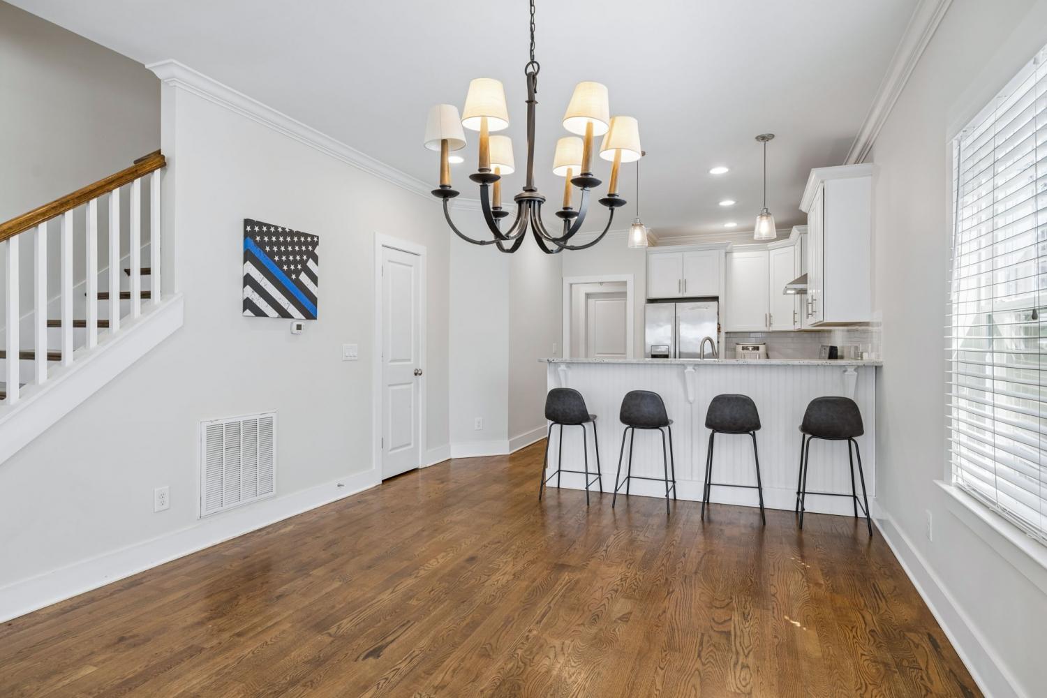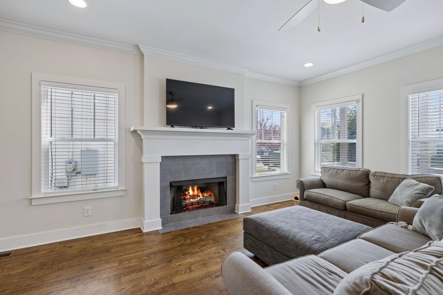 Discover modern living in one of Nashville’s most sought‑after neighborhoods. This beautifully designed double porch, stand alone 3‑bedroom, 3‑bath home blends contemporary style with everyday comfort, offering an ideal layout for both relaxing and entertaining. Wood floors throughout ~ Spacious family room w/ 9 foot ceilings, gas fireplace & open floorplan that flows to dining & kitchen ~ Ample dining space ~ Fabulous kitchen w/ white cabinets, tiled backsplash, stainless appliances, microwave drawer, granite counters, gas stove & walk in pantry ~ Drop Zone ~ Primary bedroom has 2 walk in closets, vaulted ceiling, ensuite bath ~ Primary bath has separate vanities, tiled shower w/ bench & niche, frameless shower door & tile floor ~ Secondary upstairs bedroom has walk in closet, vaulted ceiling & private bath ~ 3rd bedroom on main level ~ 3rd full bath has tile shower w/ niche, frameless door, granite counter & tile floor ~ Fenced front & back yard / perfect for pets, children, entertaining, etc ~ Generous laundry room w/ hanging space & shelving ~ All Appliances remain ~ 2 car carport / garage space ~ Situated in the heart of the Nations - just steps away from restaurants, shopping, coffee, breweries, greenspace & parks ~ Easy access to interstate, hospitals & universities ~ New HVAC 2024