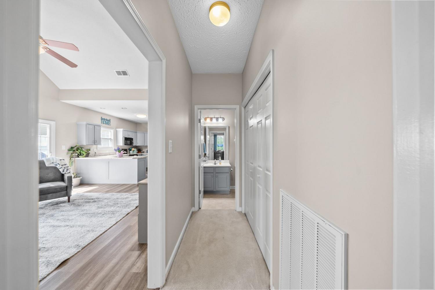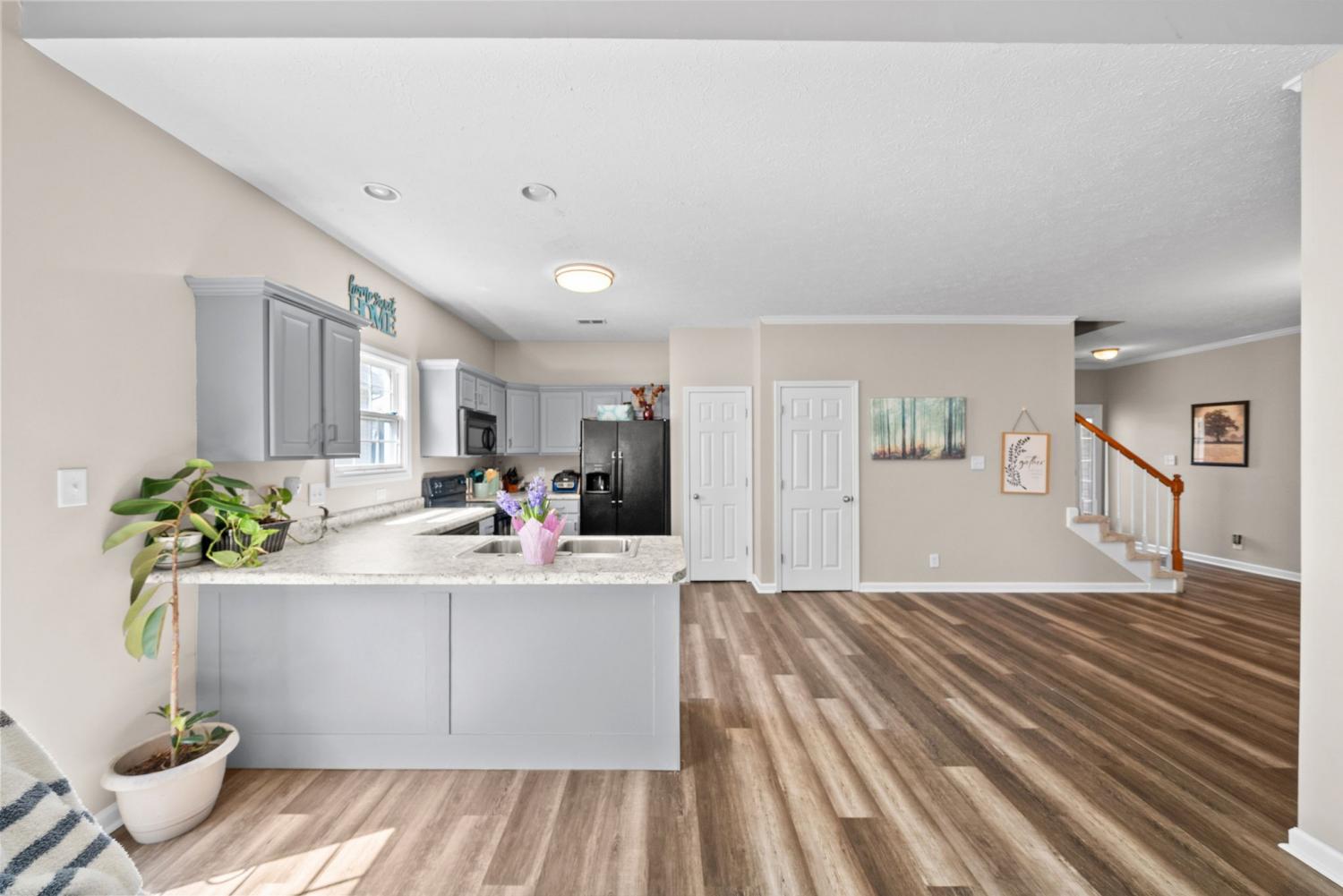 Beautiful open-concept 2-bedroom, 2-bath condo with bonus room and two-car garage in a prime location just off Exit 1 with quick access to I-24. Features include updated countertops, new flooring, fresh paint, gas fireplace, new HVAC (2022), and new roof (2025). Cozy outside sitting area with no backyard neighbors. This is where low-maintenance without compromising comfort meet. The HOA covers trash and lawn care. Convenient to shopping, restaurants and easy commute to Fort Campbell or Nashville.