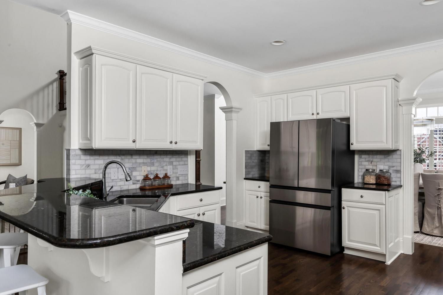 Concord Hunt sits 3 minutes from I-65 in a quiet, wooded neighborhood with walking trails, playground, pool, clubhouse + nearby Crockett park. This home sits on a level lot with a private yard that backs up to green space. New carpet, paint and updated spa-like primary bath make the home feel brand new. The gracious outdoor spaces such as the extra large screened porch, paver private side patio and level grassed backyard make a perfect space to host friends and family. Enjoy the open floor plan and all the additional spaces one needs; office/library, bonus room, garage workshop space, utility room with storage and a breakfast room in addition to a formal dining room.