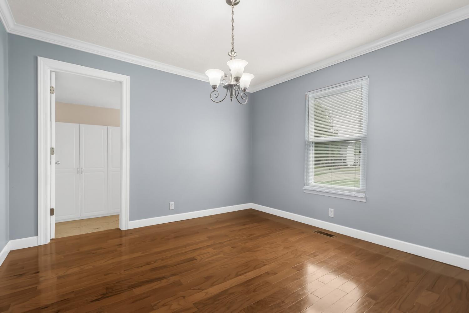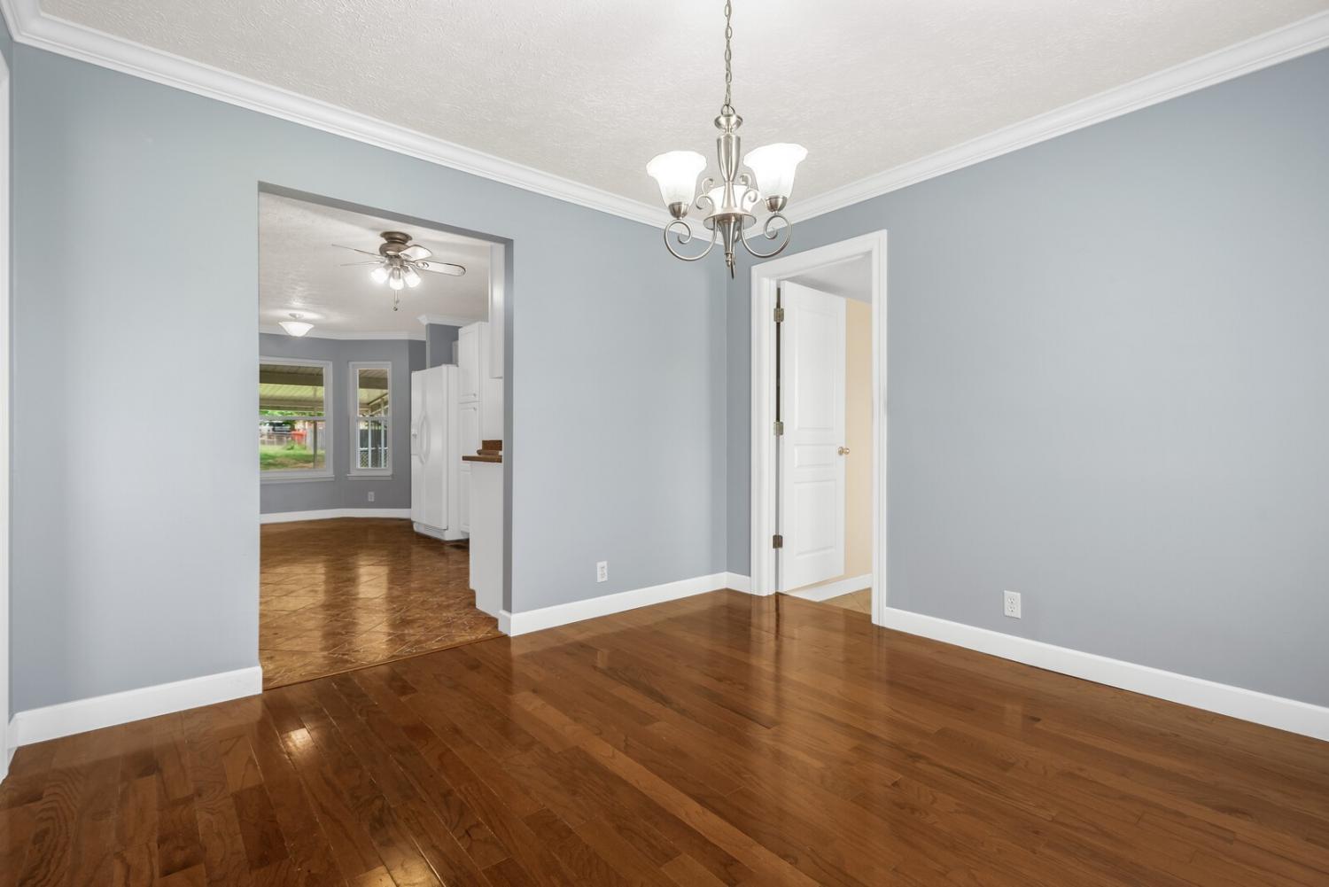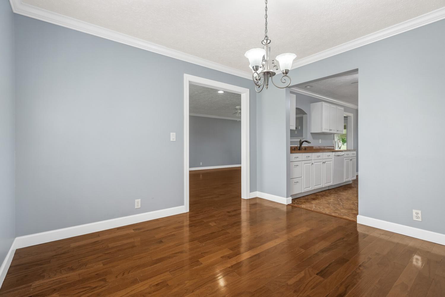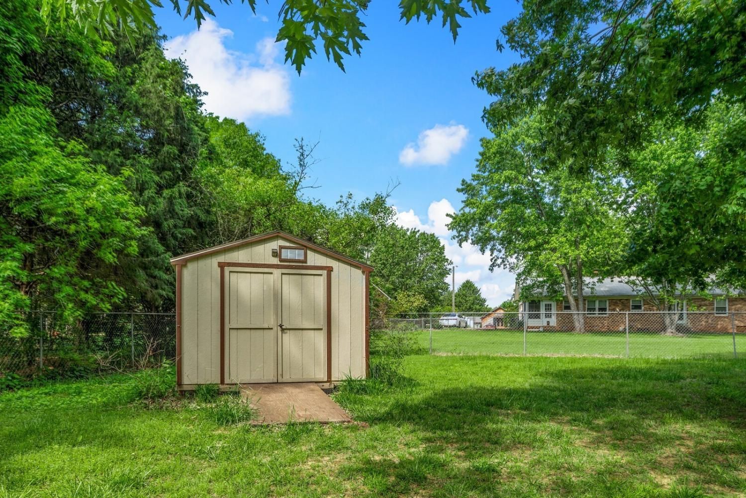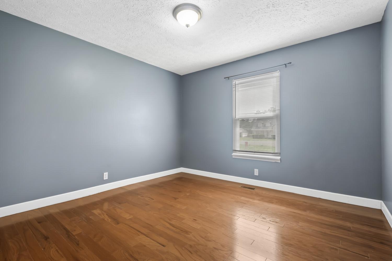 Nice Ranch home with 3 bedrooms, 2 bathrooms, 2 car garage and huge 3/4 Acre yard fenced. Hardwood floors throughout and tile in bathrooms. No Carpet. Separate Dining Room adjacent to kitchen and living room. Eat in Kitchen. Garage is oversized with storage room and shelving and is located on the rear of the home. Storage building in back yard. Home is on cul de sac. Large Screened/Covered Patio in back. Small dog under 25 lbs considered. Very convenient to I24, Schools, Restaurants and Shopping. Available June 1st.