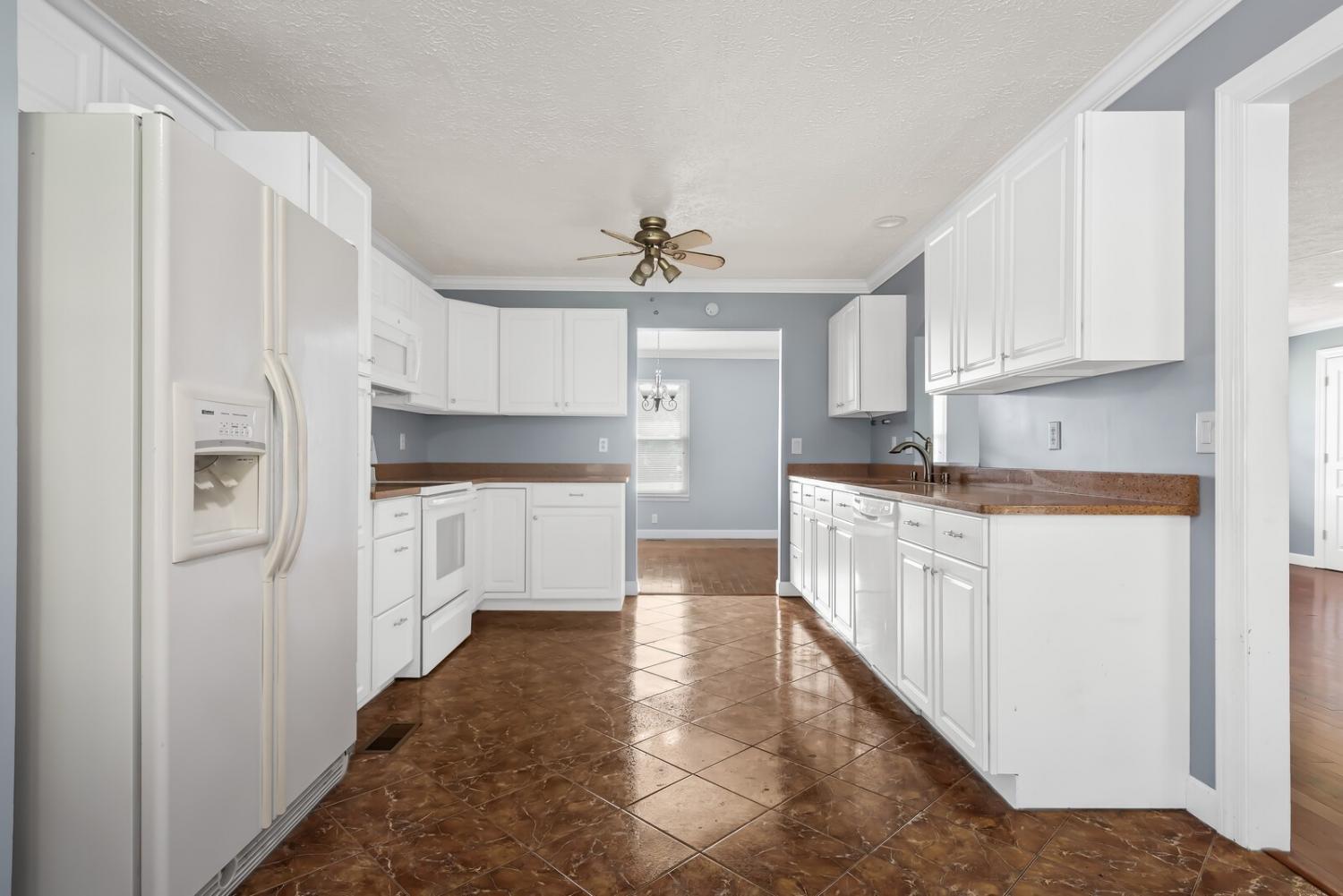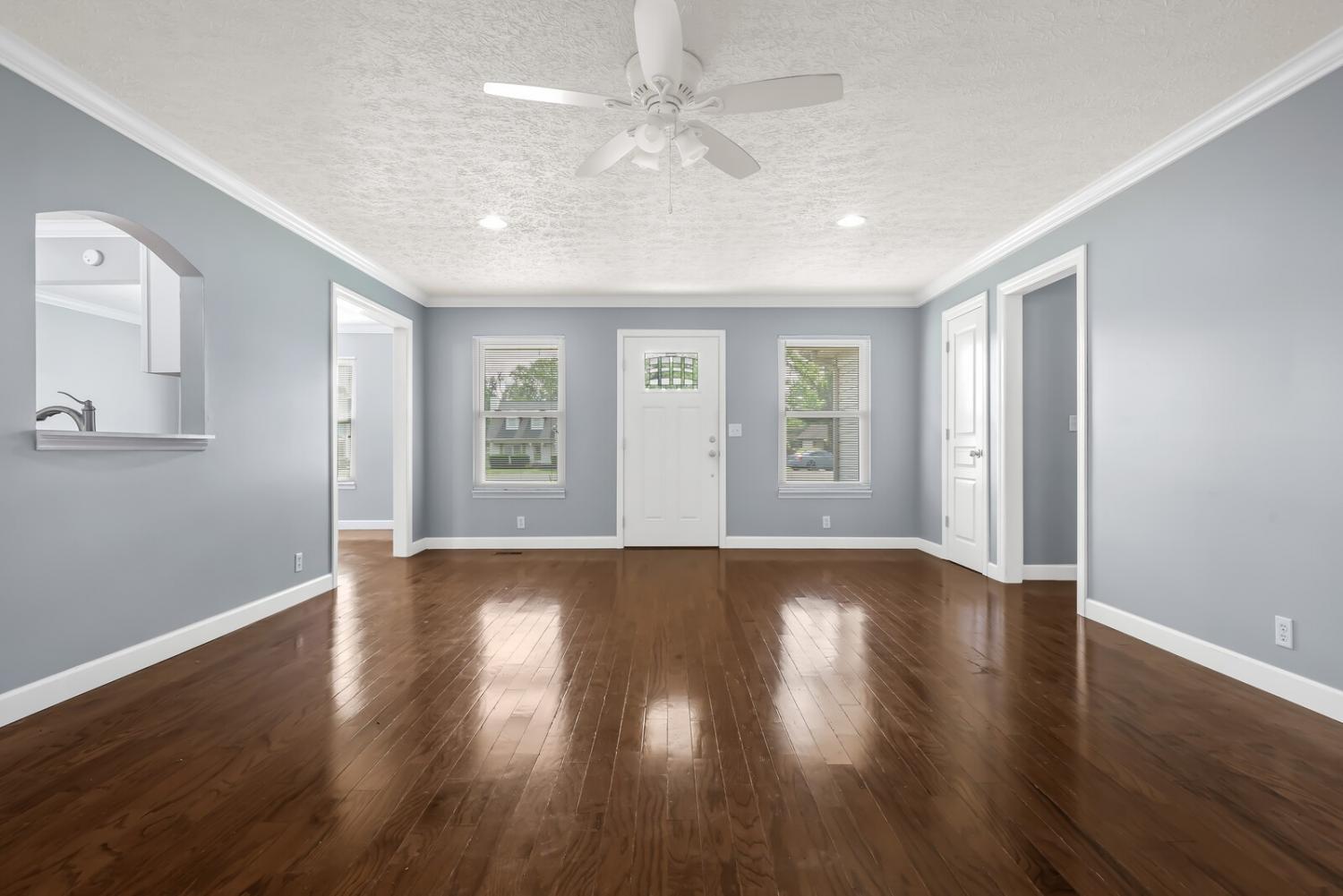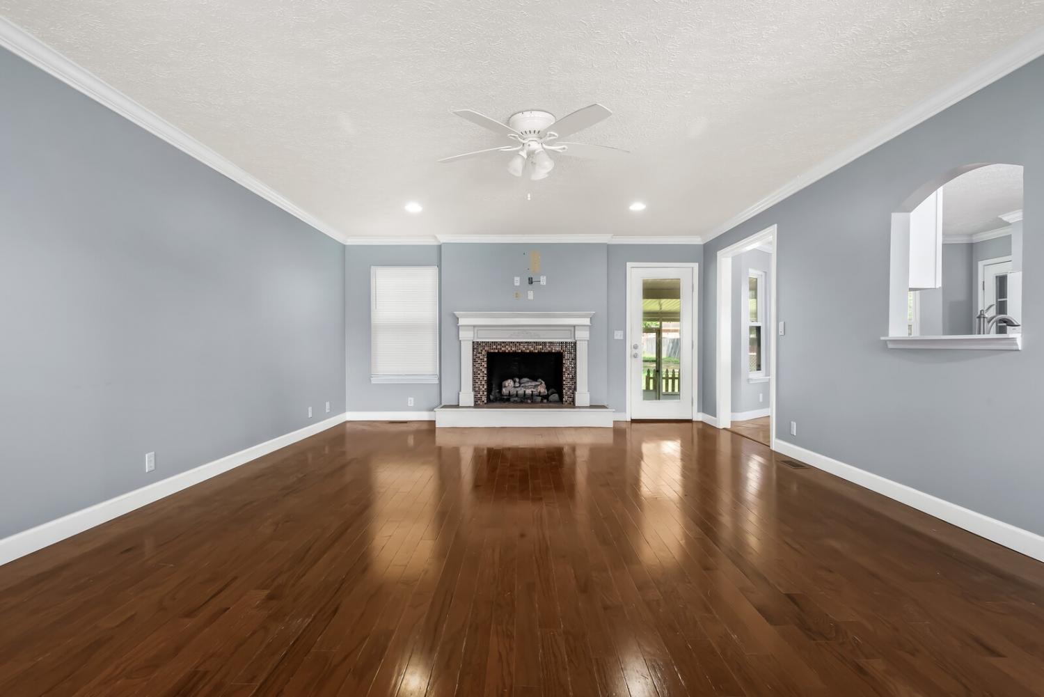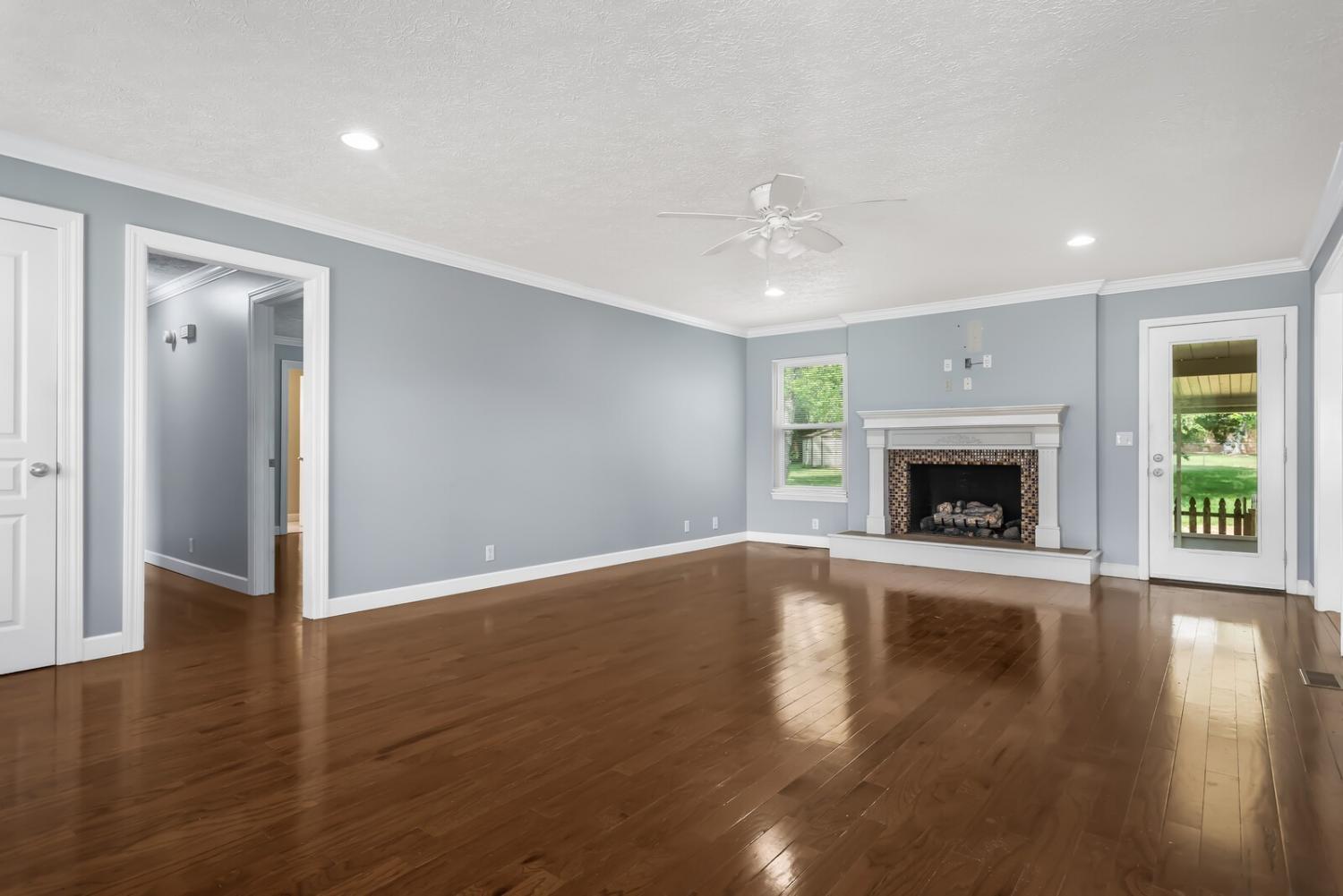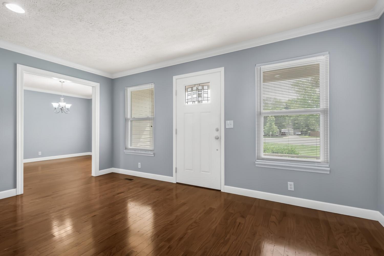 Nice Ranch home with 3 bedrooms, 2 bathrooms, 2 car garage and huge 3/4 Acre yard fenced. Hardwood floors throughout and tile in bathrooms. No Carpet. Separate Dining Room adjacent to kitchen and living room. Eat in Kitchen. Garage is oversized with storage room and shelving and is located on the rear of the home. Storage building in back yard. Home is on cul de sac. Large Screened/Covered Patio in back. Small dog under 25 lbs considered. Very convenient to I24, Schools, Restaurants and Shopping. Available June 1st.