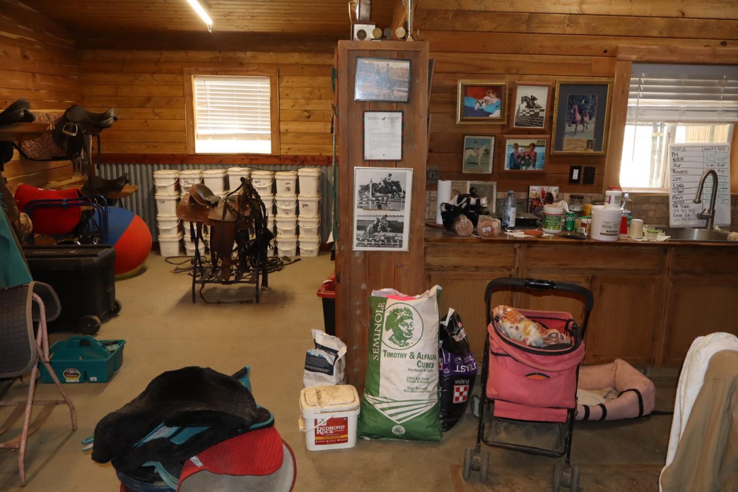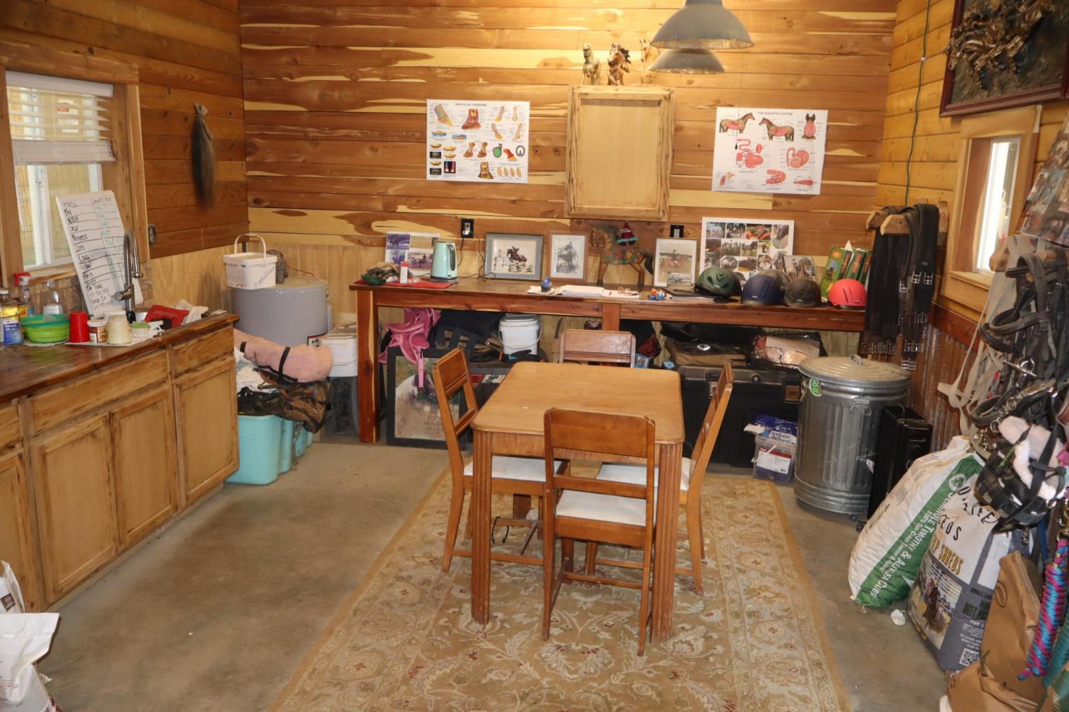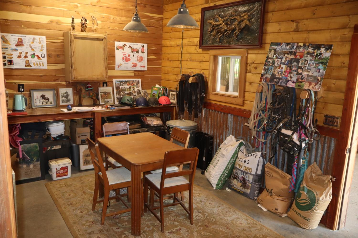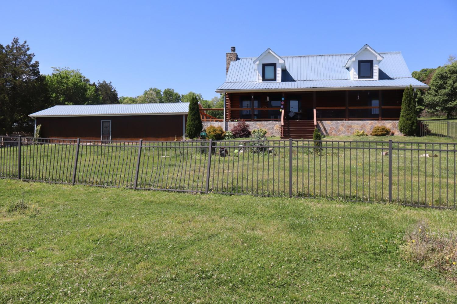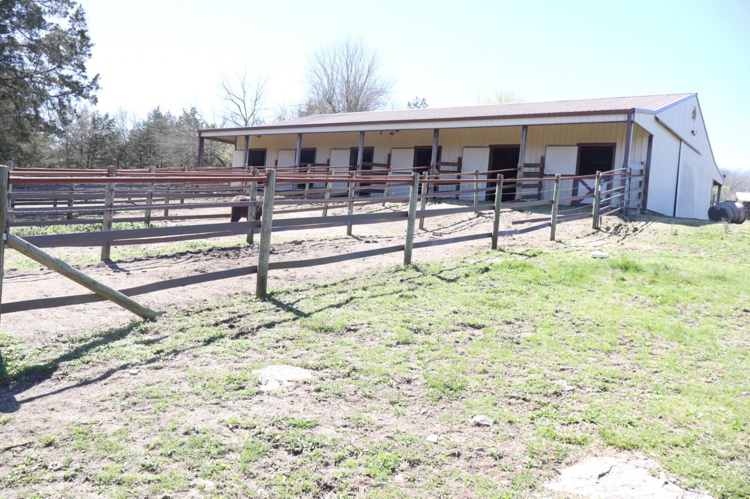 Equestrian farms this nice don't come available that often. This 24.6 acre farm has it all. Super nice horse barn with seven 12x14 custom stalls with six turn outs. Custom heavy duty steel Dutch doors on each stall. 8 ft. overhang on back and 10 ft on front. Large wash bay with hot and cold water. Nice barn office and tack room with heat and air stand alone unite. Ask about the great income producing possibilities of taking on current clients and boarders. Gated entrance. Five total paddocks with 12x18 run -in and a 12x24 run-in. Paved and gravel drive. 60x117 outdoor arena. Permanent dry lot. 4 car detached garage. 30x40 work shop. 24x32 storage building. Covered RV shed with built in deck with electric , water and waste water hook ups. Unfinished basement great for expanding. And by the way it has a really nice log home with fireplace and newer Anderson windows. Large covered front porch.