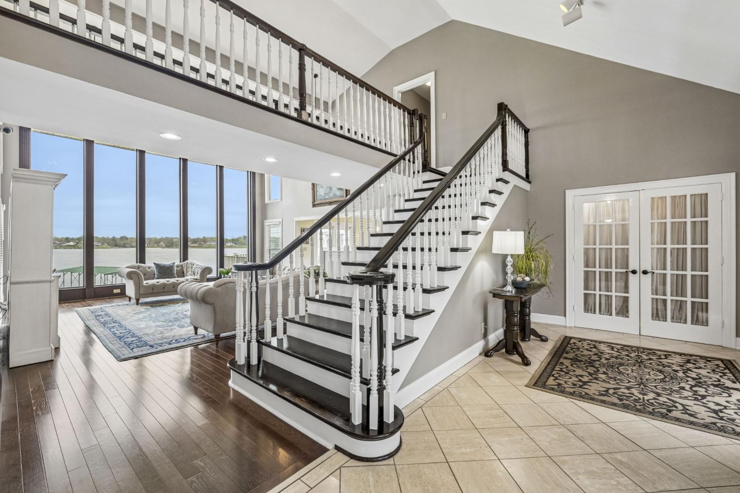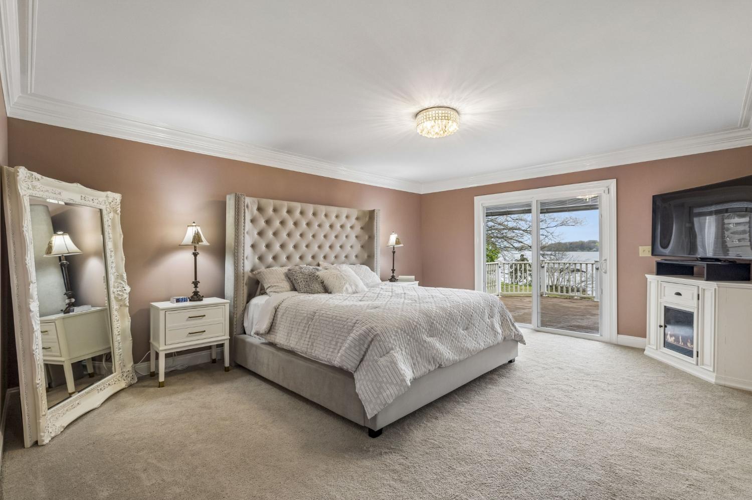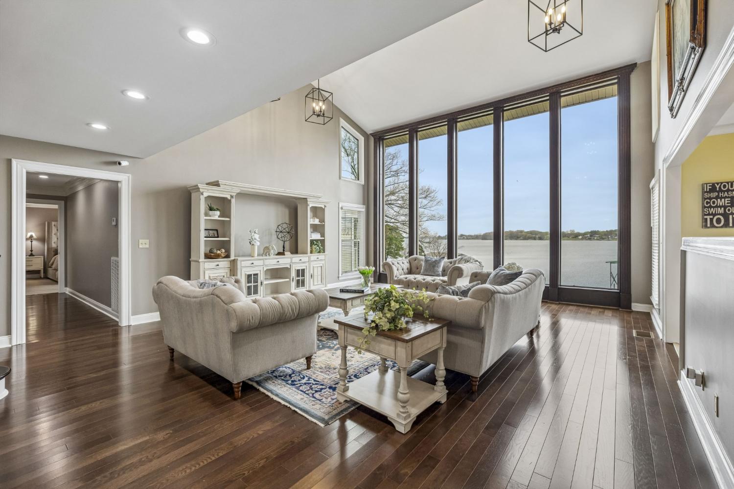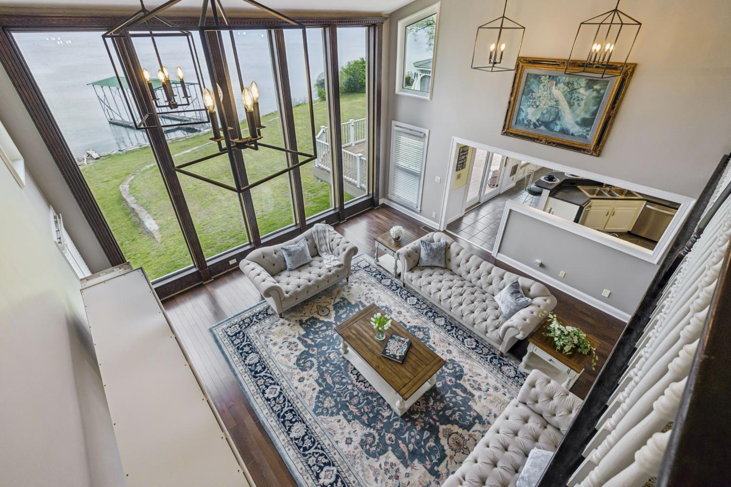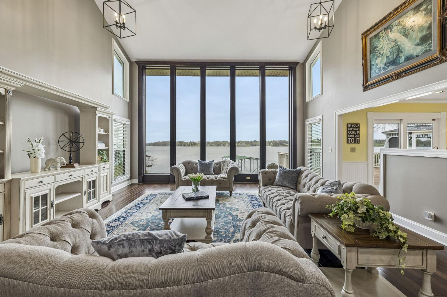 Welcome to your private lakefront retreat—where luxury, space, and breathtaking views come together in perfect harmony. This stunning 6,500-square-foot home offers 6 spacious bedrooms, 4 full bathrooms, and 2 half baths, thoughtfully designed for both everyday living and unforgettable entertaining. Set on a generous 1.21-acre lot with over 300 feet of pristine lake frontage, this property delivers the ultimate waterfront lifestyle. Step inside and be captivated by soaring floor-to-ceiling windows that frame panoramic lake views and flood the home with natural light. The main level features a luxurious primary suite, offering comfort and convenience with serene water views to start and end your day. With multiple family rooms, there’s plenty of space for gathering, relaxing, or hosting guests. A cozy wood-burning fireplace adds warmth and charm, while the expansive walk-out basement provides even more room to unwind and entertain. Outdoor living is just as impressive. Enjoy peaceful mornings and sunset evenings from the spacious decks, soak in the hot tub under the stars, or head down to your covered dock for a day on the water. Whether you're boating, entertaining, or simply taking in the view, this home is designed to make every moment special. Additional highlights include a 3-car garage, abundant closet space, and ample storage throughout—ensuring functionality matches the home’s beauty. This is more than a home—it’s a lifestyle. Don’t miss your chance to own one of the most exceptional lakefront properties available.