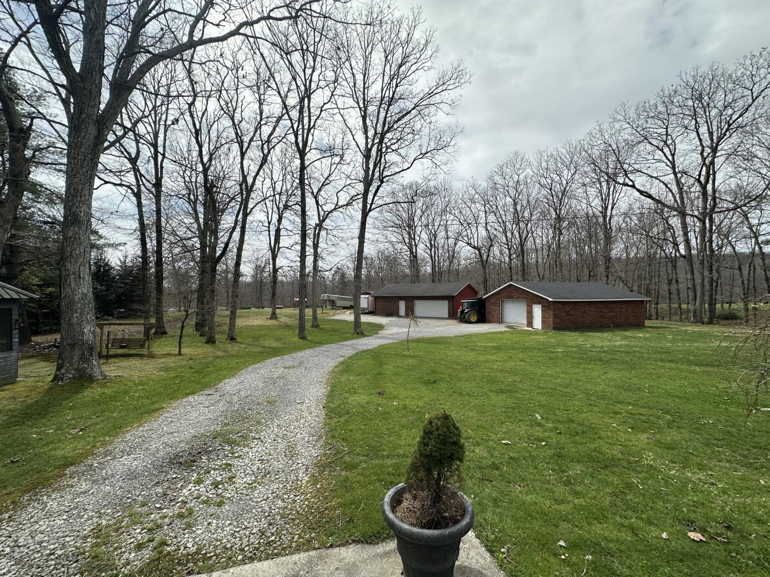 Nestled on over 2 acres at the end of a serene dead-end road, this charming brick ranch offers the perfect blend of privacy, comfort, and practicality. With 3 spacious bedrooms, 2.5 baths, and 2,260 sq/ft of thoughtfully designed living space, this home is a true retreat from the hustle and bustle. Step inside to find gleaming hardwood floors that flow throughout the main living areas, adding warmth and timeless elegance. The open, airy layout is perfect for both relaxing and entertaining, with plenty of natural light pouring in. Outside, the concrete driveway leads to not one, but two detached garages, providing ample space for vehicles, hobbies, and storage. The expansive property offers endless possibilities—whether you dream of creating a garden oasis, setting up space for outdoor activities, or simply enjoying the peace and quiet of your own private haven. This is where convenience meets tranquility, and it’s waiting for you to call it home. Don’t miss this rare opportunity—schedule your showing today!