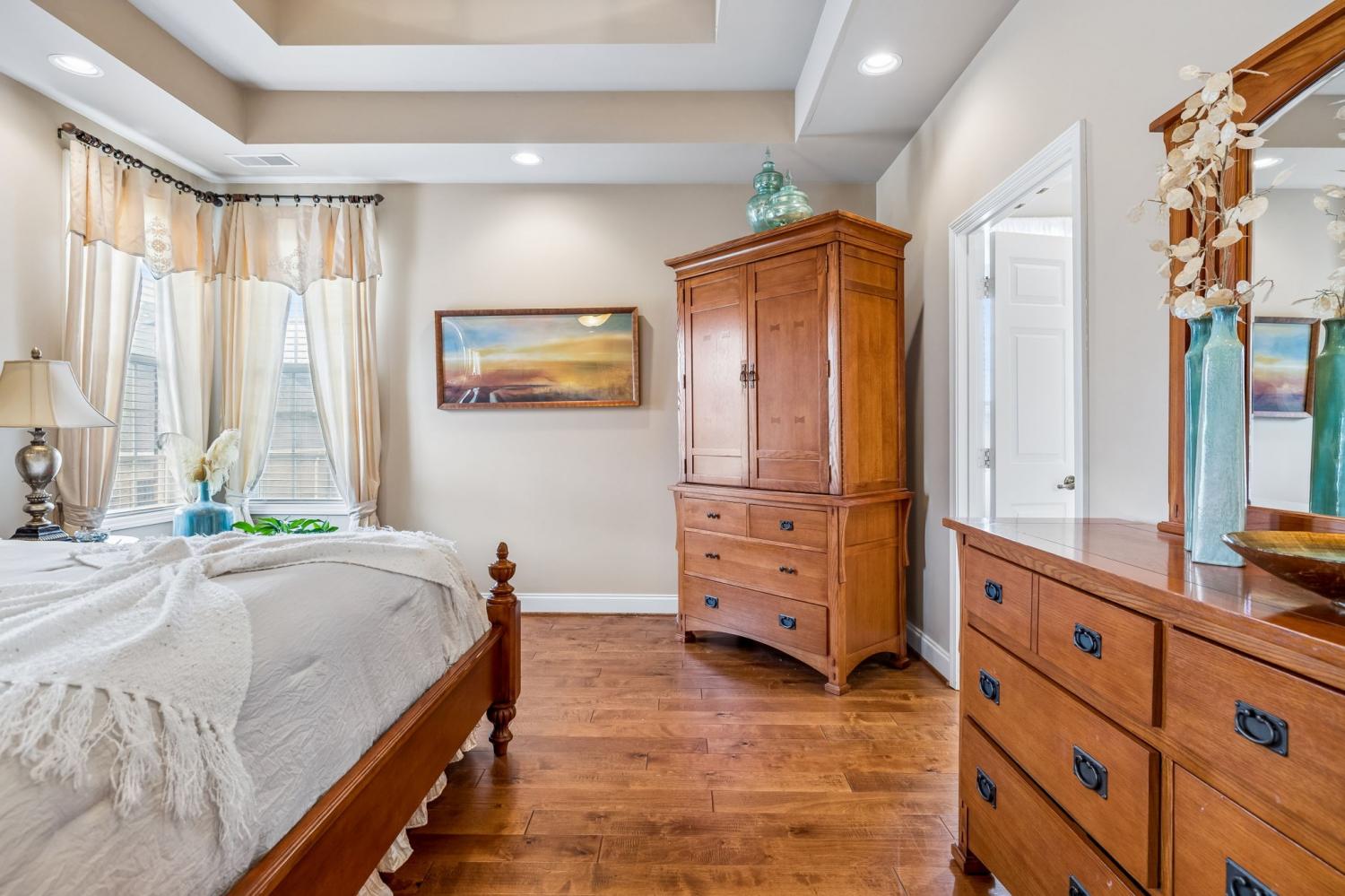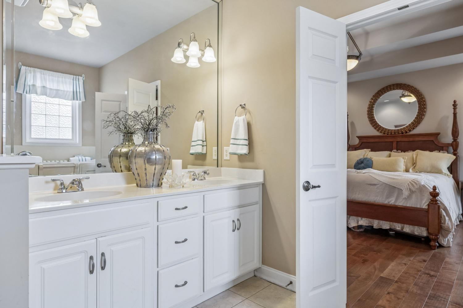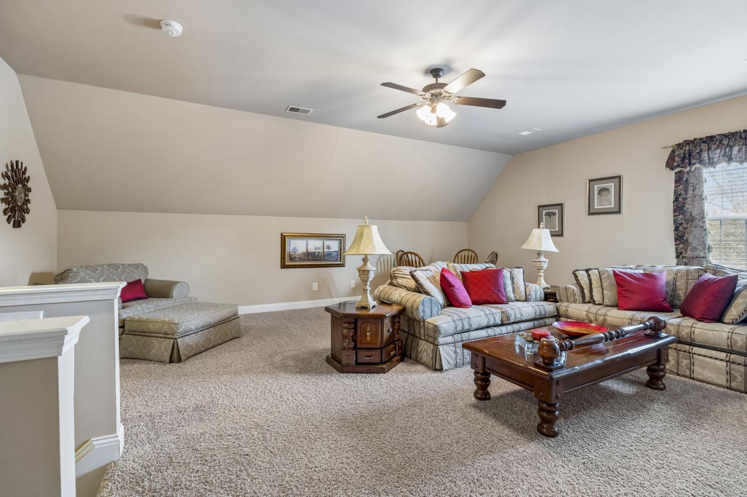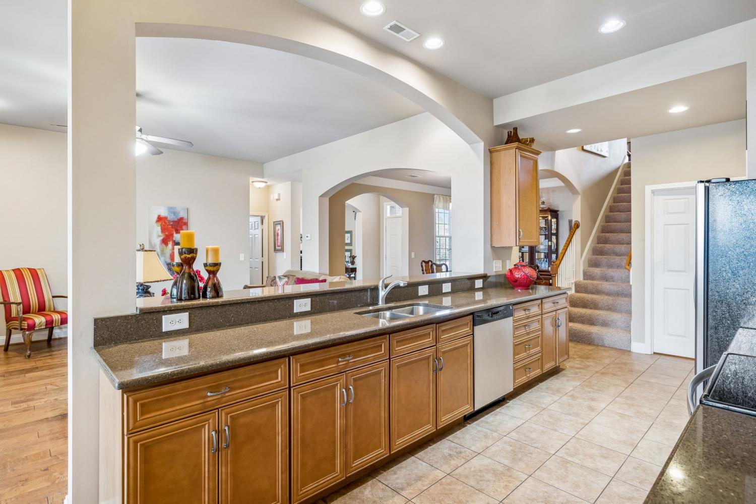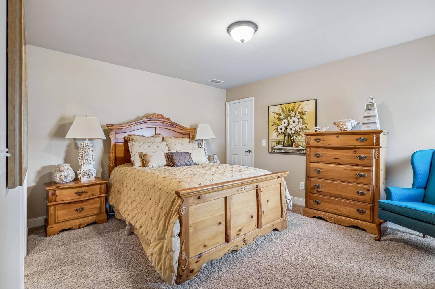 Built by Frank Batson Homes, this all brick residence offers quality craftsmanship and true main level living with just one step entry and a primary suite on the main floor. The open layout features 10 foot ceilings, hand scraped hardwoods, and abundant natural light. The kitchen includes stainless appliances, a large pantry, and flows seamlessly into the living and dining areas. Enjoy a gas fireplace, sunroom style sitting area, and multiple spaces for everyday living and entertaining. The main level primary suite offers tray ceilings, a walk in closet, dual vanities, and a jetted tub. A second bedroom or office with full bath is also on the main level. Upstairs includes a spacious bonus room, private bedroom with full bath, and walk in storage. Outside features include an aggregate driveway, irrigation system, gas lantern, and a private back porch overlooking common space. Located in Bridgewater with walking trails, pool, and playground, just minutes to Summit Hospital, Percy Priest Lake, Providence, and downtown Nashville. HOA covers lawn care, exterior maintenance including roof, and insurance.