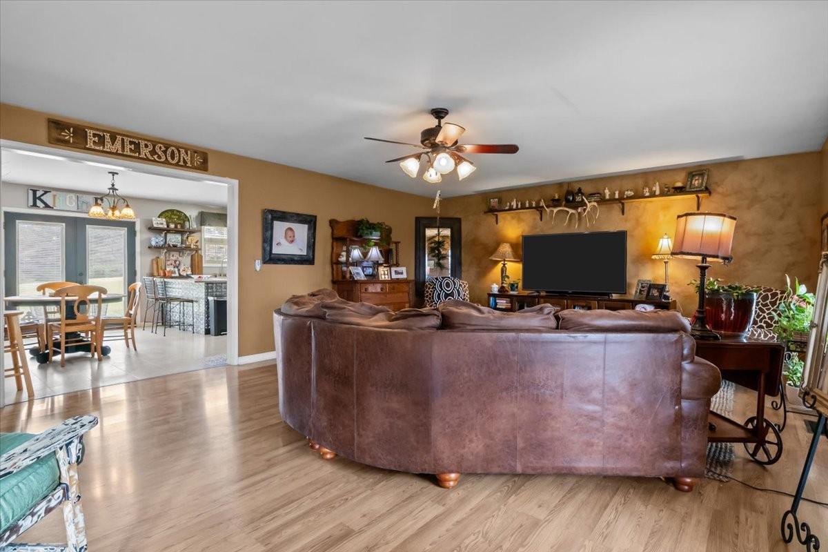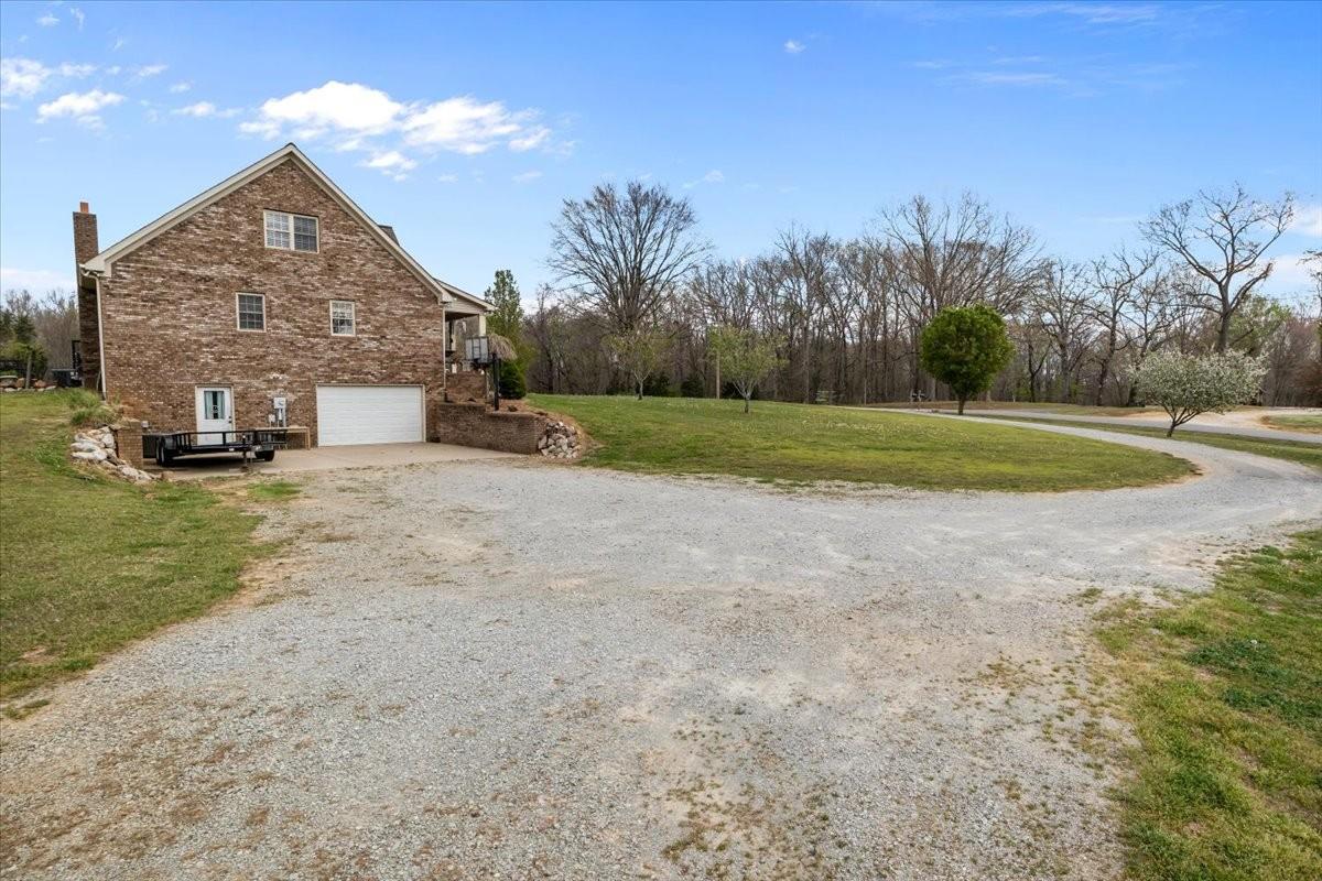 Beautiful brick home on an approximately 9.4-acre parcel in a highly desired neighborhood! This 5-bedroom, 4-bath residence blends generous living spaces with endless potential, offering a perfect canvas for a growing family. The property features an attached garage on both the main level and the basement, ensuring easy access and ample storage. Embrace outdoor living from the covered front porch and entertain guests on the back patio. Enjoy expansive open fields and unrestricted land—ideal for gardening, livestock, or future outbuildings. Water needs are covered with city water connected, plus a dedicated well for livestock or gardening. Just a short drive to multiple boat ramps, this home combines serene country living with convenient recreation. With plenty of room to add more bedrooms or customize spaces to suit your lifestyle, this is a rare opportunity in a coveted location!
