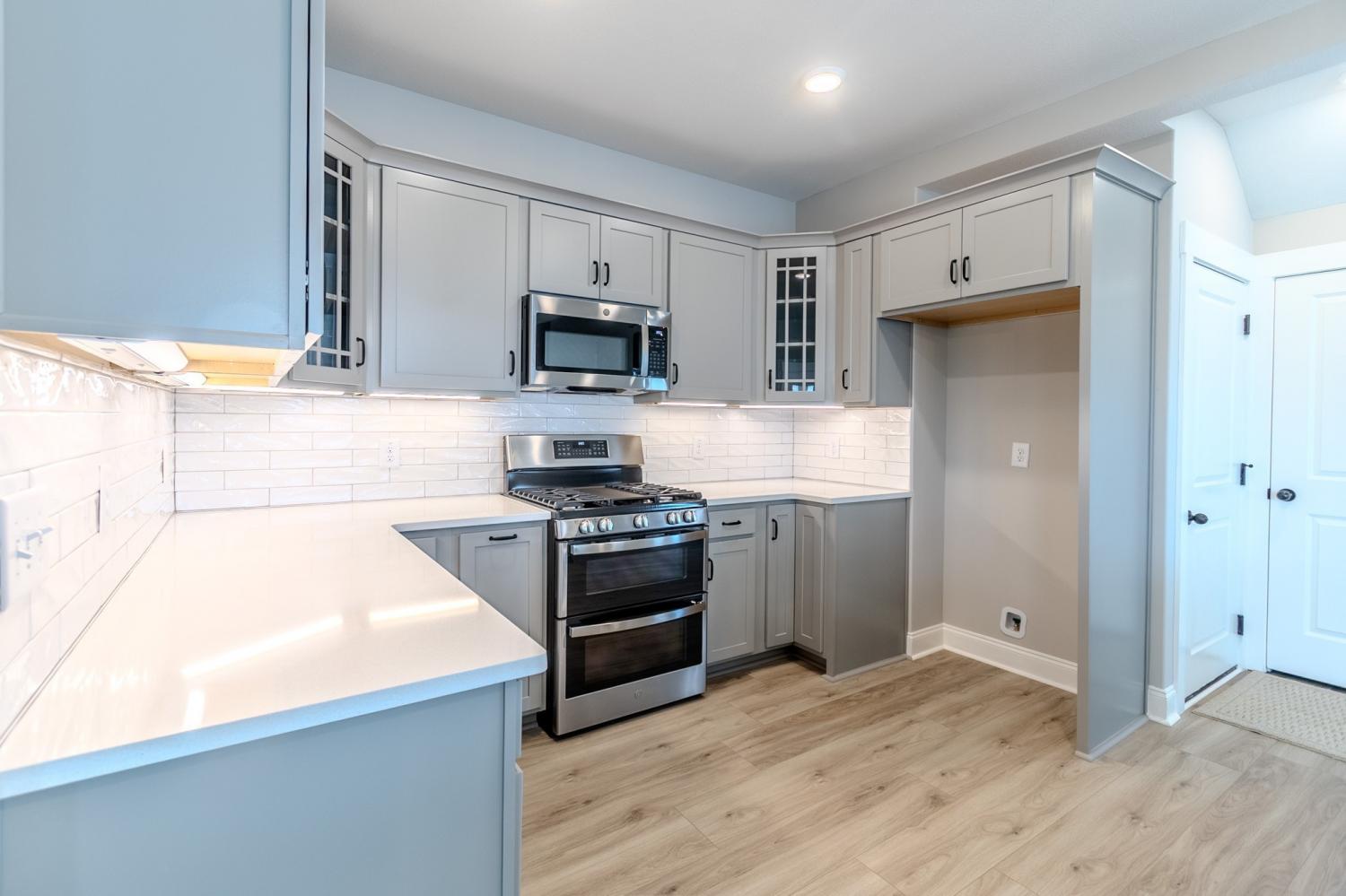 Luxurious 3 Bedroom Layout Highlighting Barn Doors, Creative Trim Work, and Abundant Storage Space! Flowing, Functional First Level Features Vaulted Great Room with Brick Fireplace and Electric Insert. Chic Kitchen with Upgraded Cabinetry, Decadent Double Oven & Island. Majestic Owner Suite on Main Level *Fence Installed*